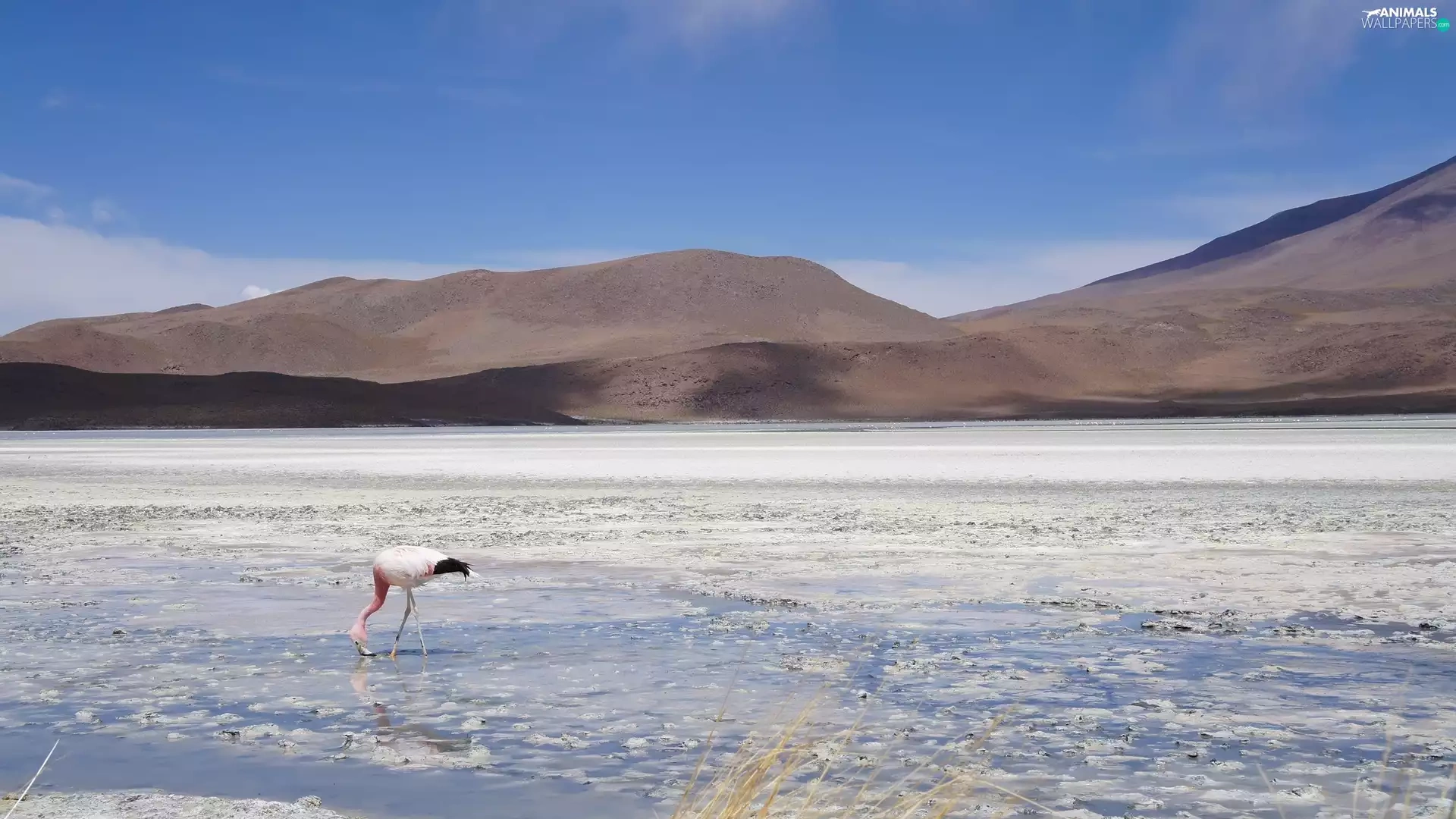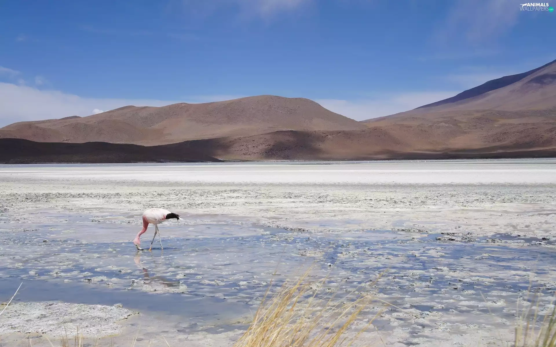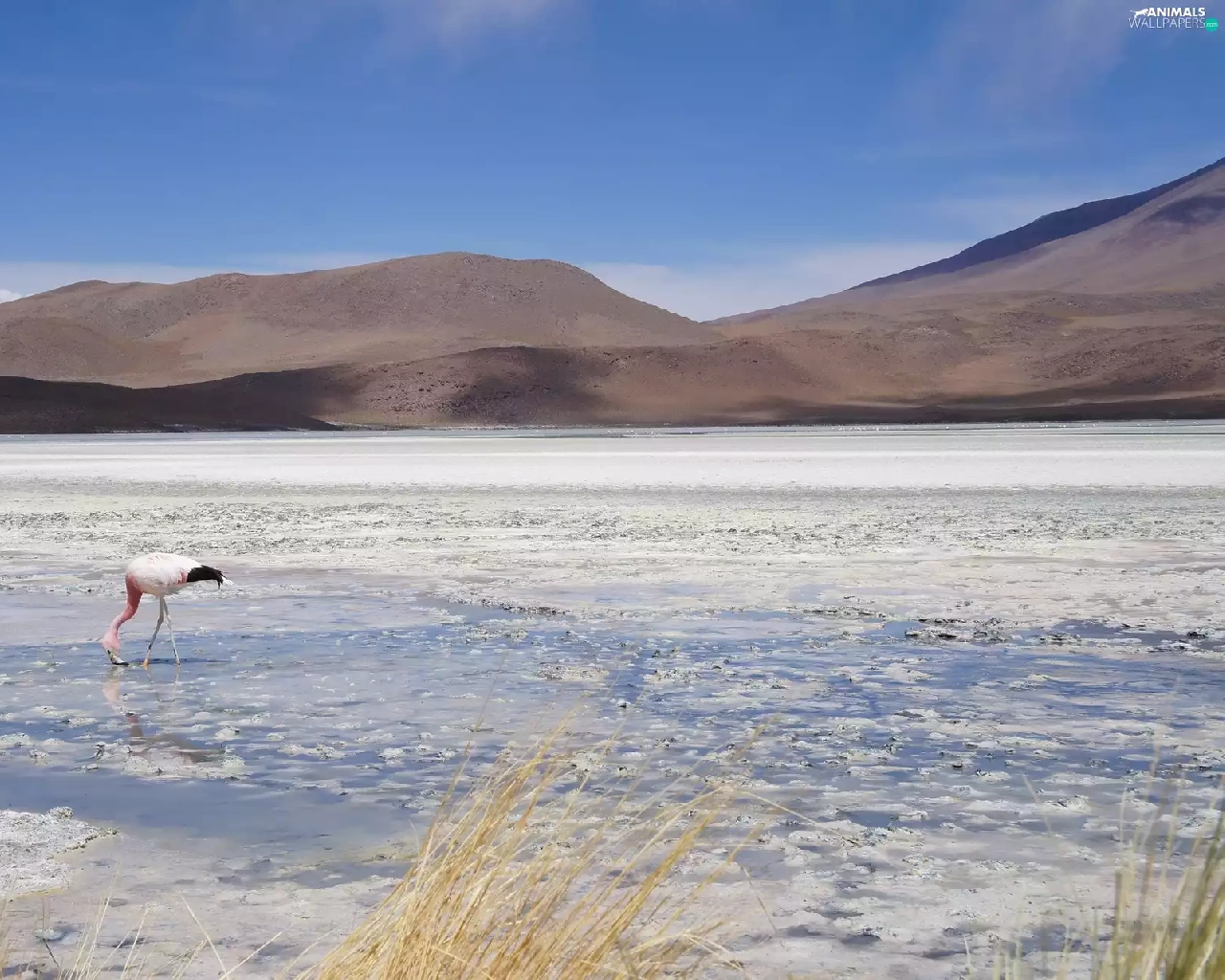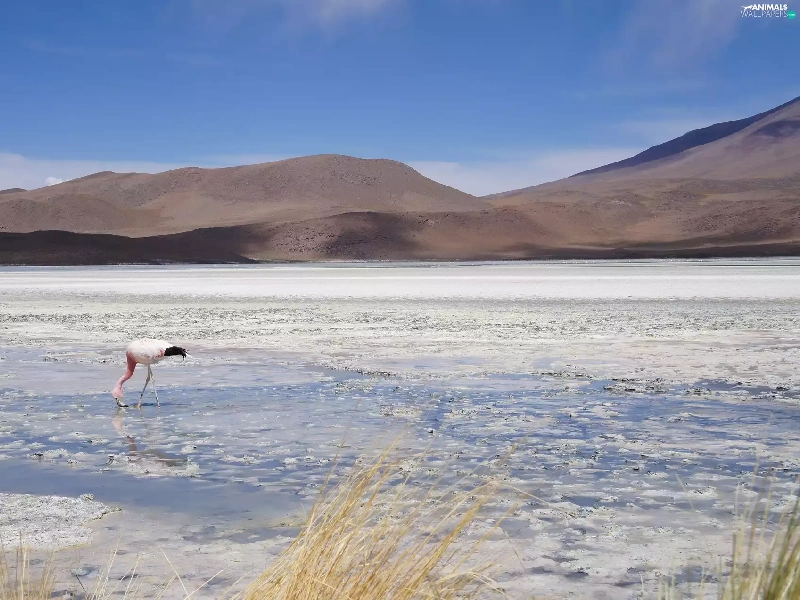 lake, flamingo, Bird