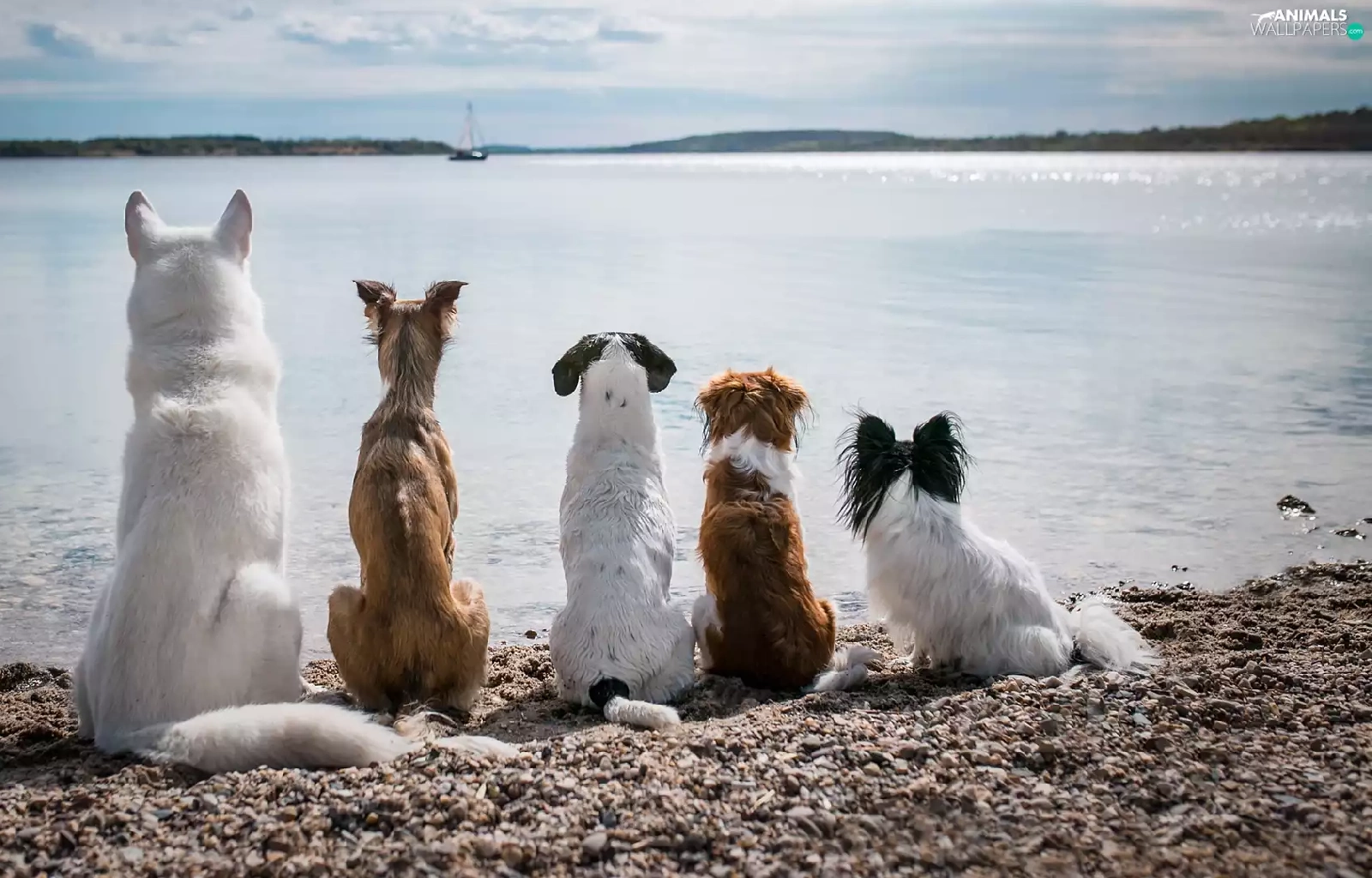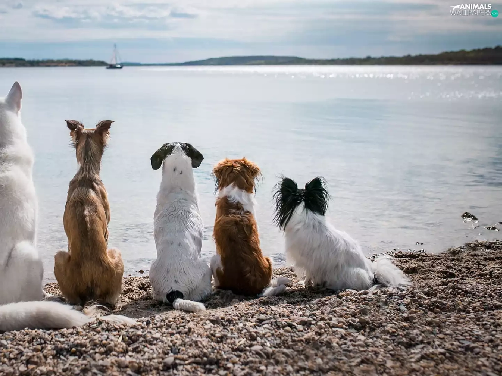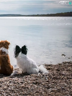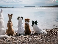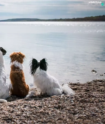 Dogs, five, dogs, lake