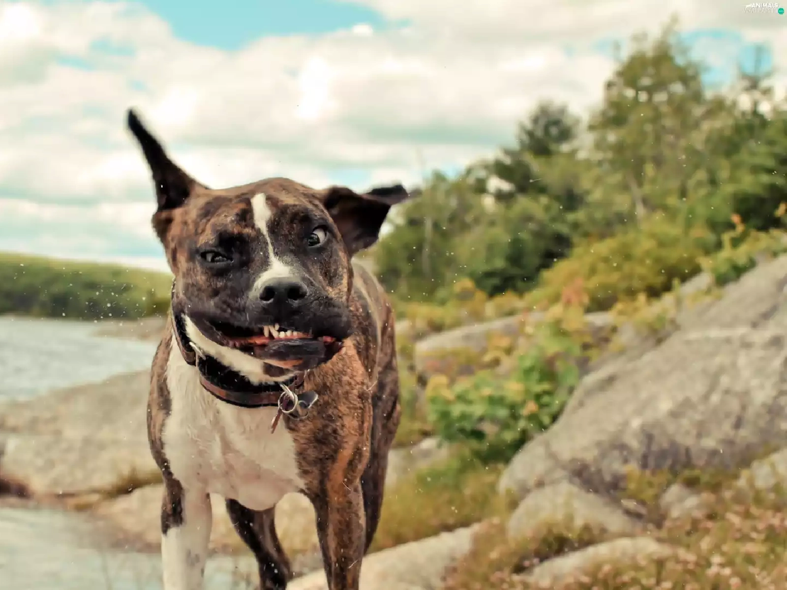 lake, dog, look