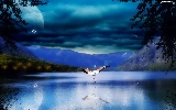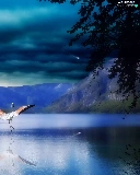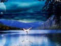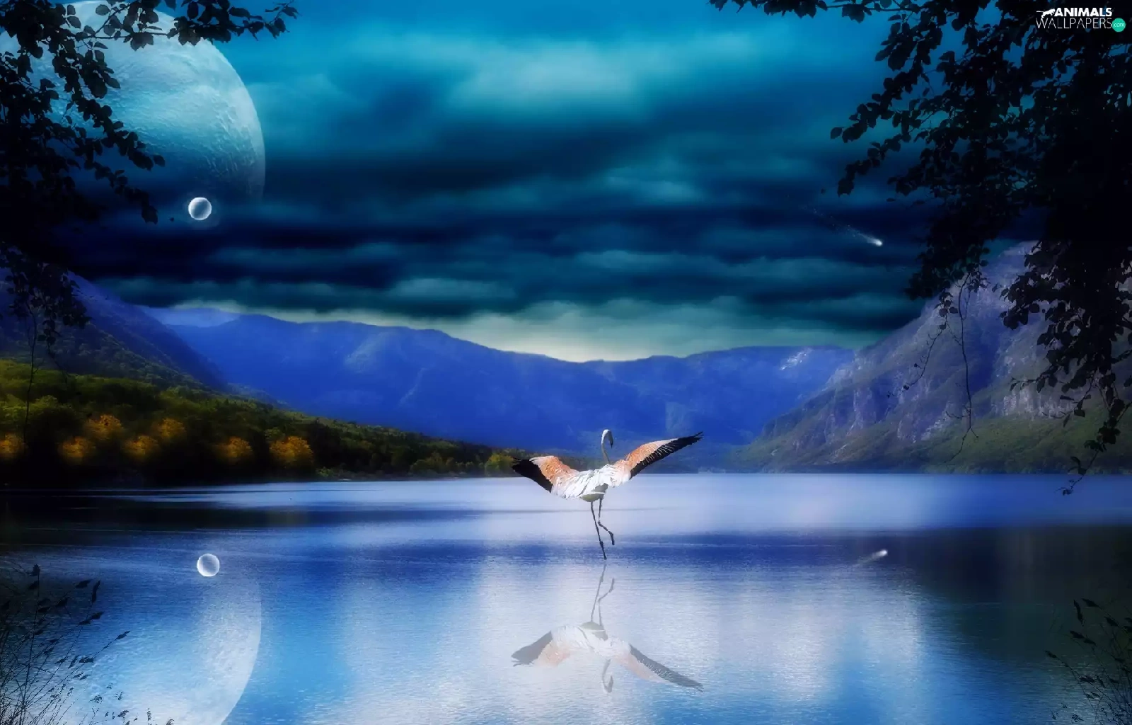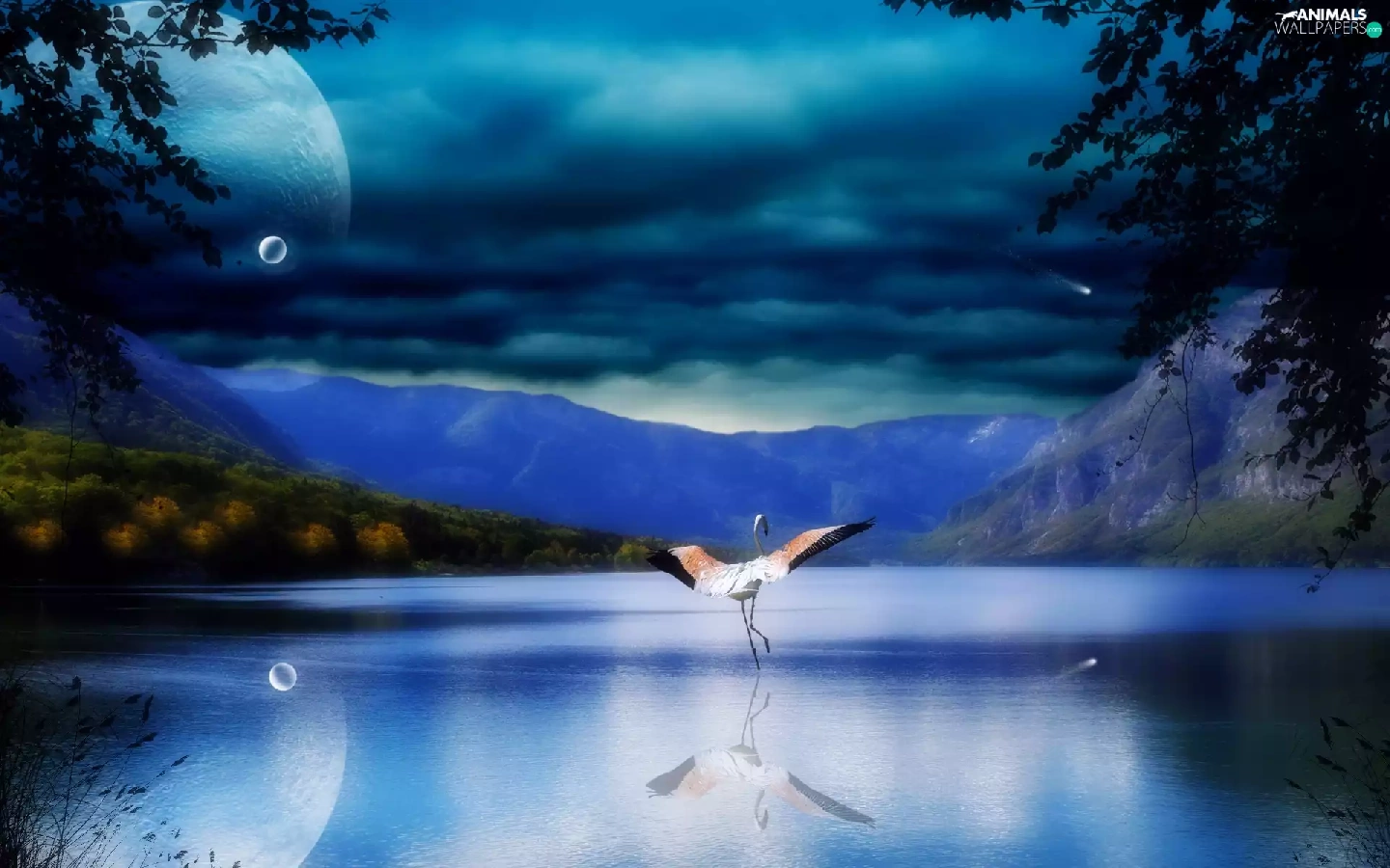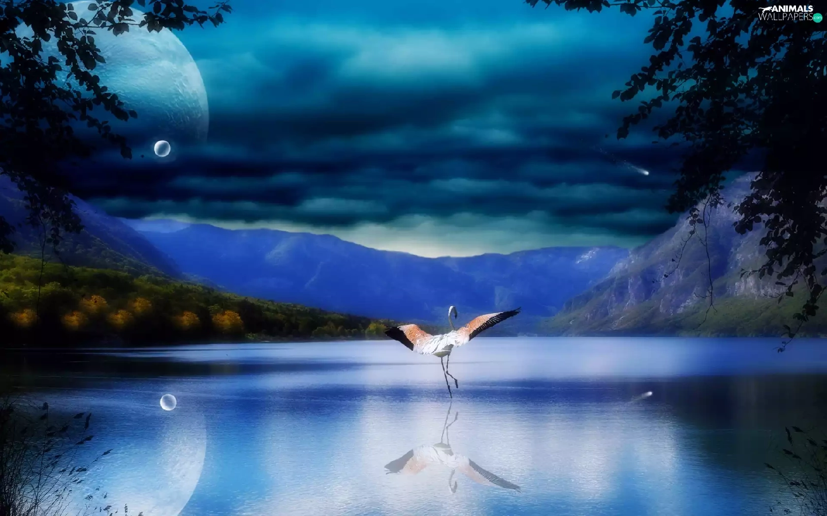 Mountains, Planet, flamingo, lake