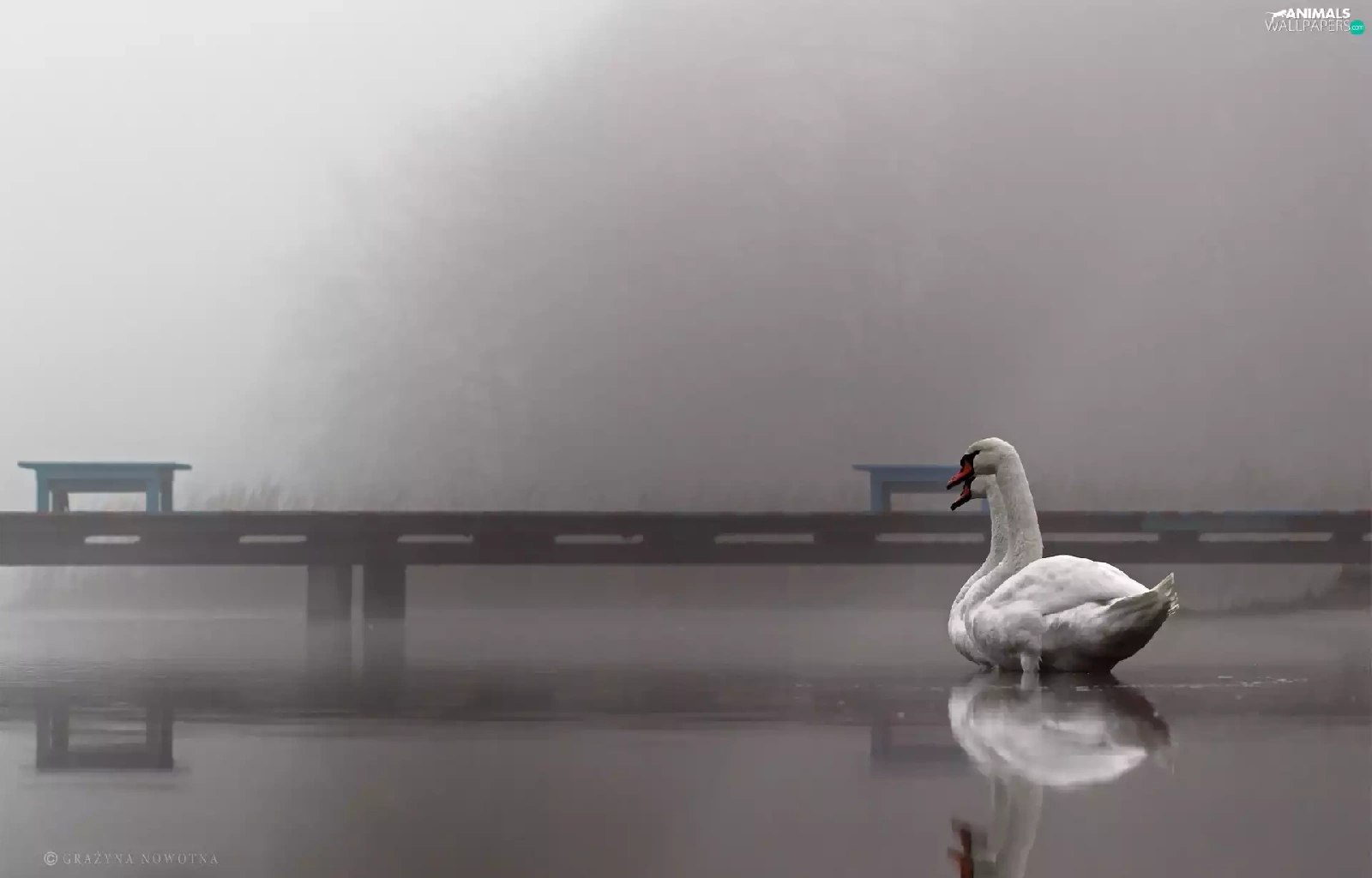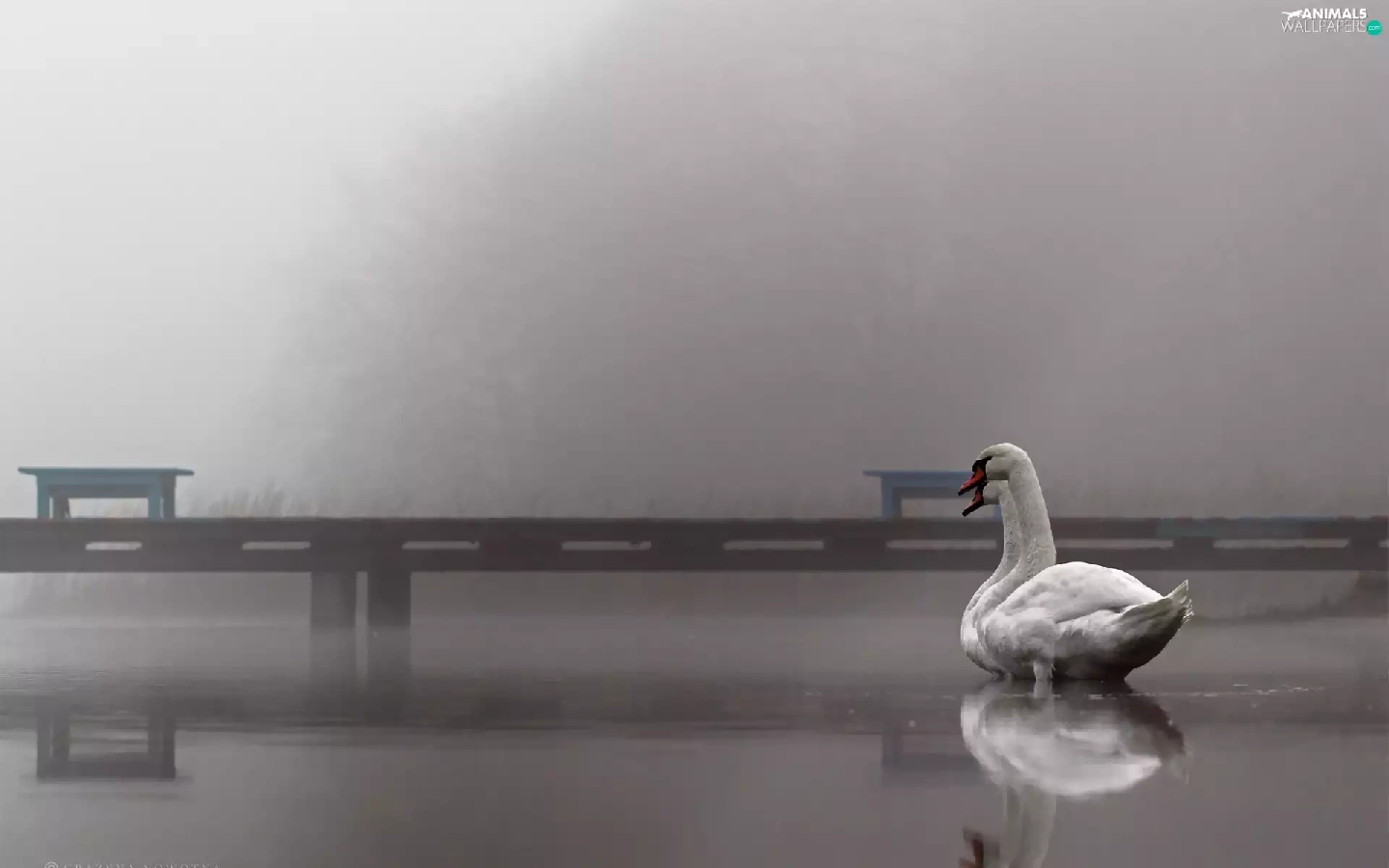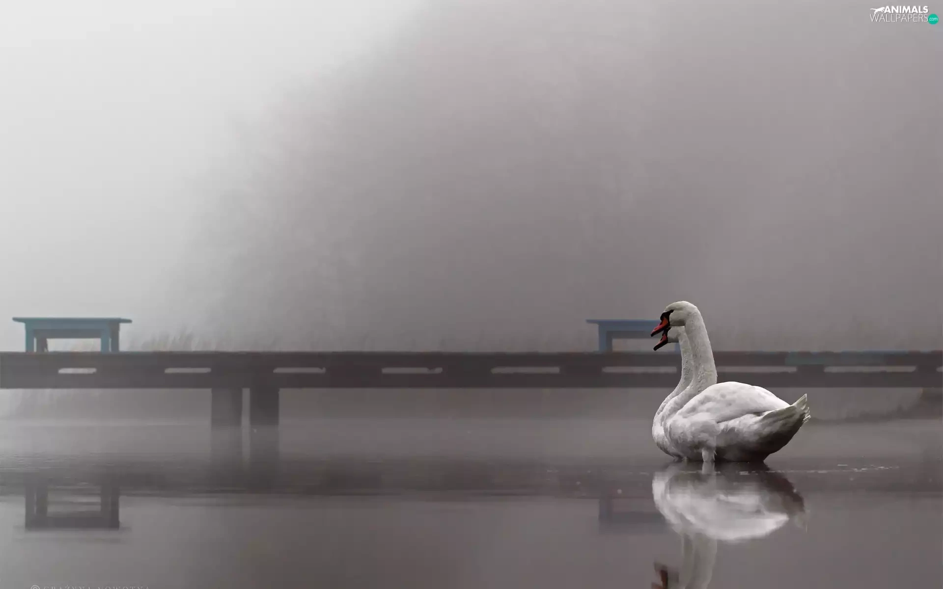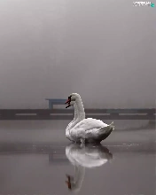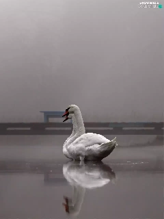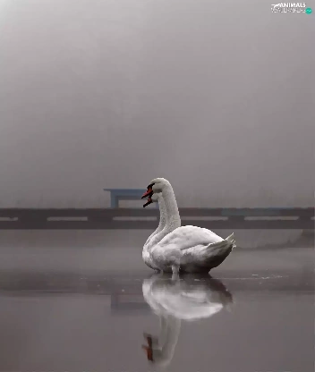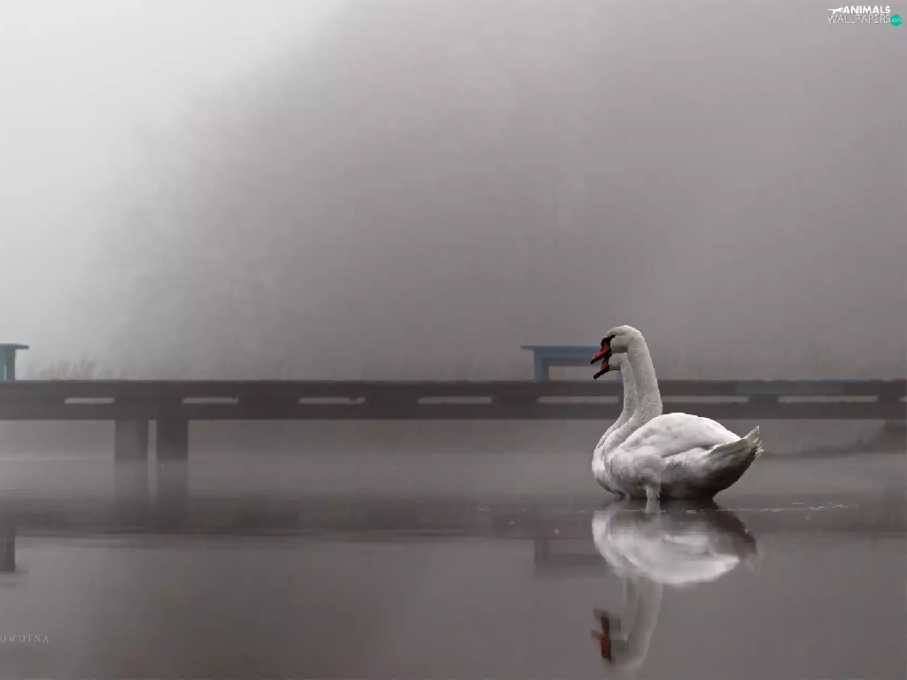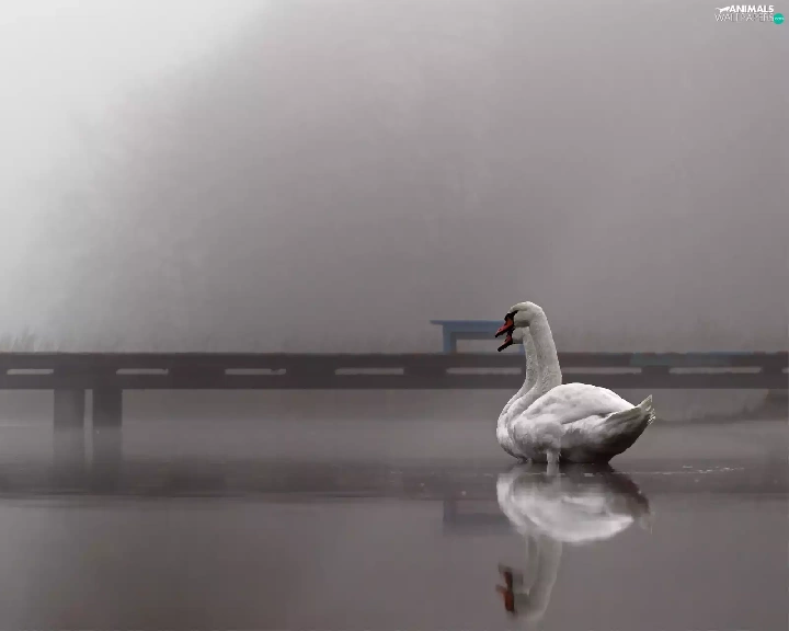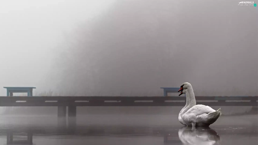 Swan, Platform, Fog, lake