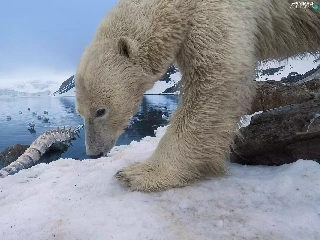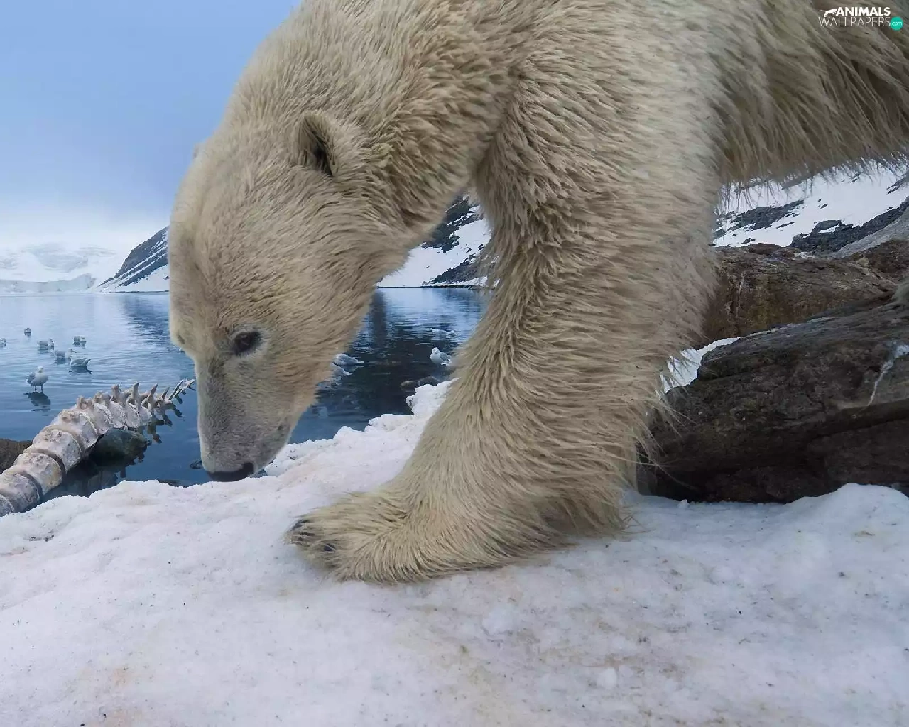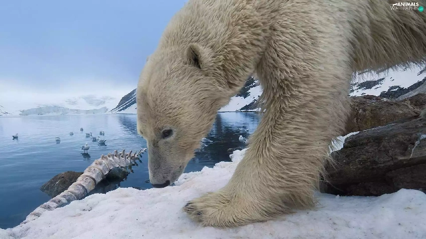 Sky, lake, teddy bear, snow