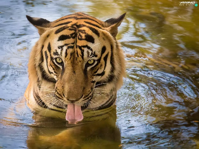 lake, tiger, tongue