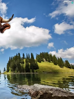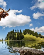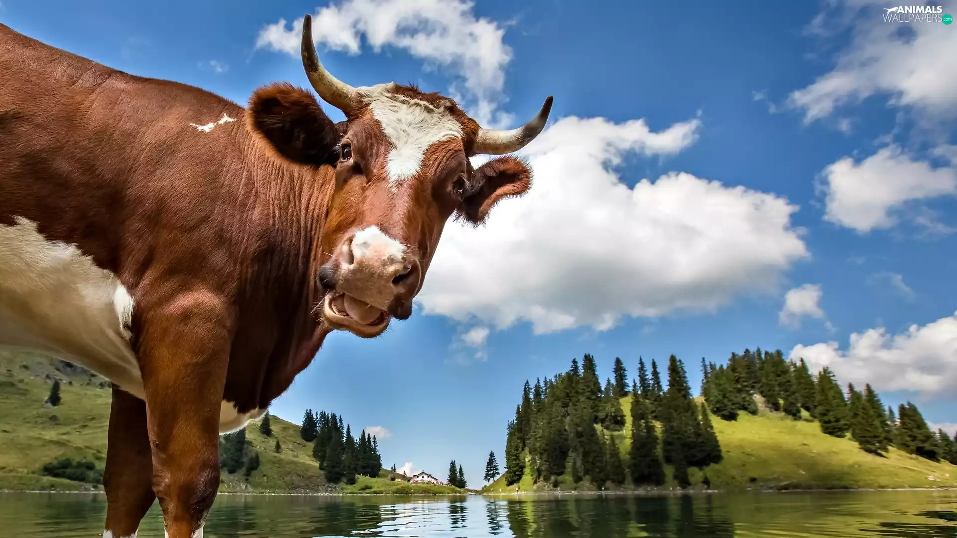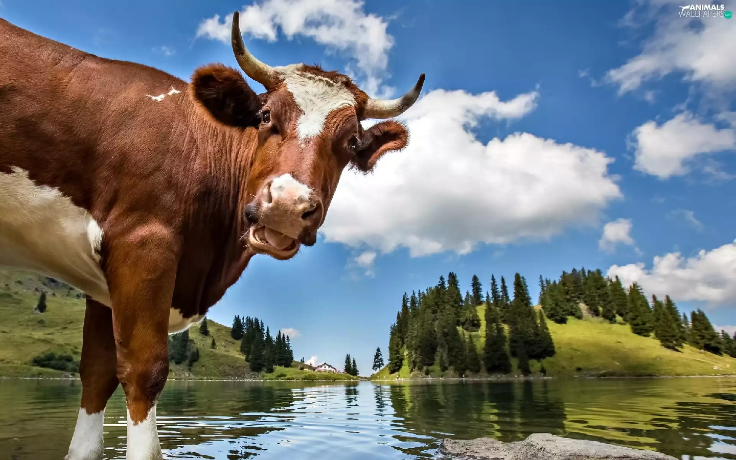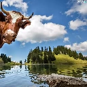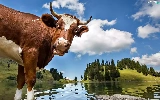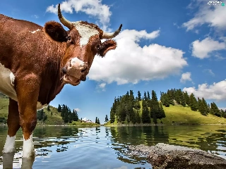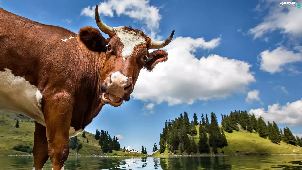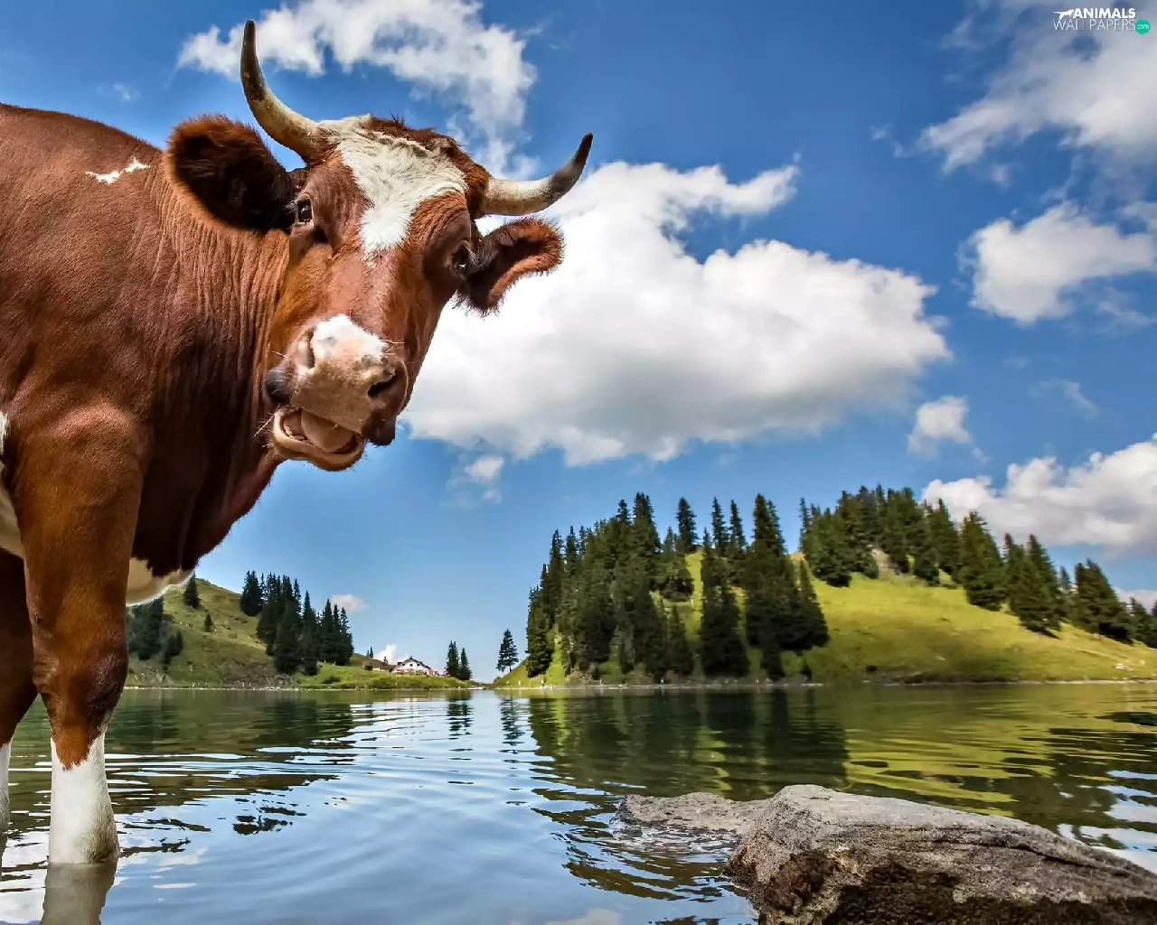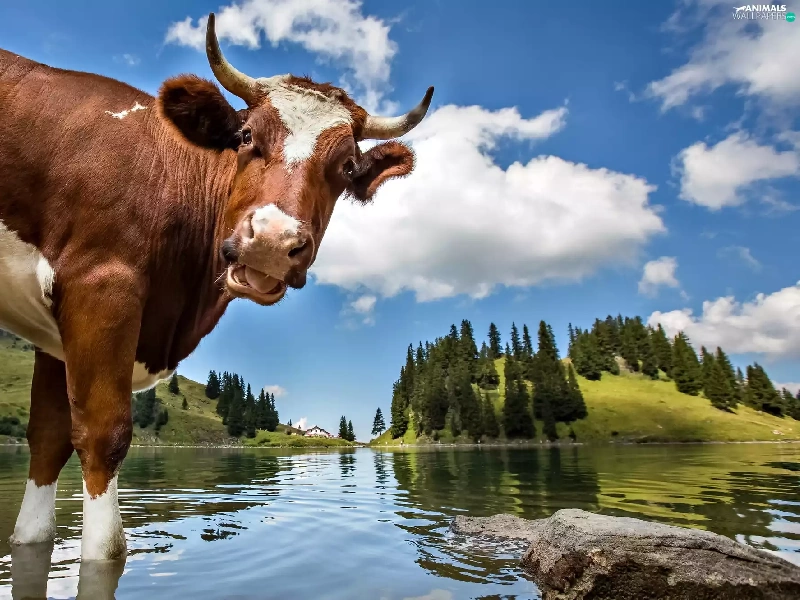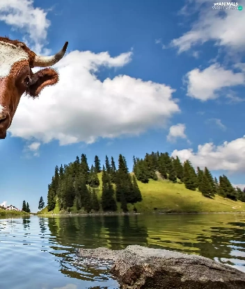 landscape, Cow, water