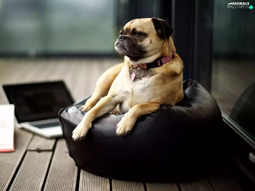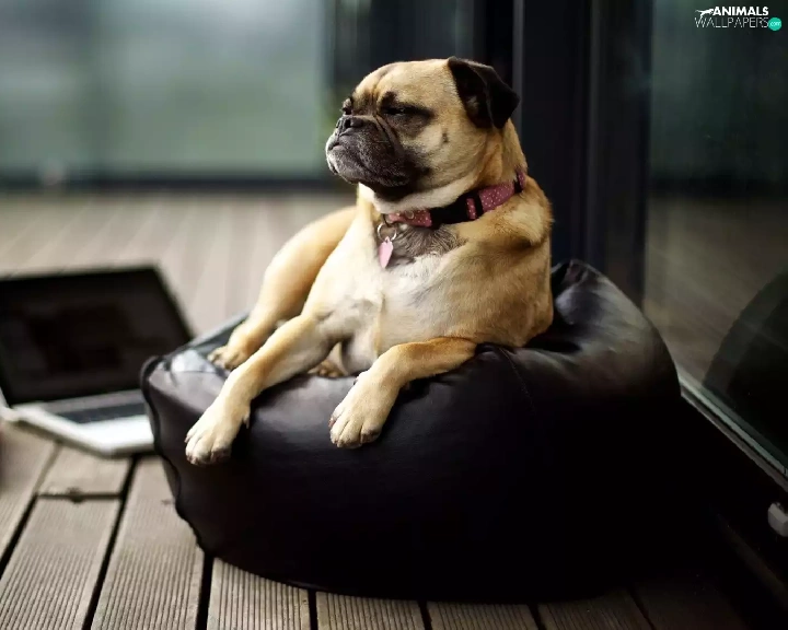 laptop, dog, Armchair