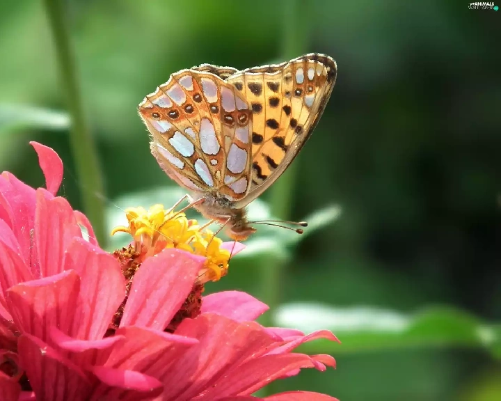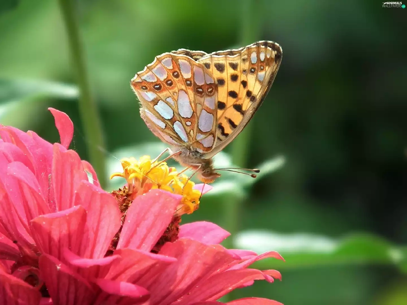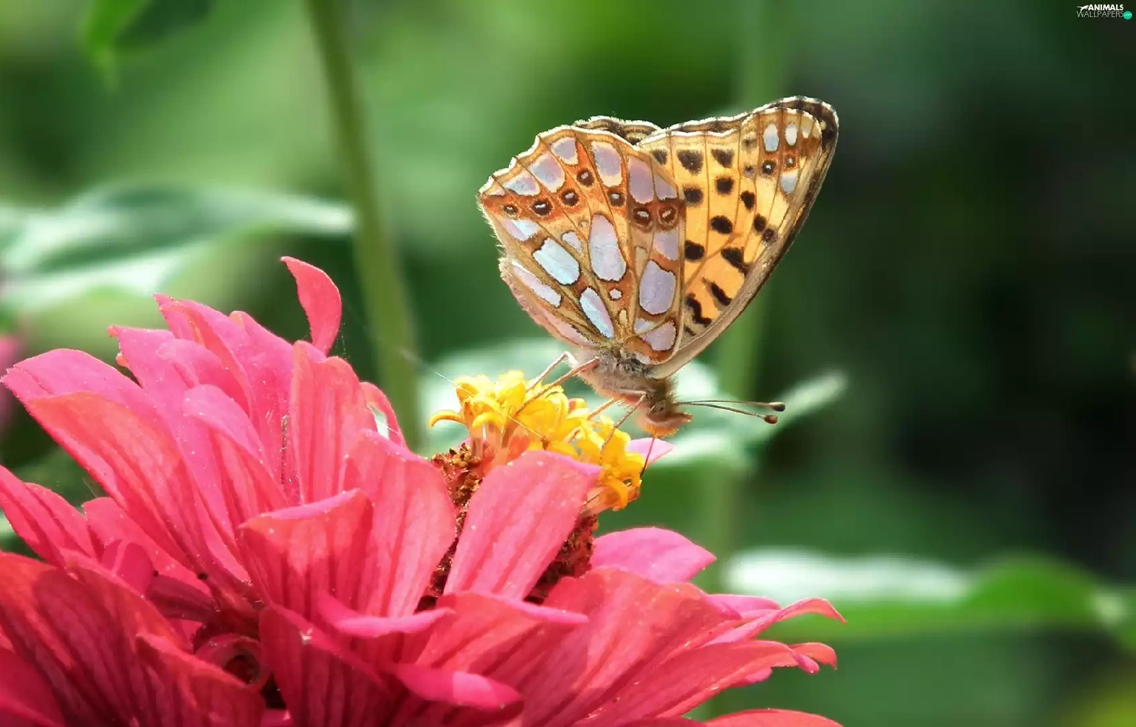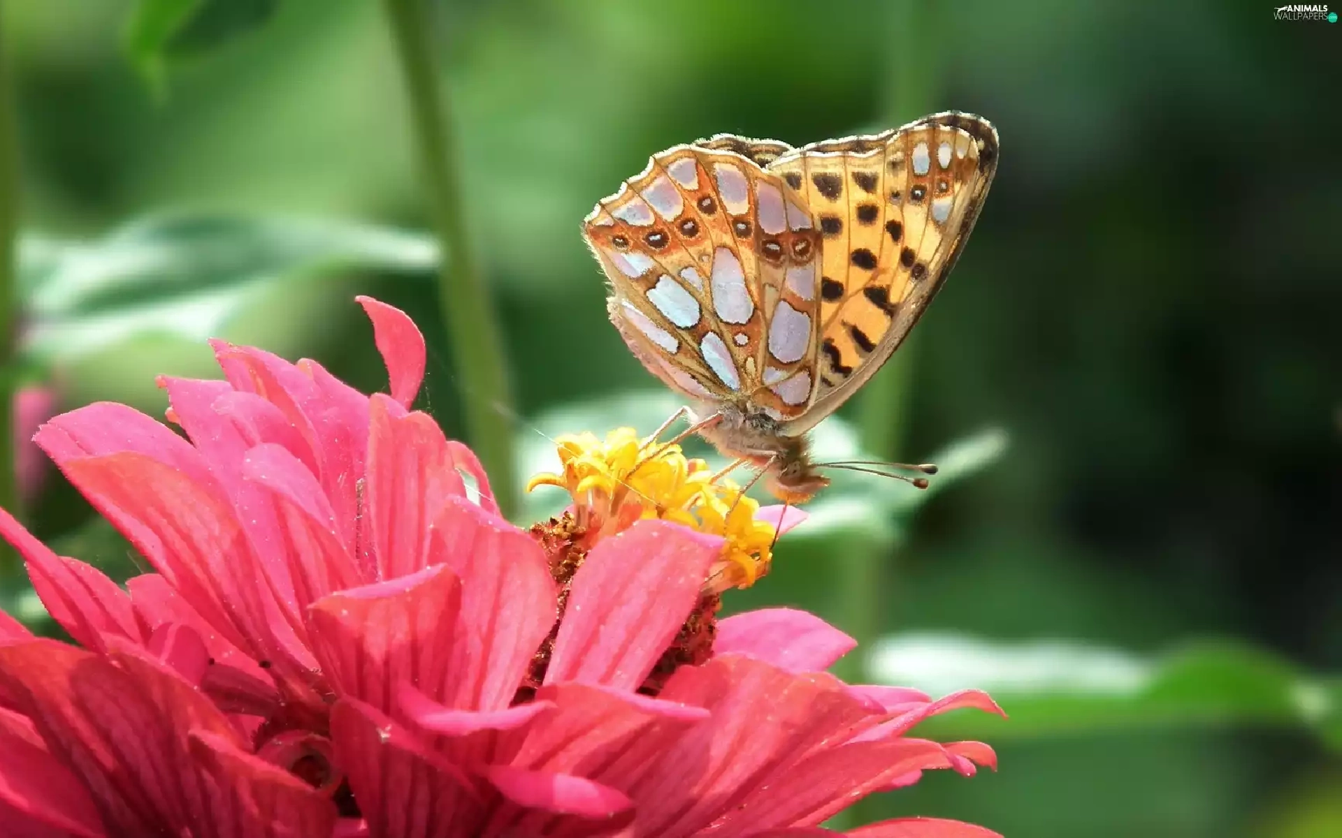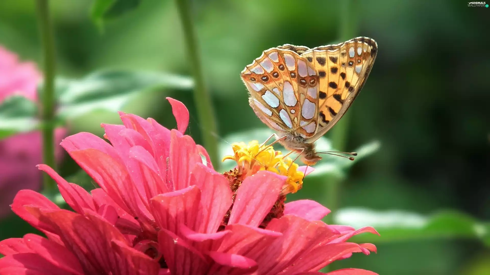 zinnia, Pink, argynnis, Latonia, butterfly, Colourfull Flowers