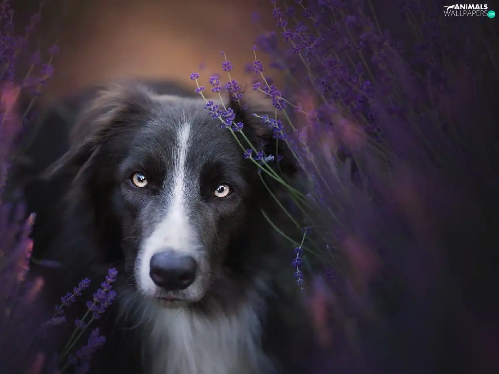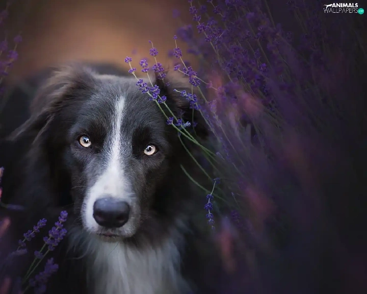 dog, muzzle, lavender, Border Collie