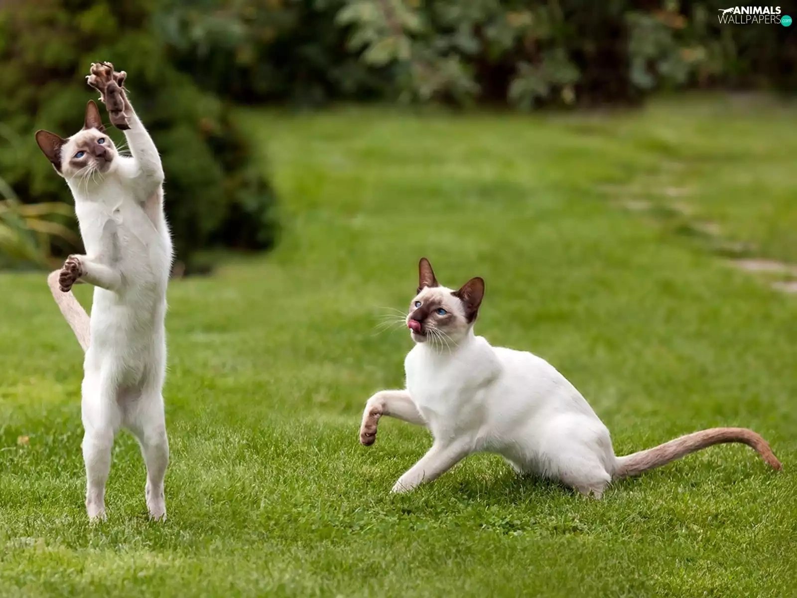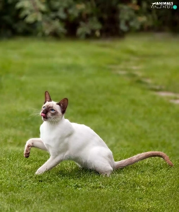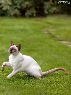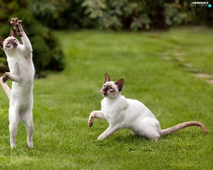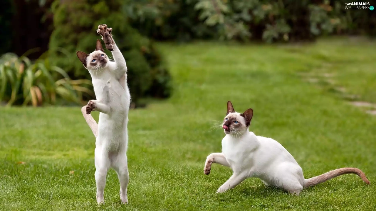 mouse, Siamese Cats, Lawn, Two cars