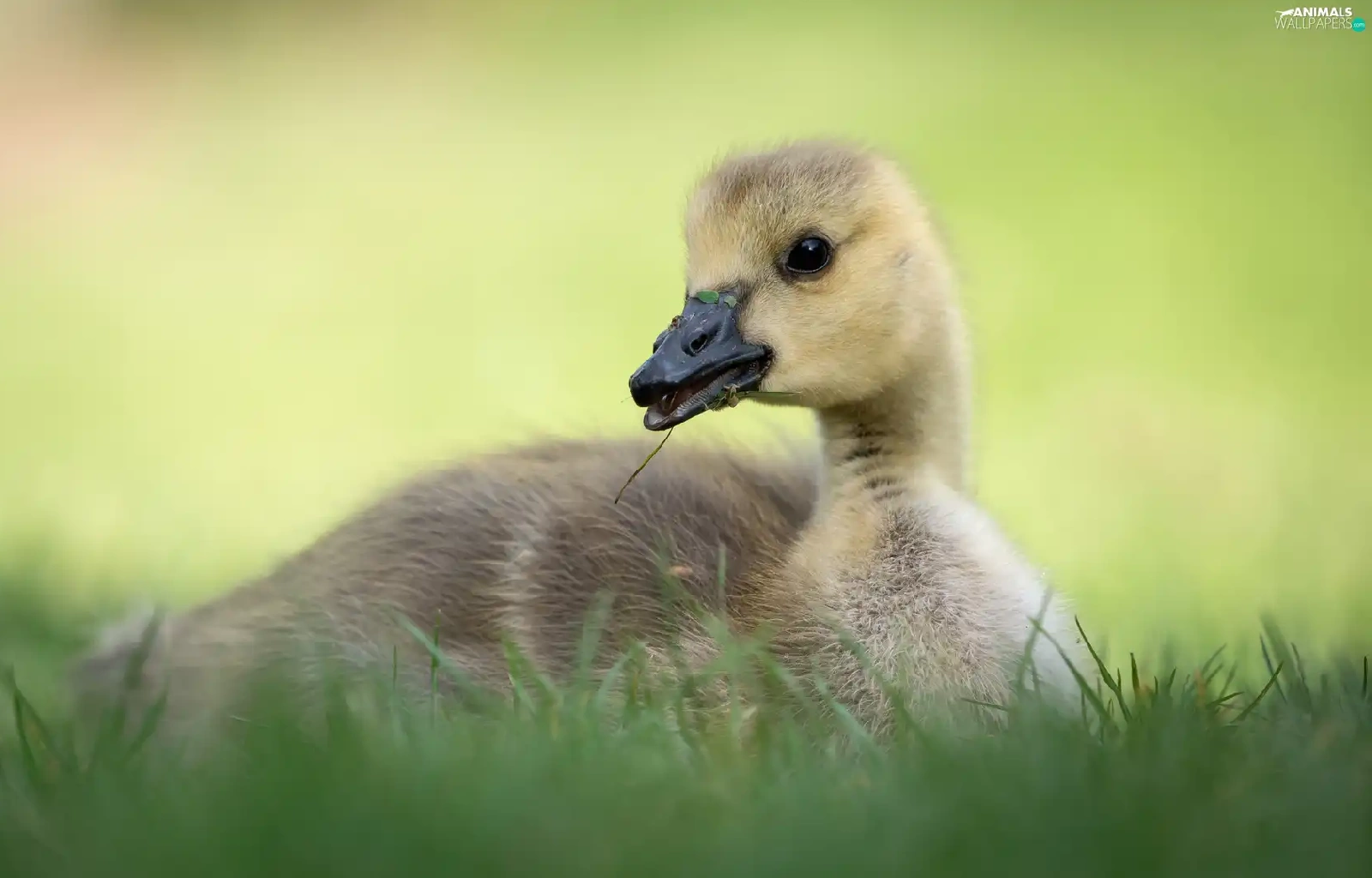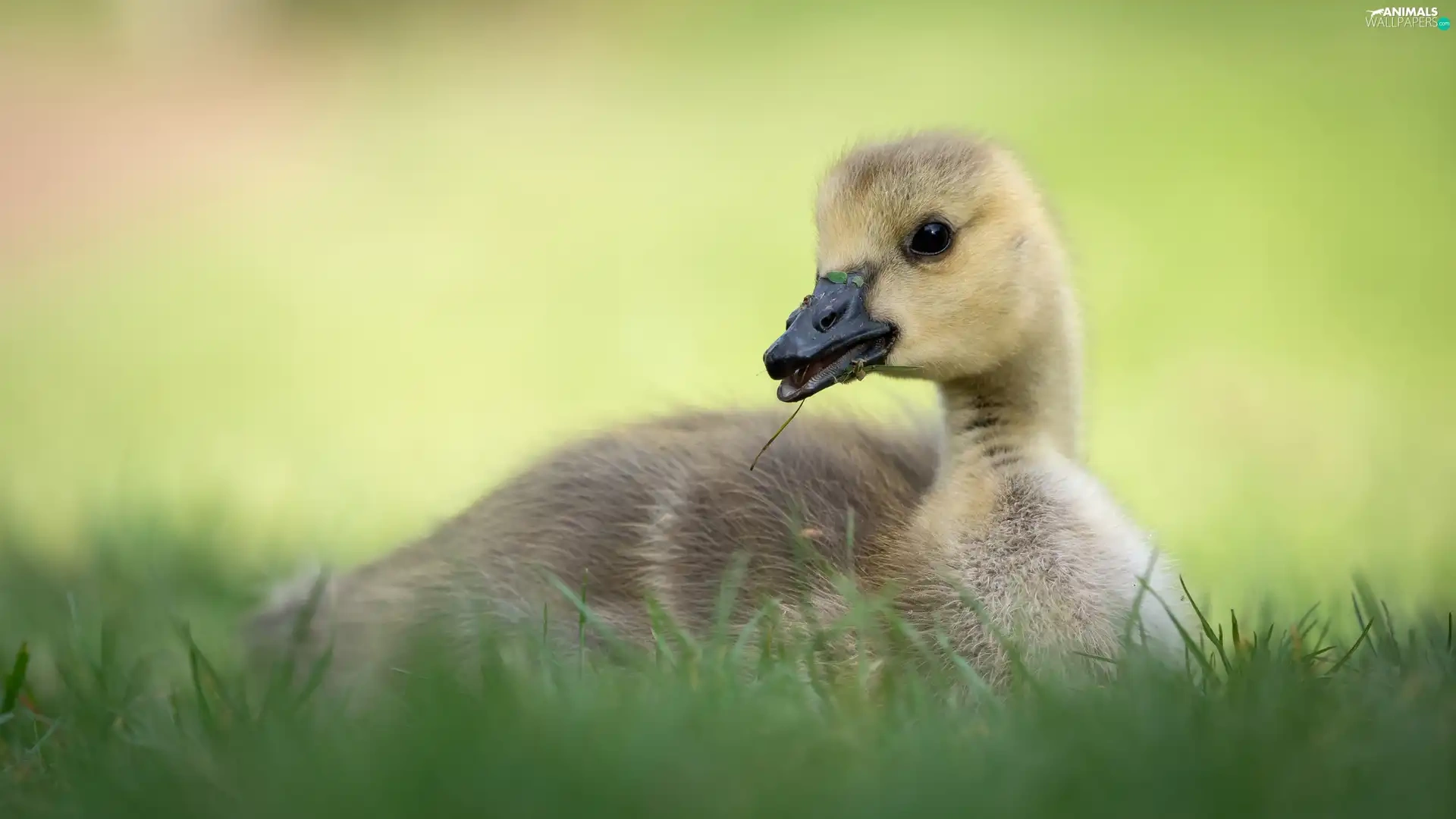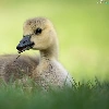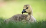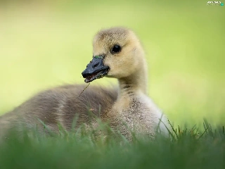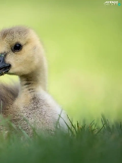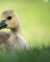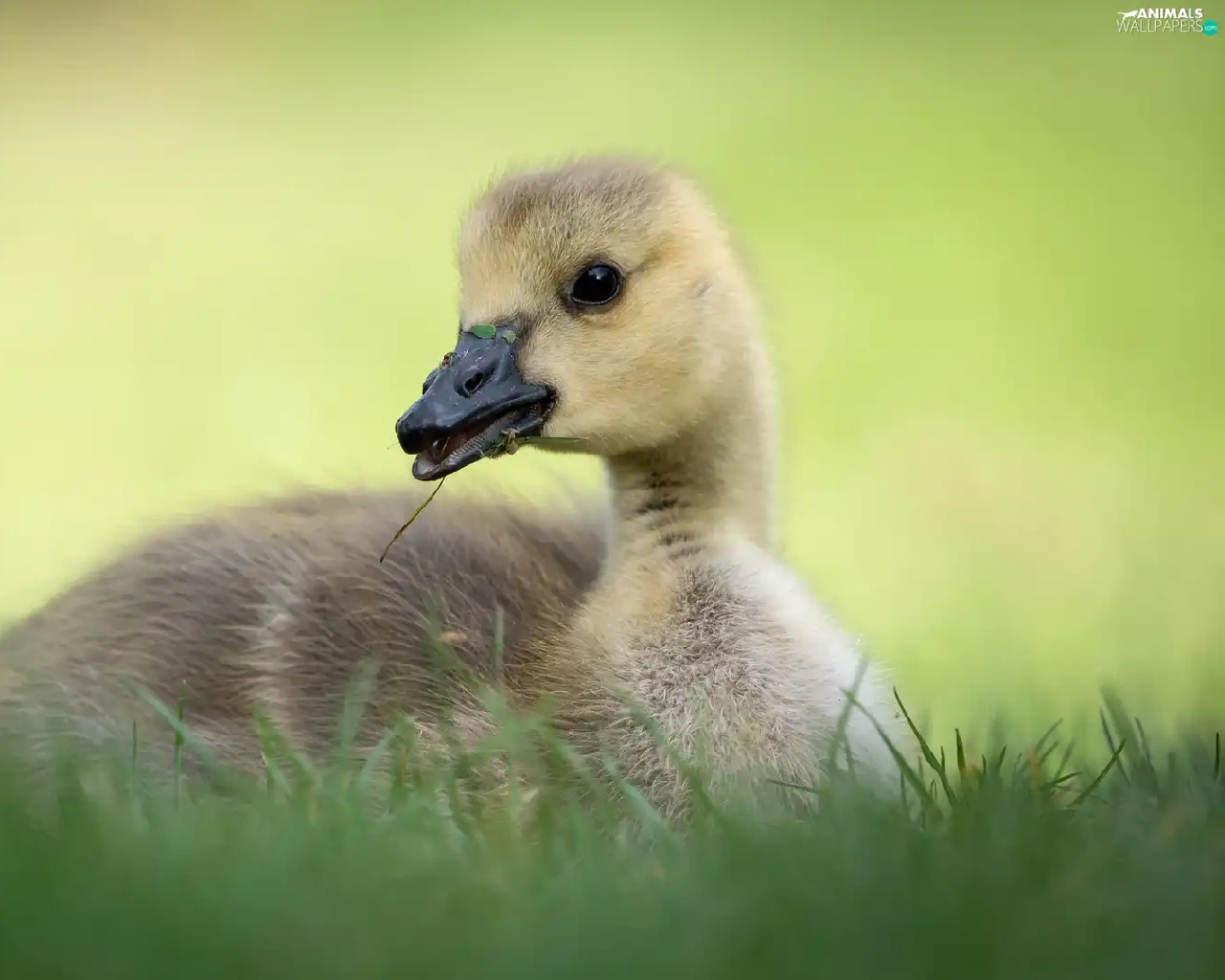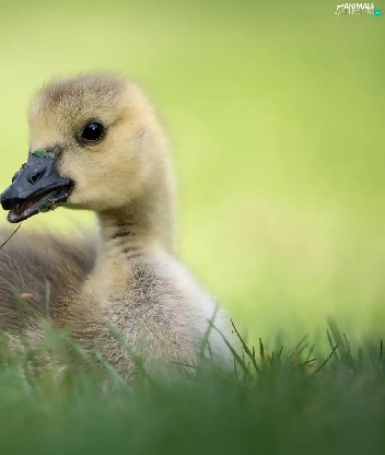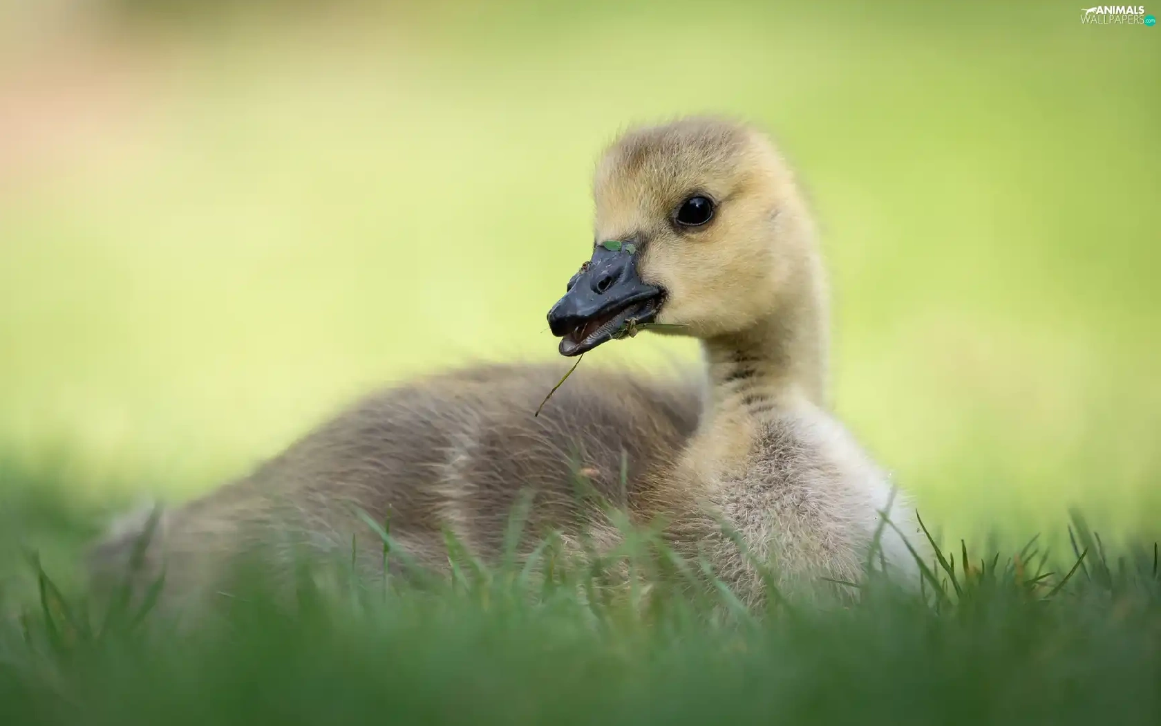 small, goose, grass, laying