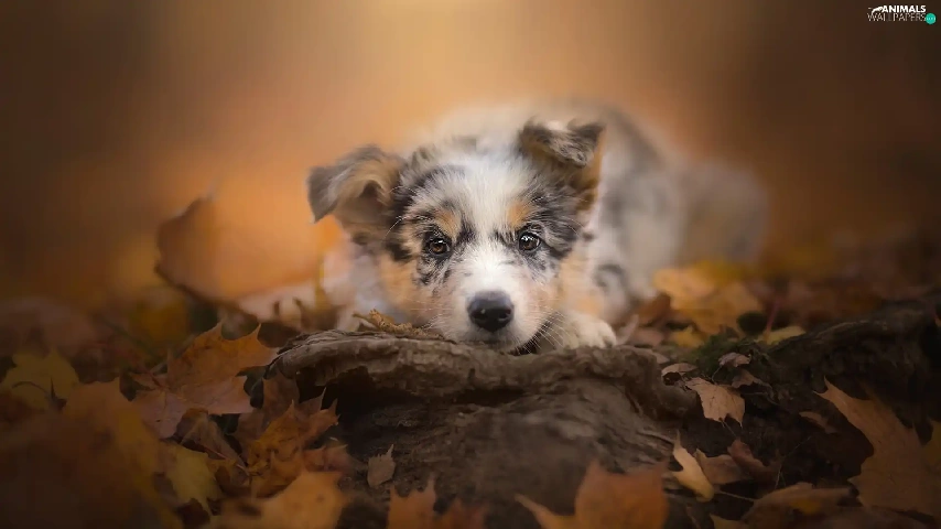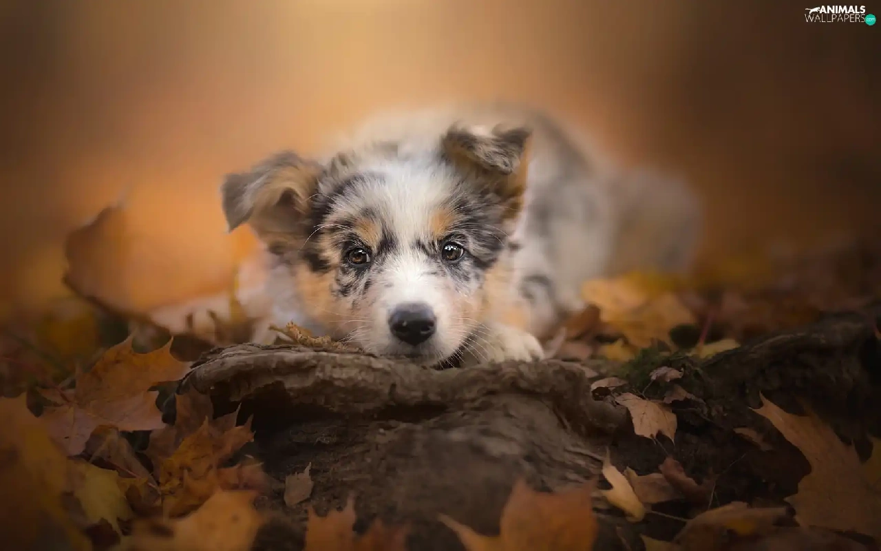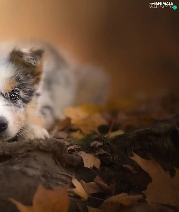 Puppy, muzzle, Leaf, Australian Shepherd