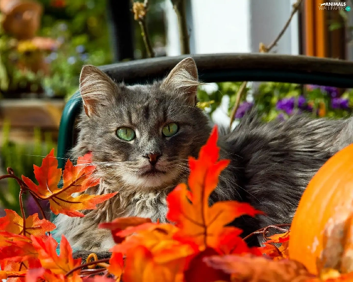 Leaf, cat, Autumn