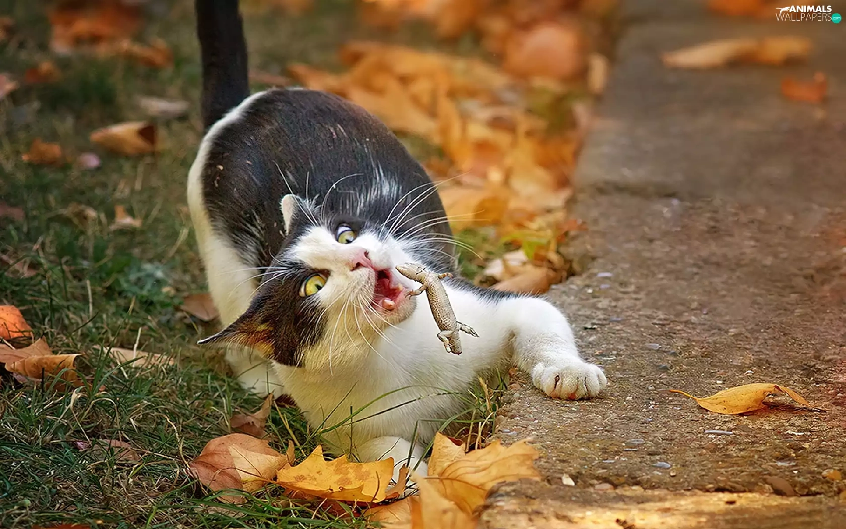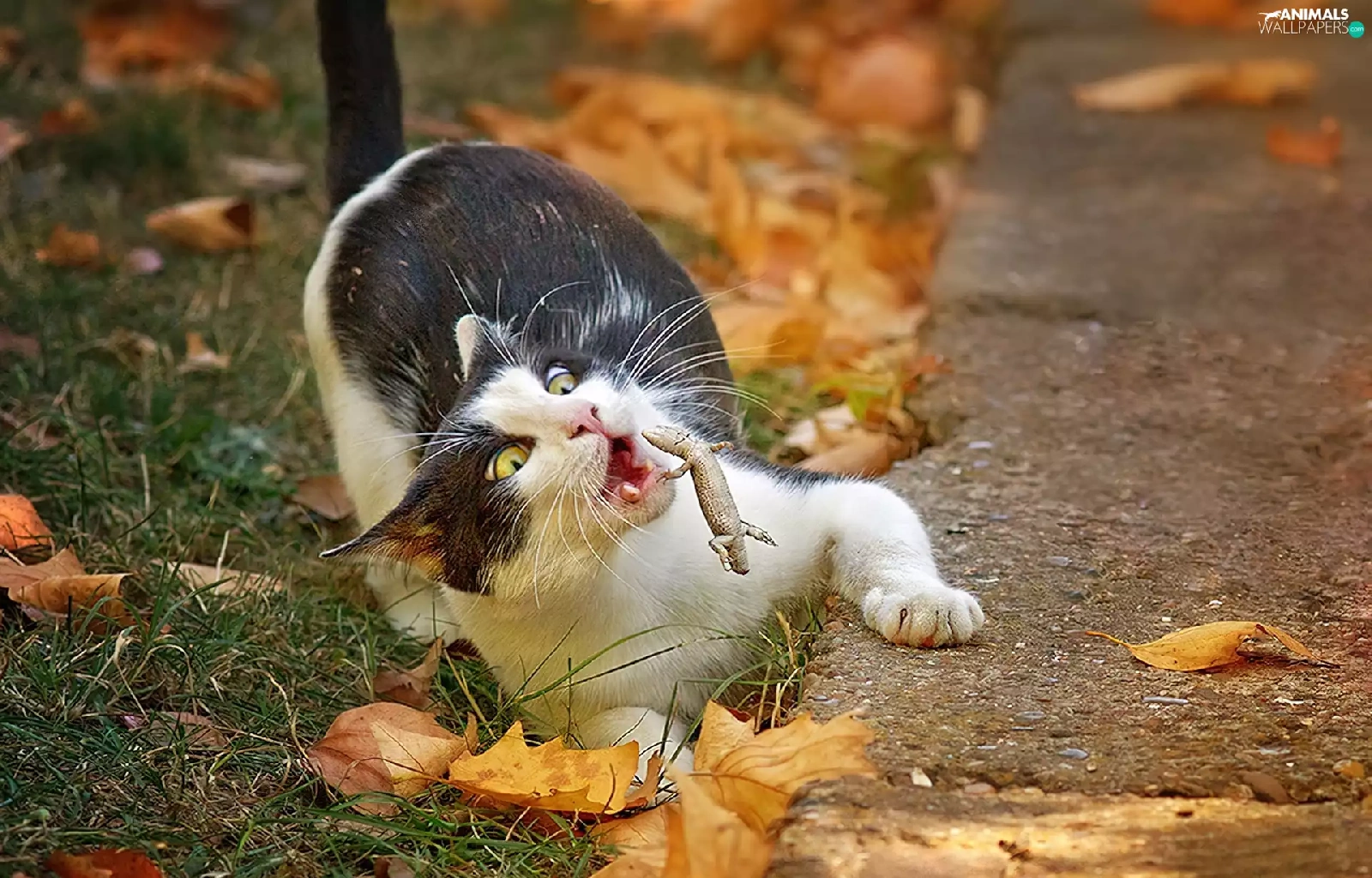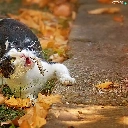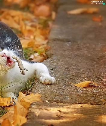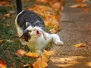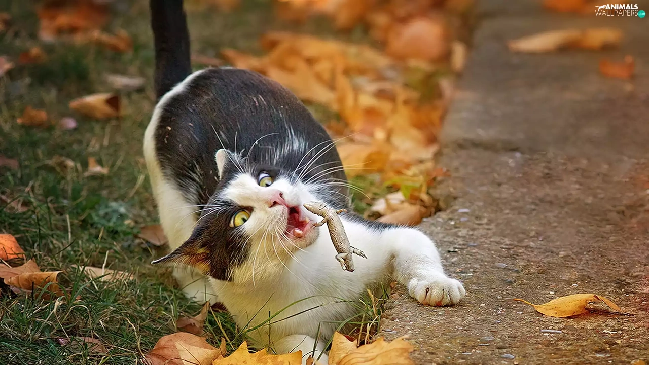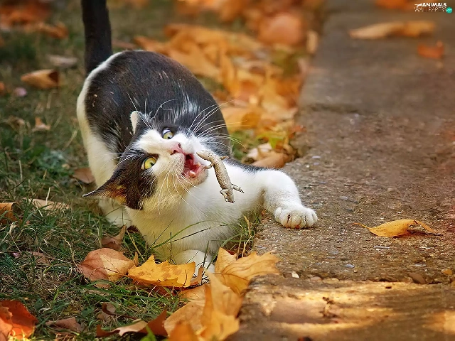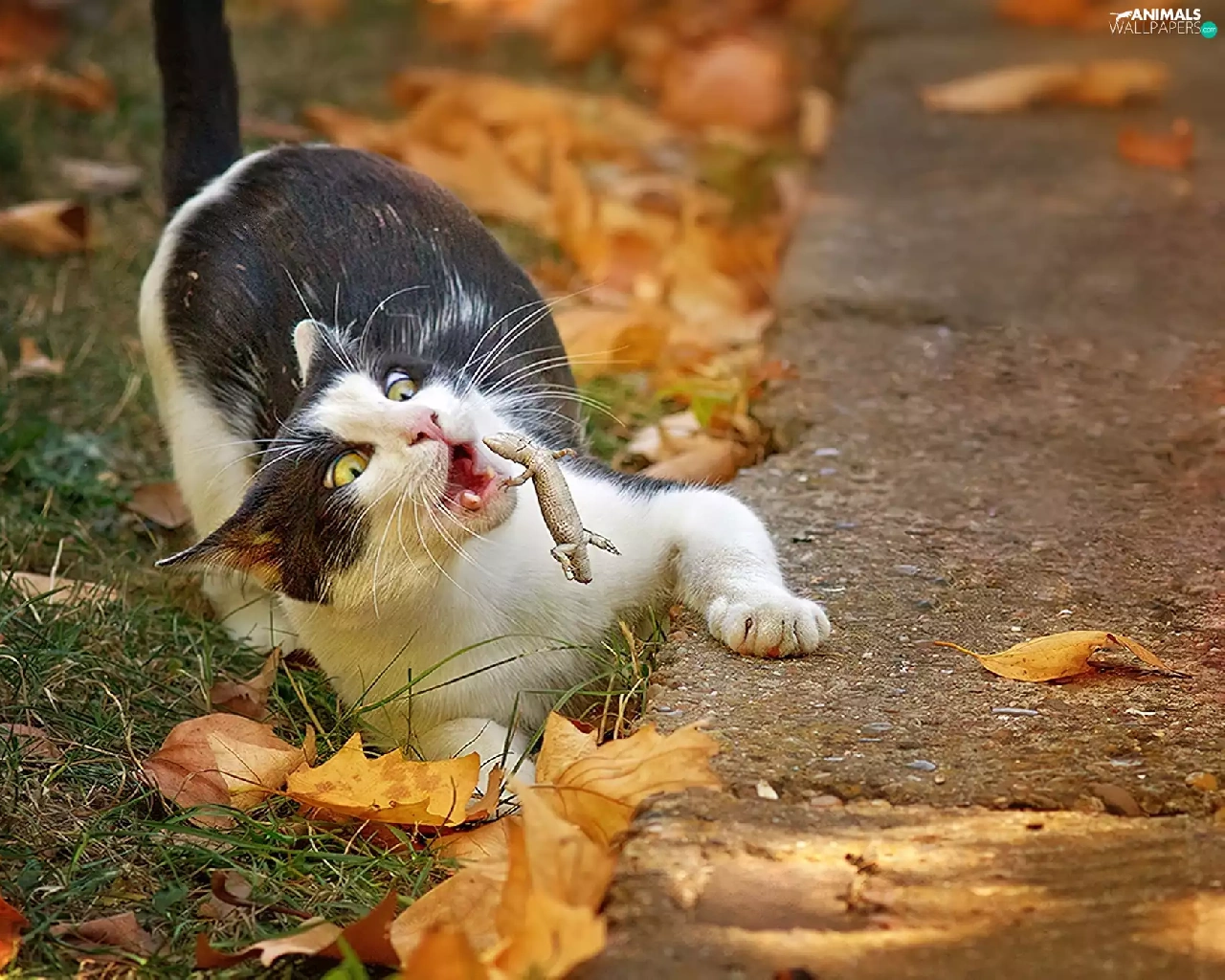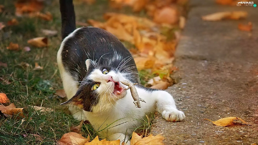 Leaf, cat, autumn