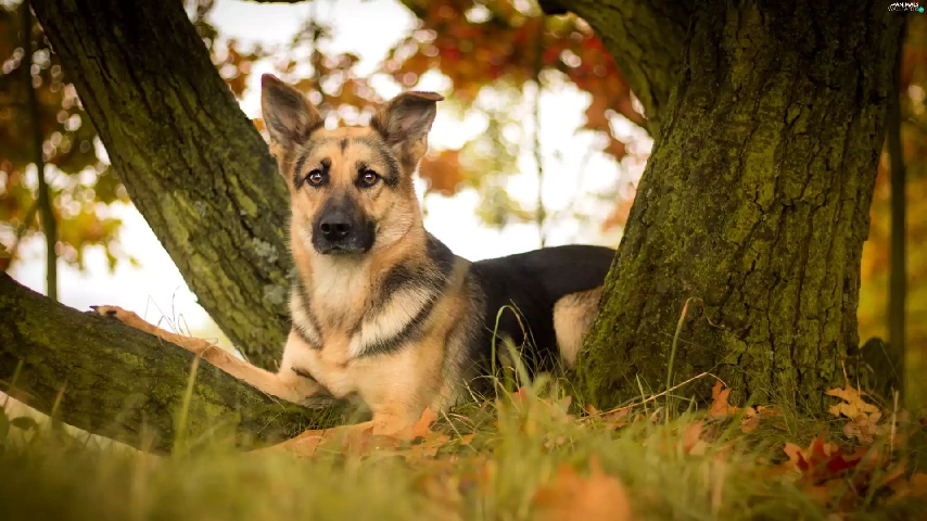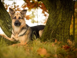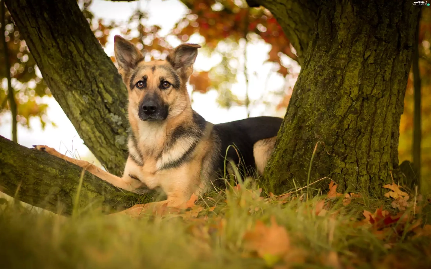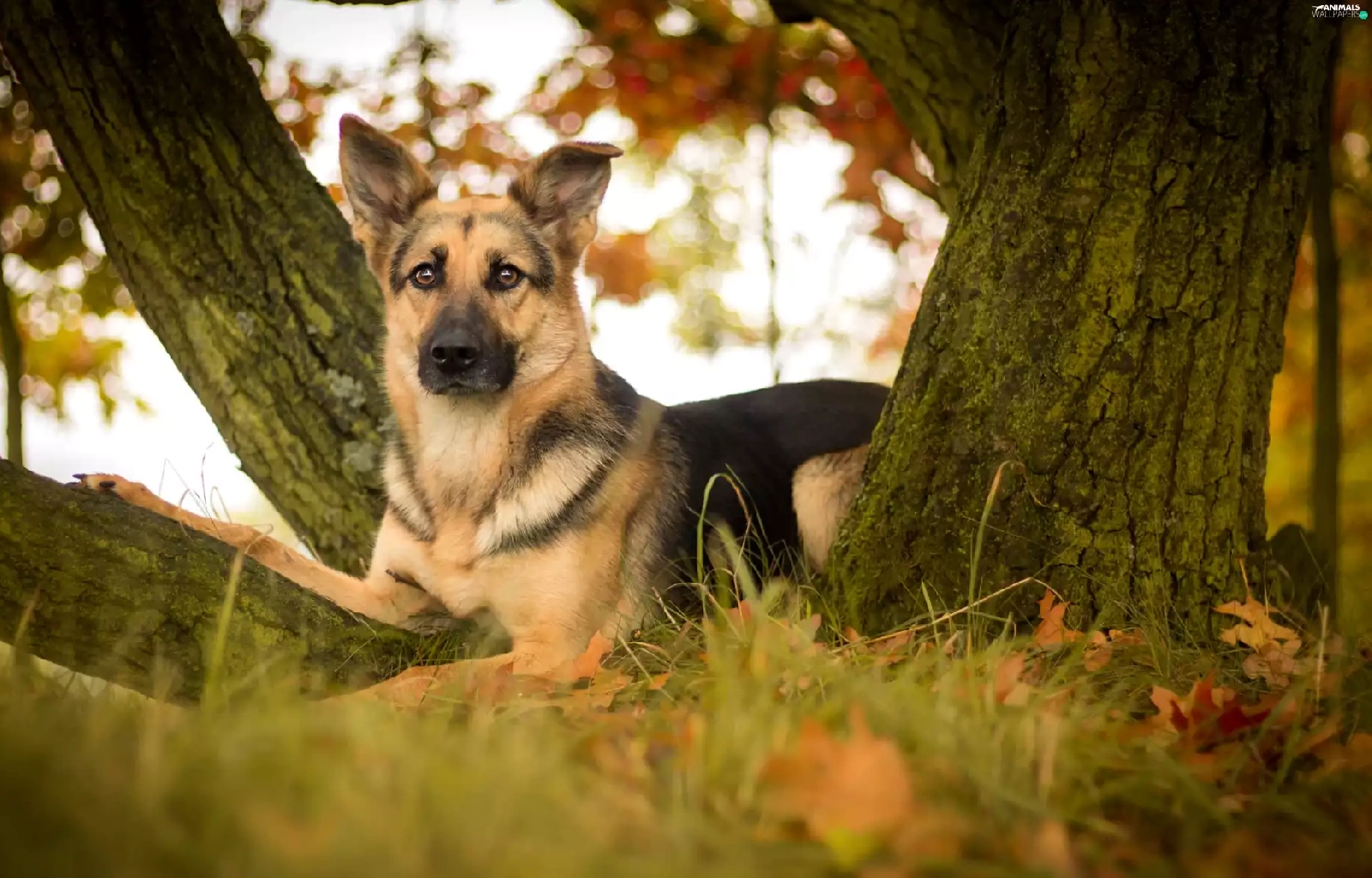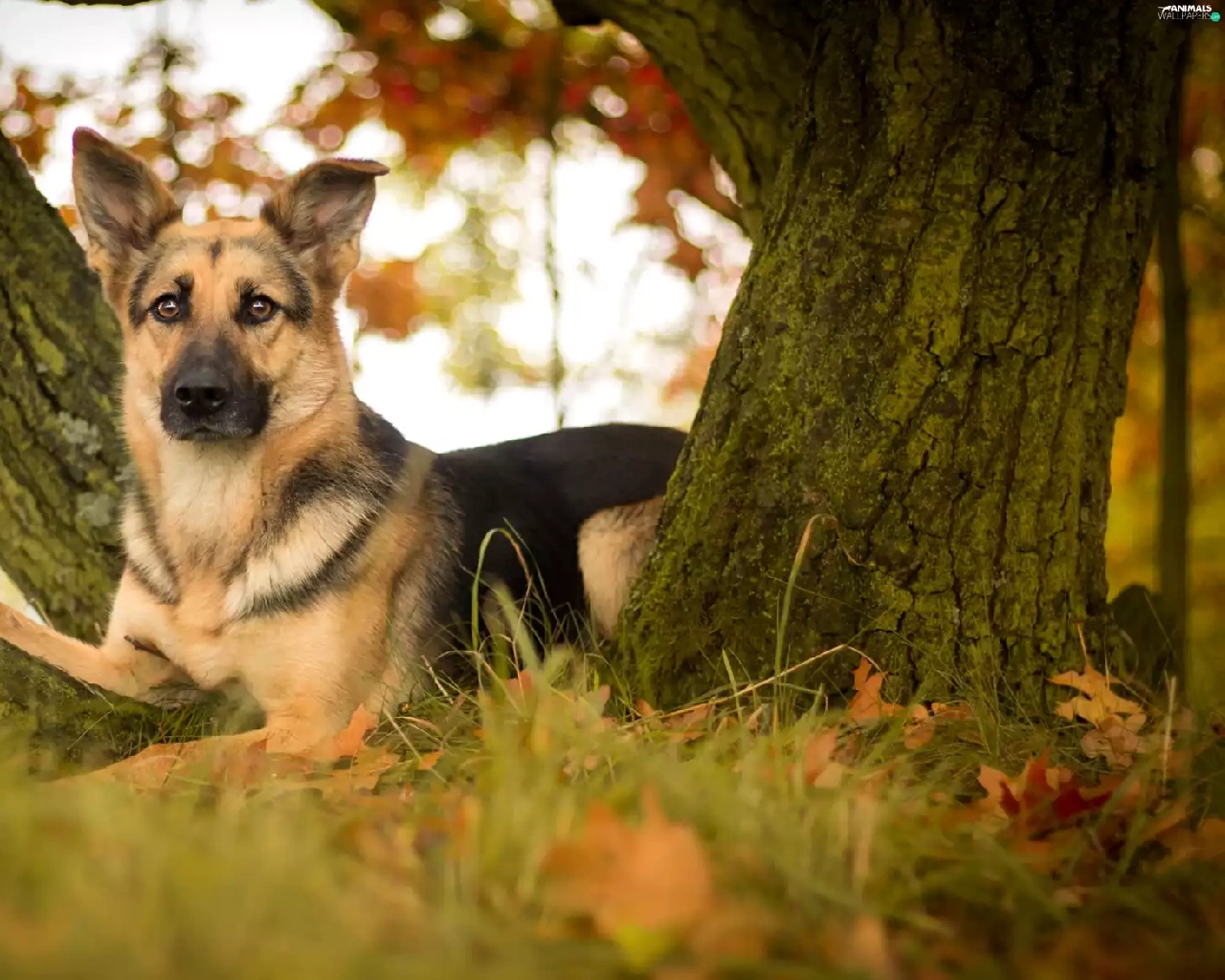 german, dog, Autumn, sheep-dog, autumn, trees, Leaf