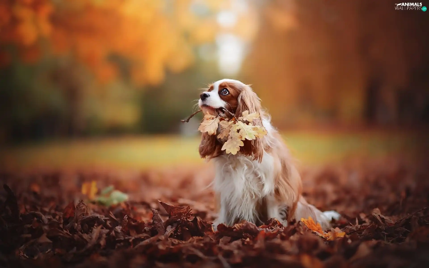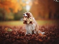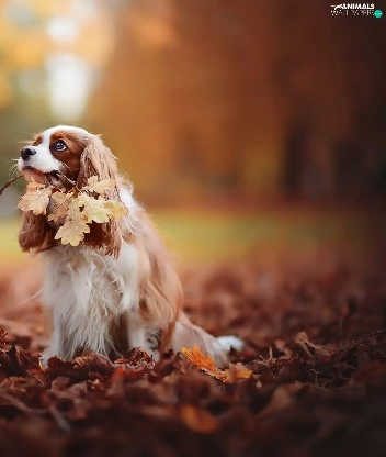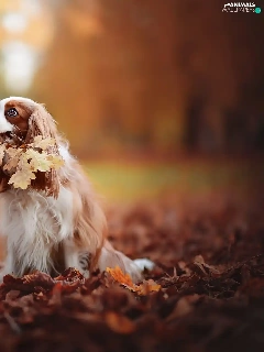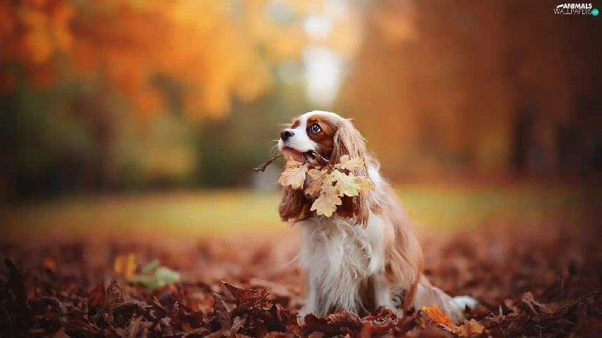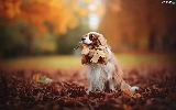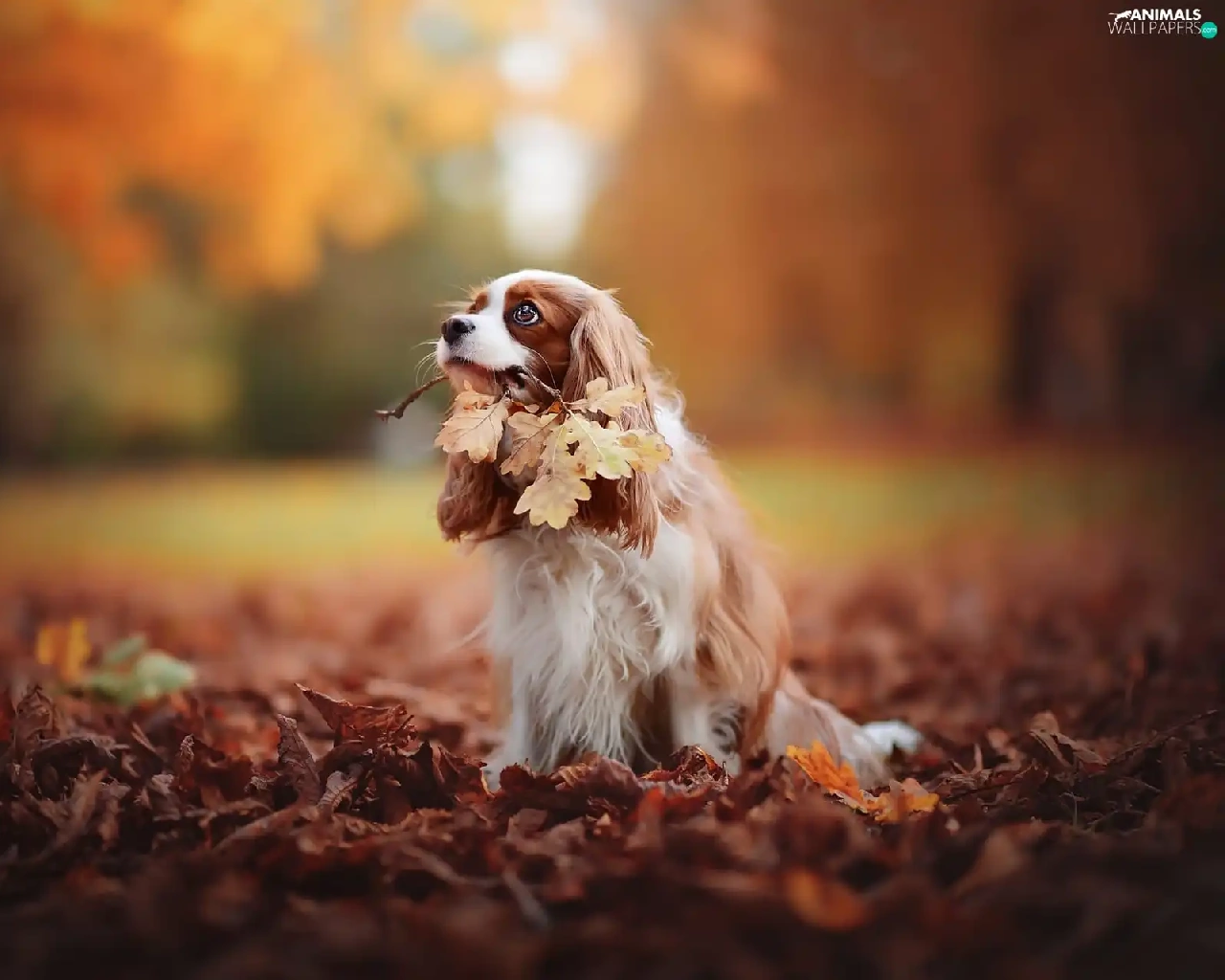 Cavalier King Charles spaniel, Leaf, autumn, Park