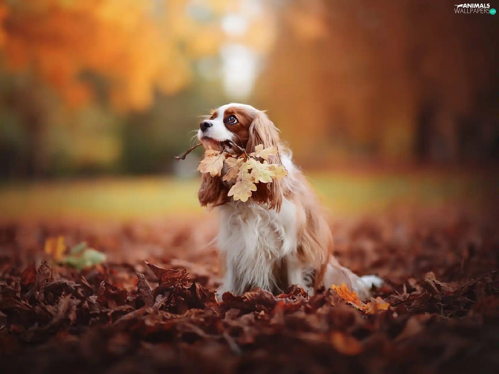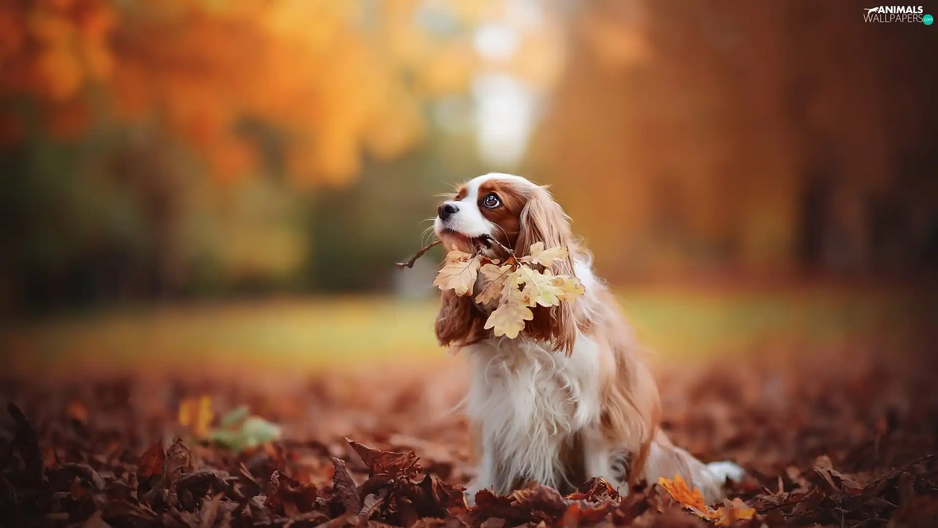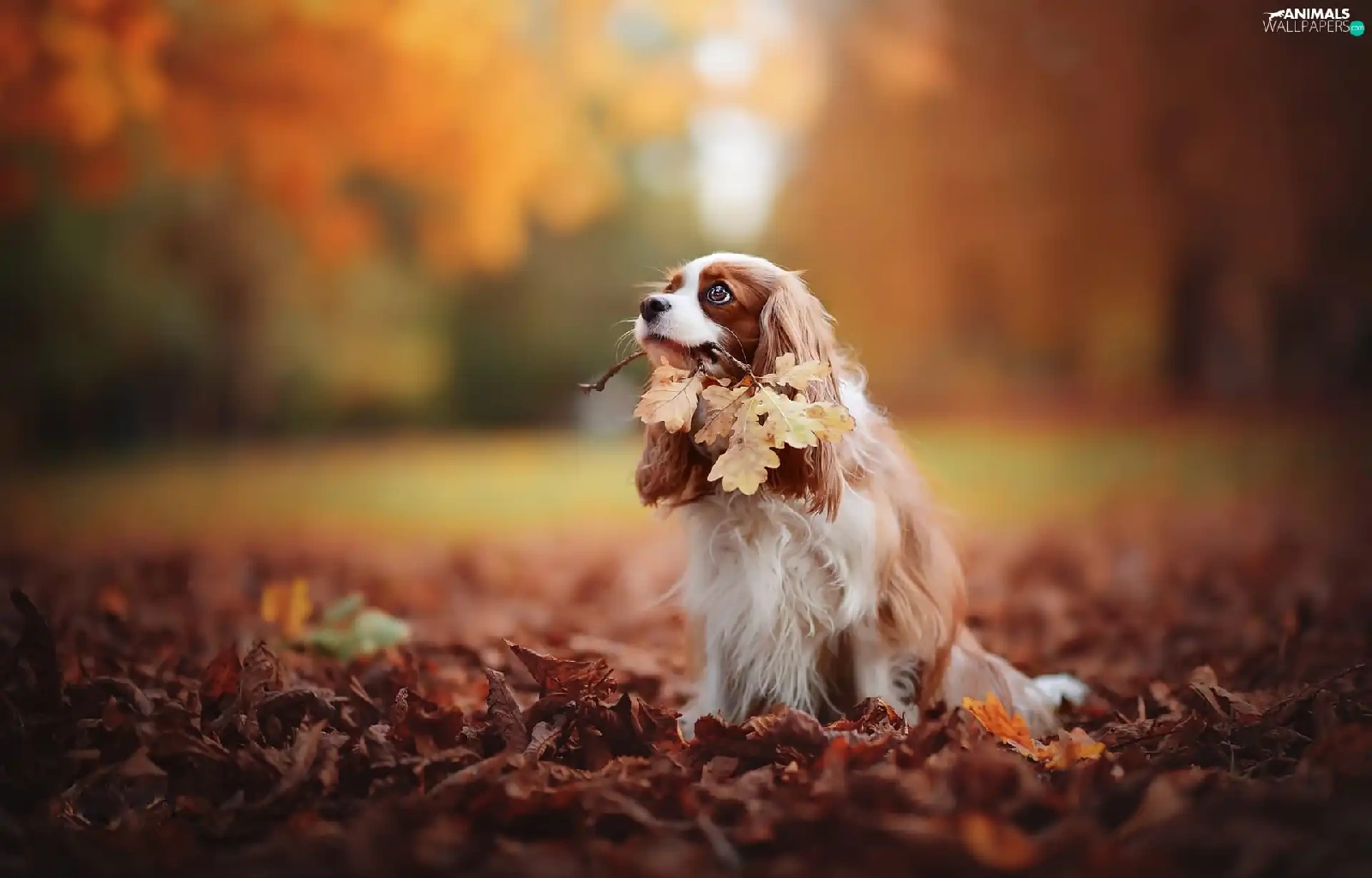 Cavalier King Charles spaniel, Leaf, autumn, Park