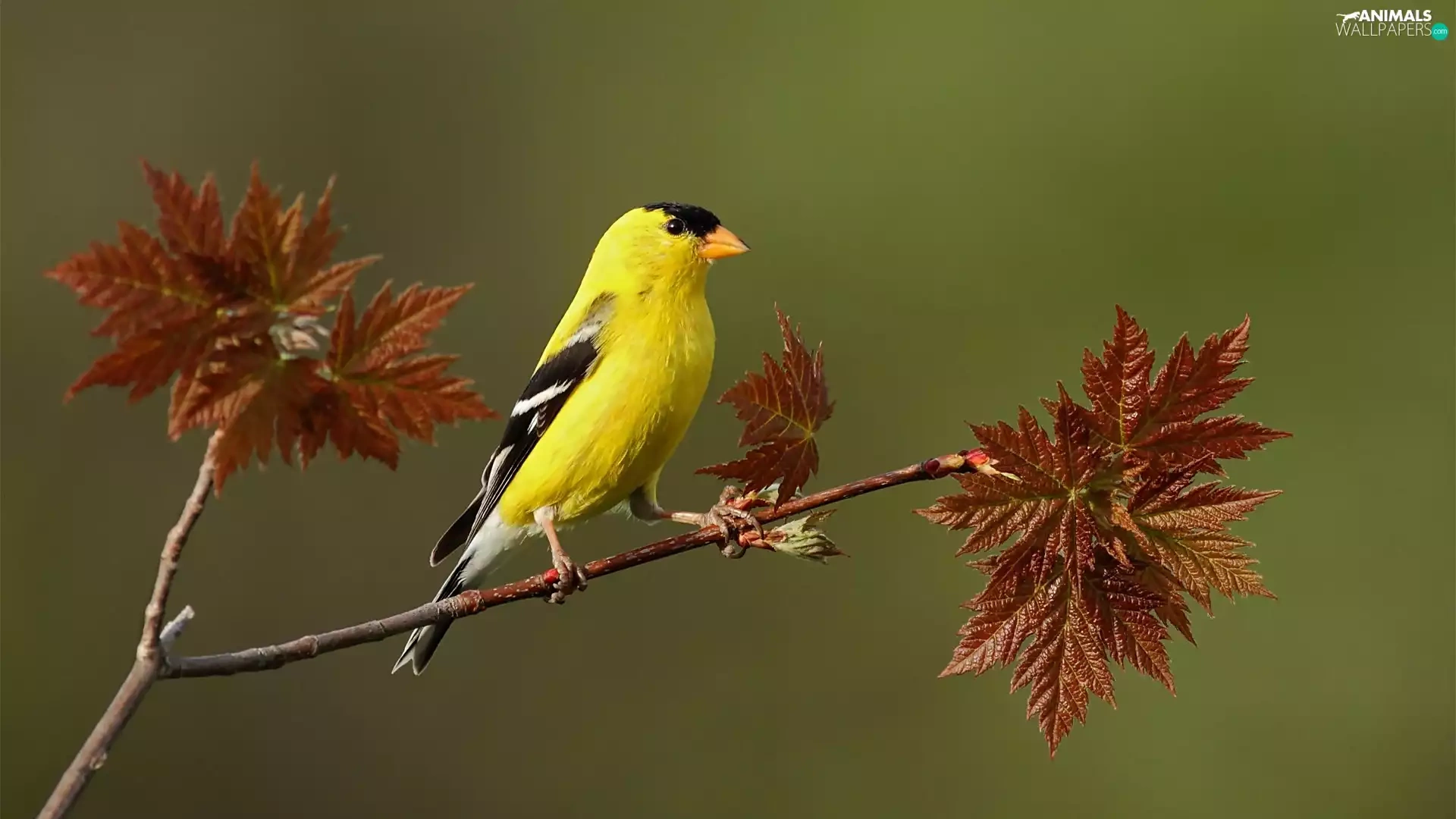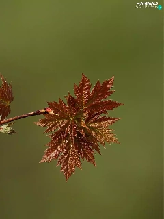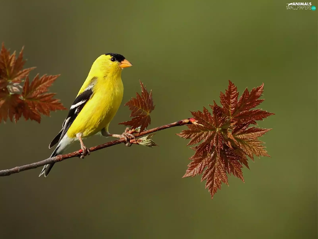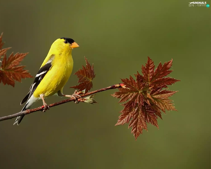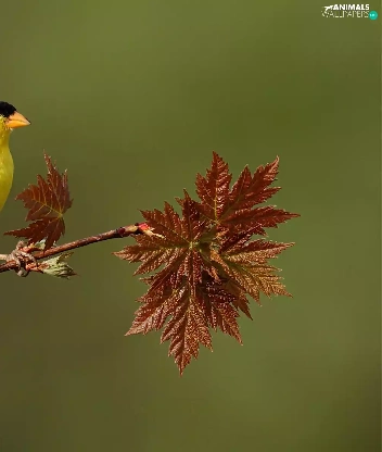 Brown, Leaf, birdies, twig, Yellow