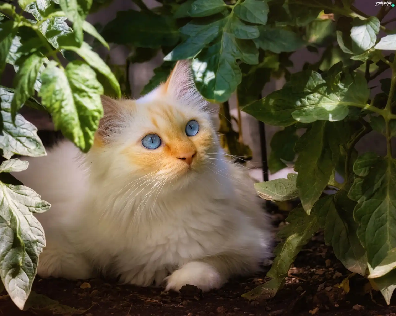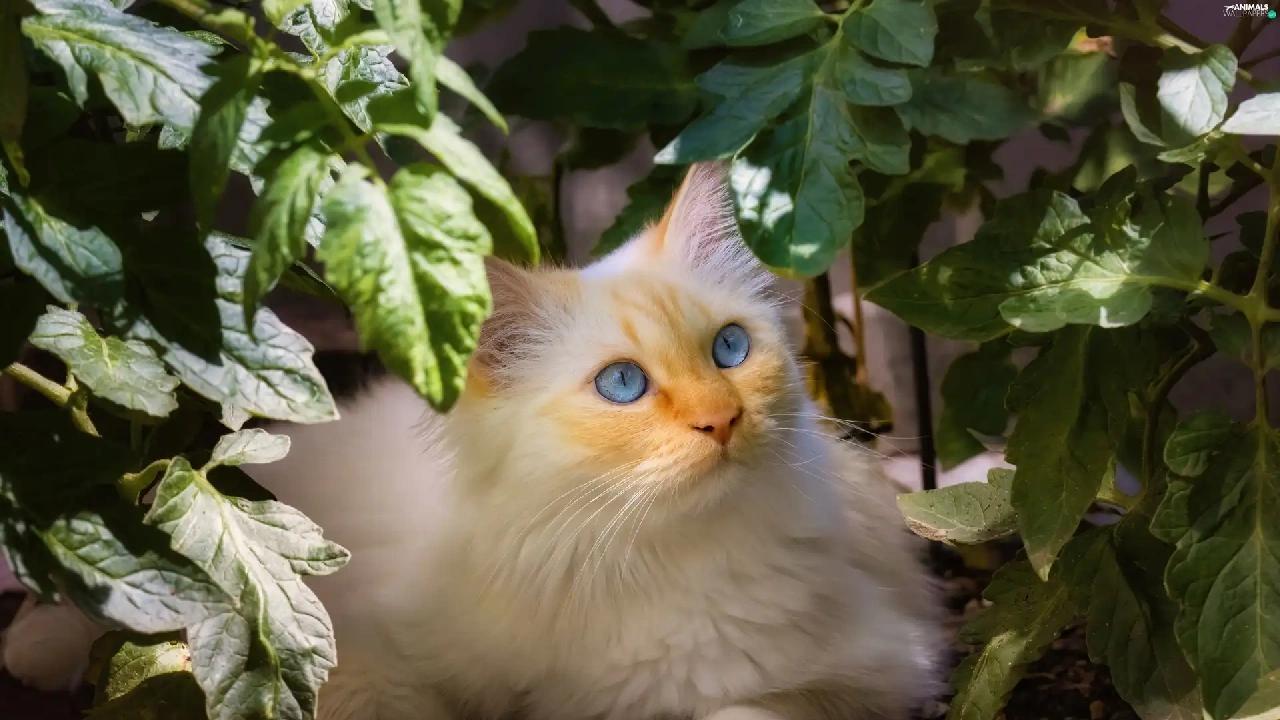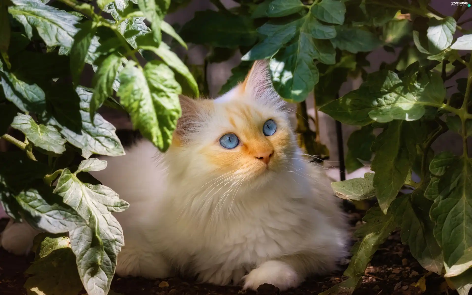 Blue, White, plant, Leaf, Eyes, cat