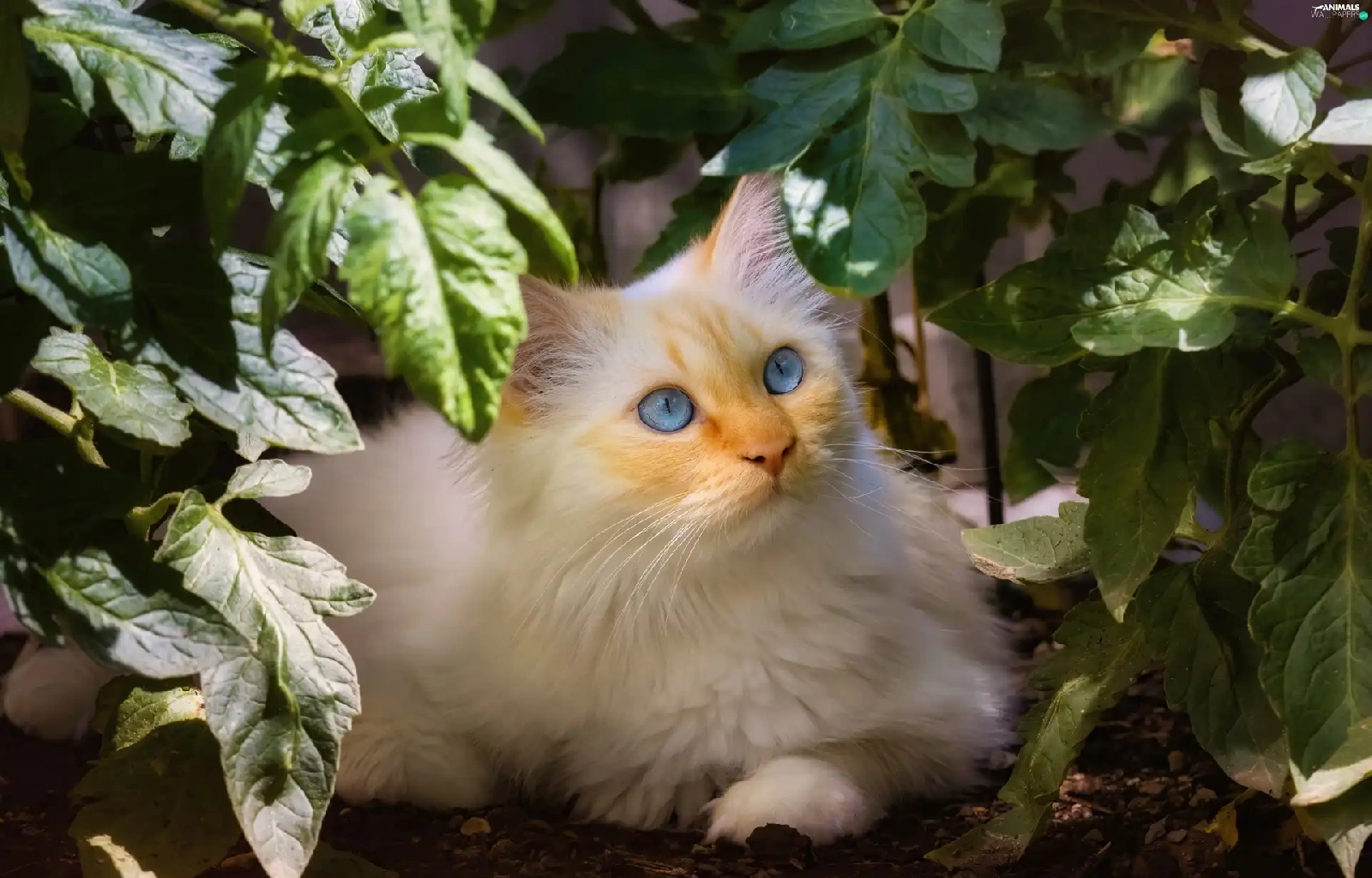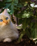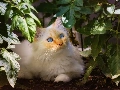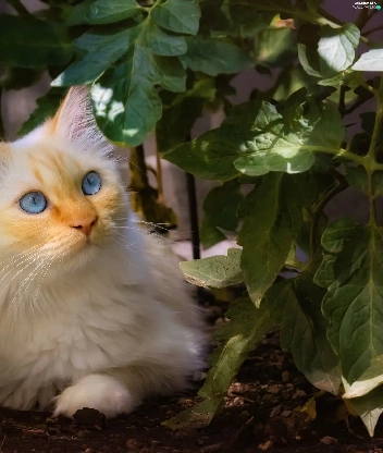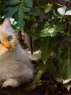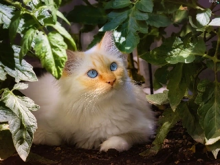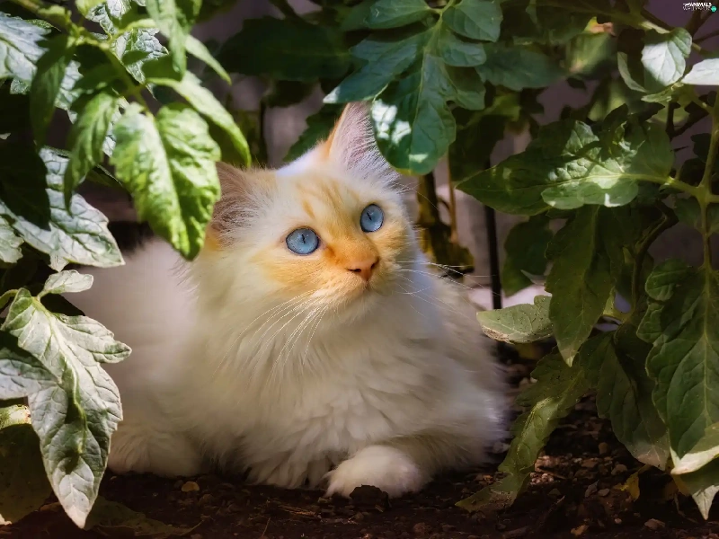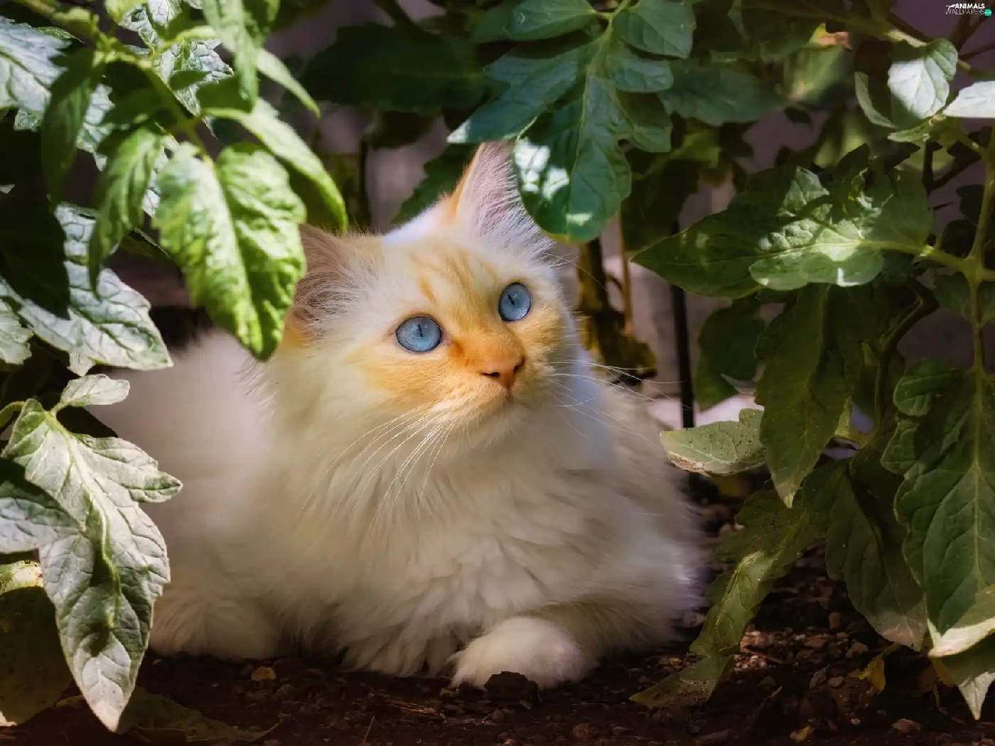 Blue, White, plant, Leaf, Eyes, cat