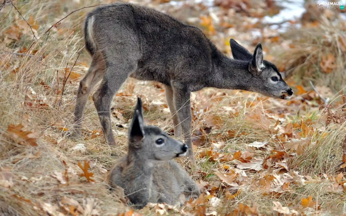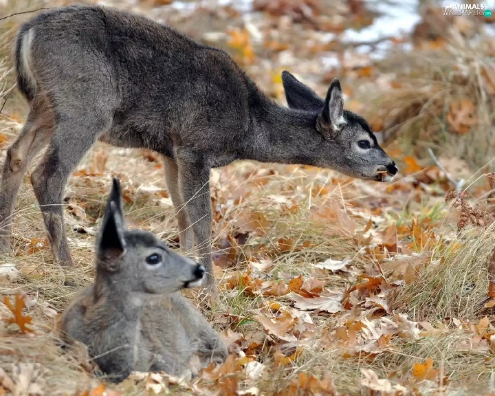 deer, grass, autumn, Leaf