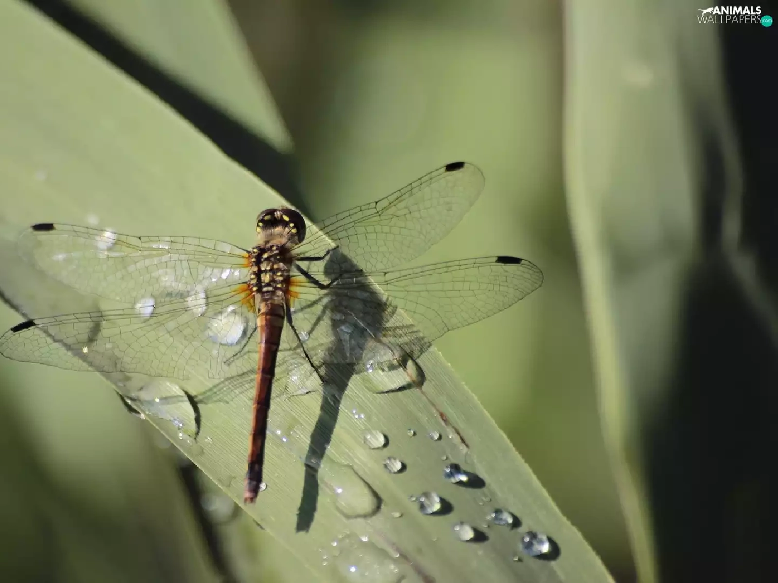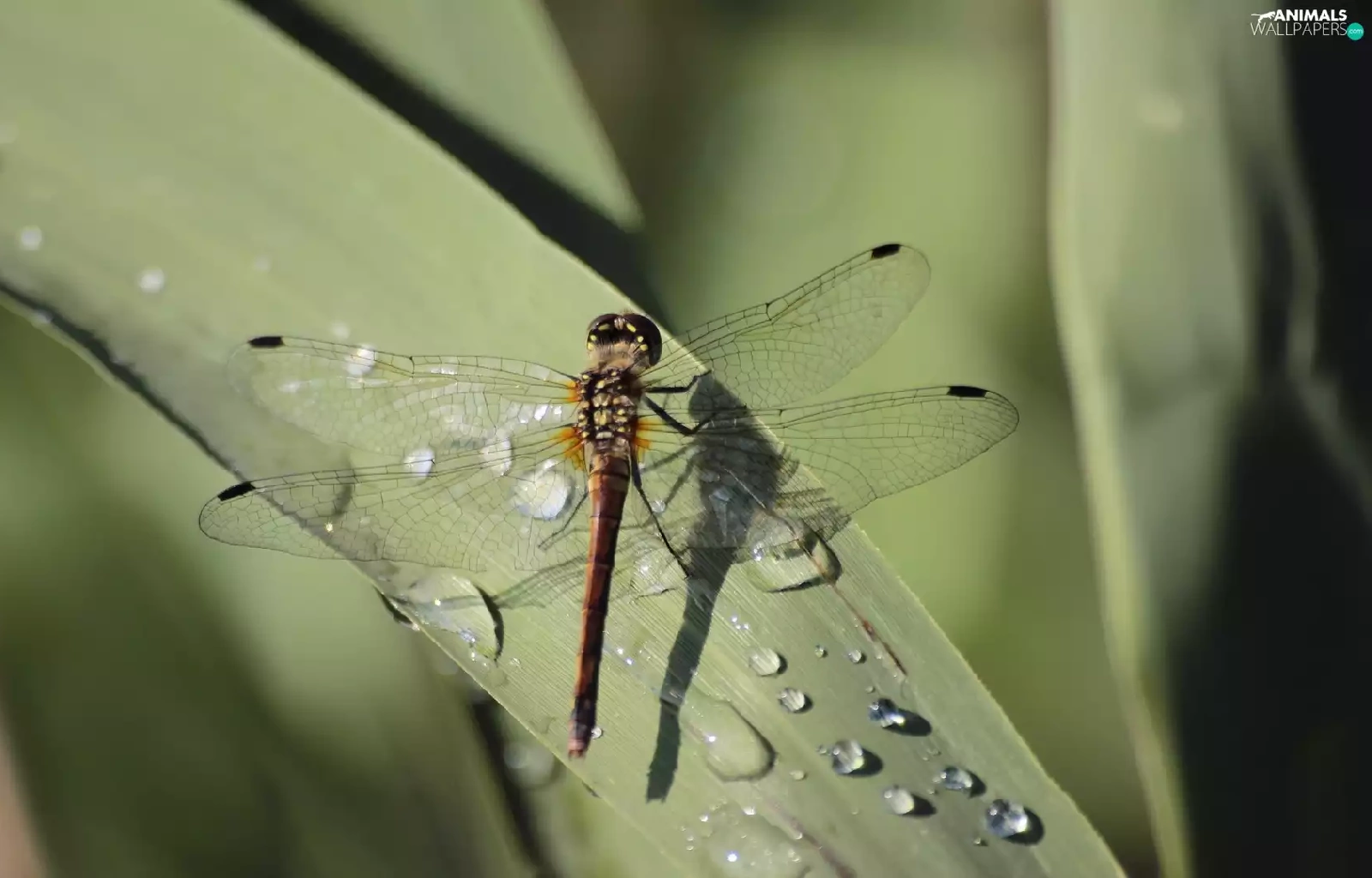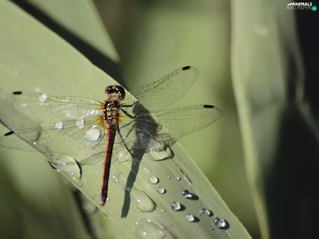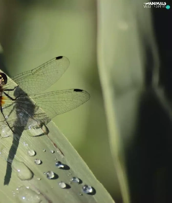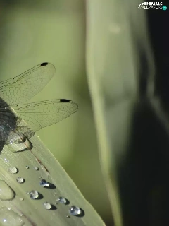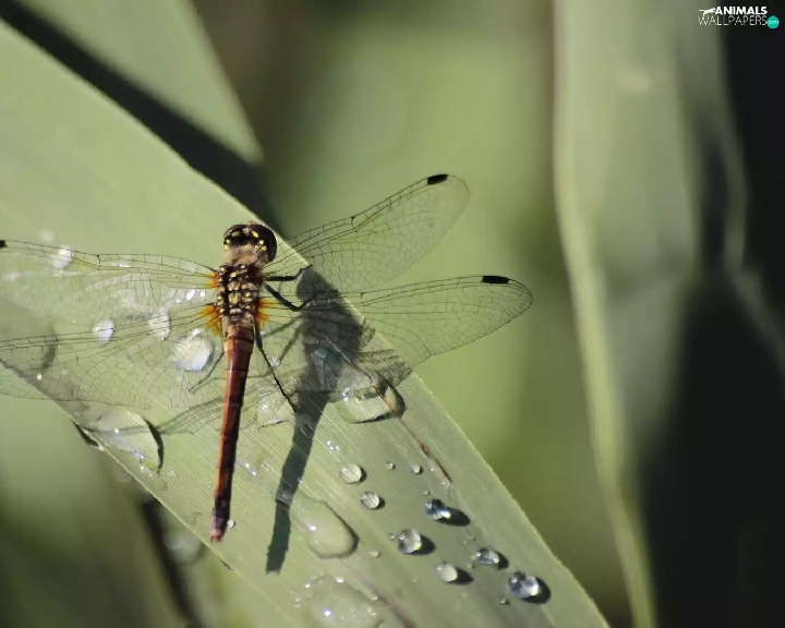 dew, dragon-fly, Leaf