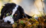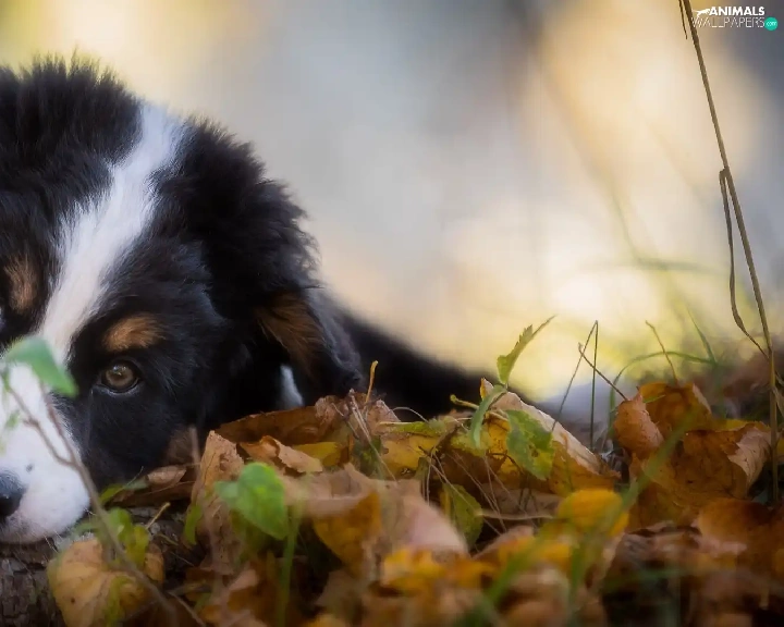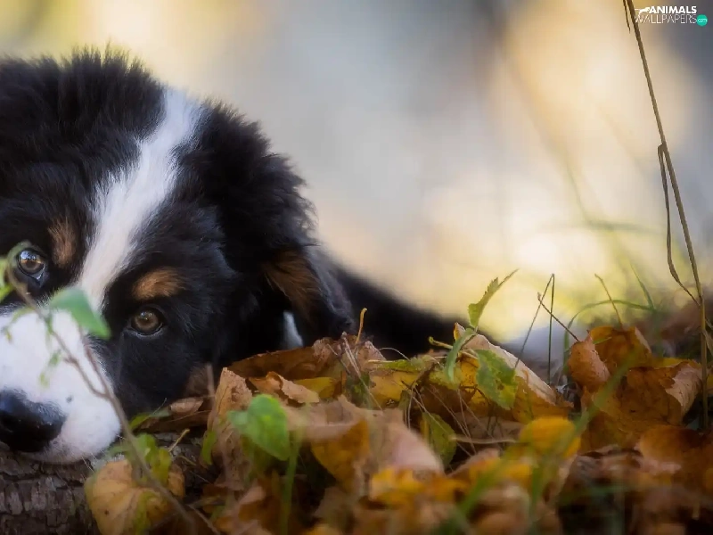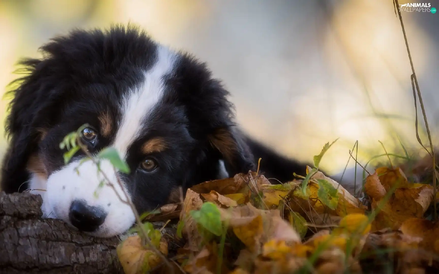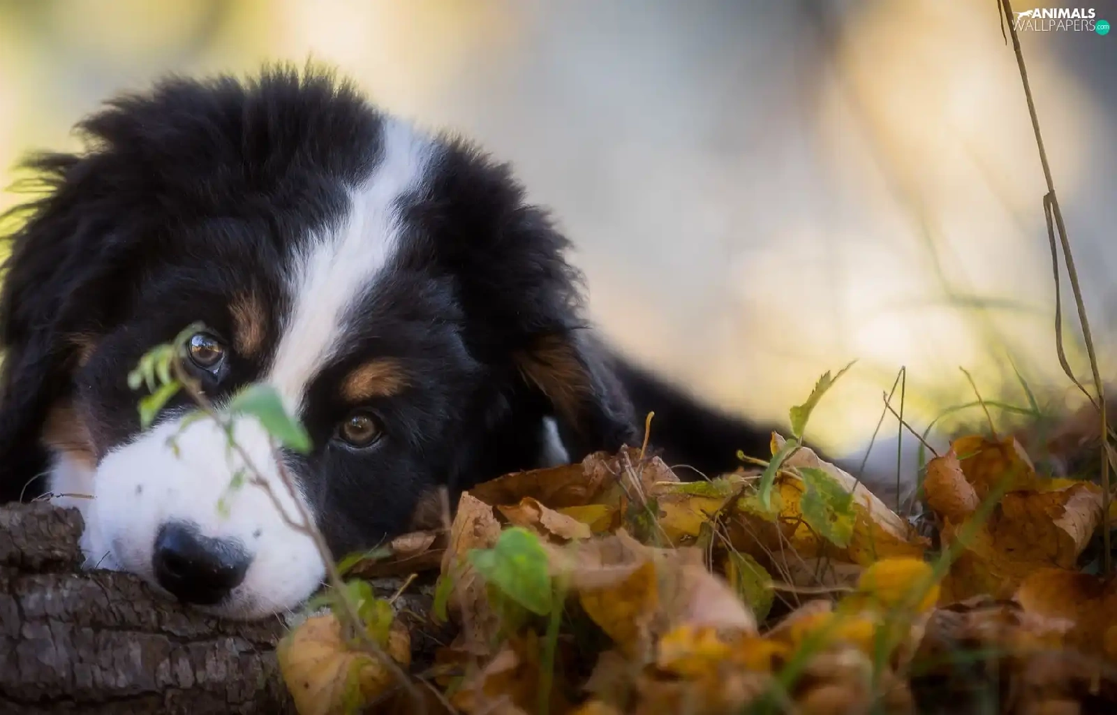 Bernese Mountain Dog, muzzle, Leaf, Puppy