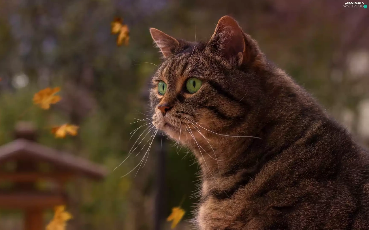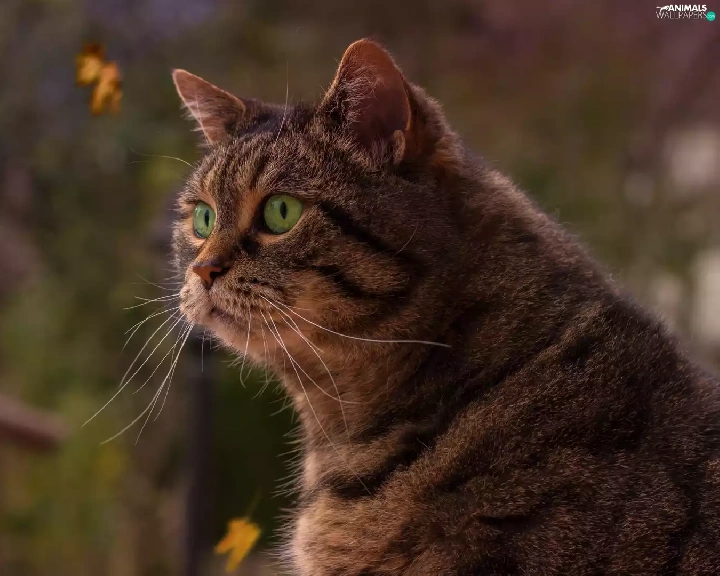 profile, dun, Eyes, Leaf, green ones, cat