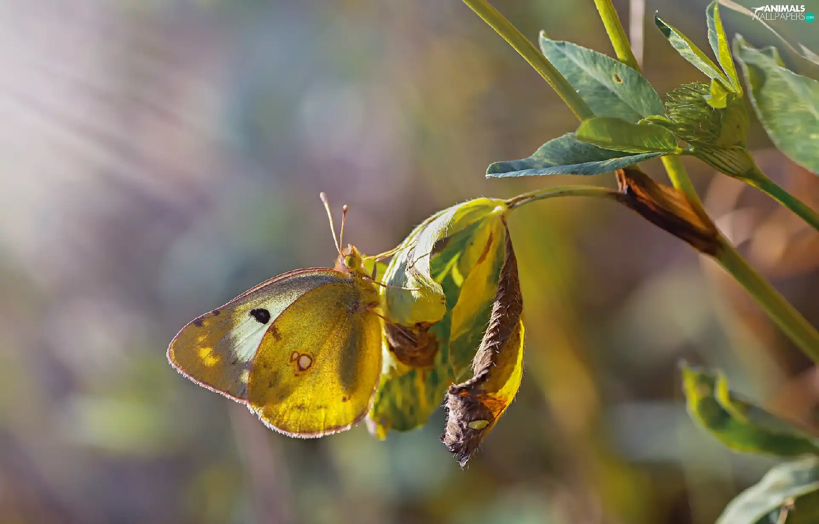 Leaf, butterfly, plant, ligh, fuzzy, background, flash, luminosity, sun