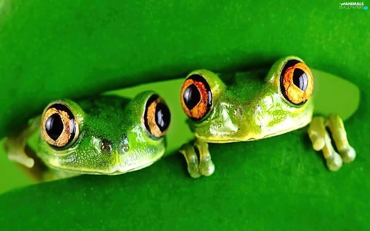 leaf, Two, frogs