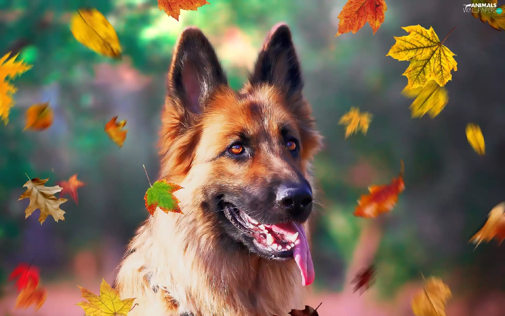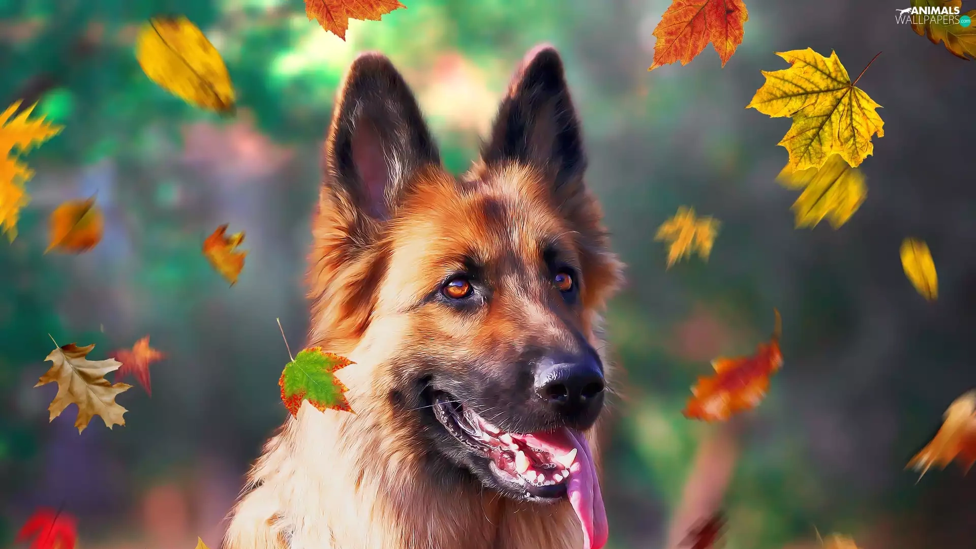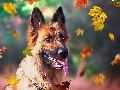 dog, Leaf, graphics, German Shepherd