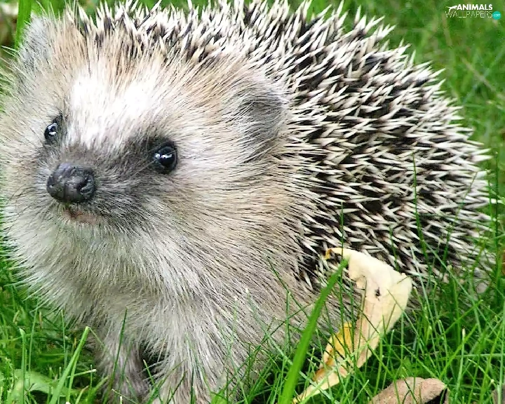Leaf, hedgehog, grass