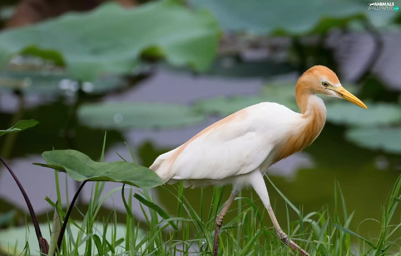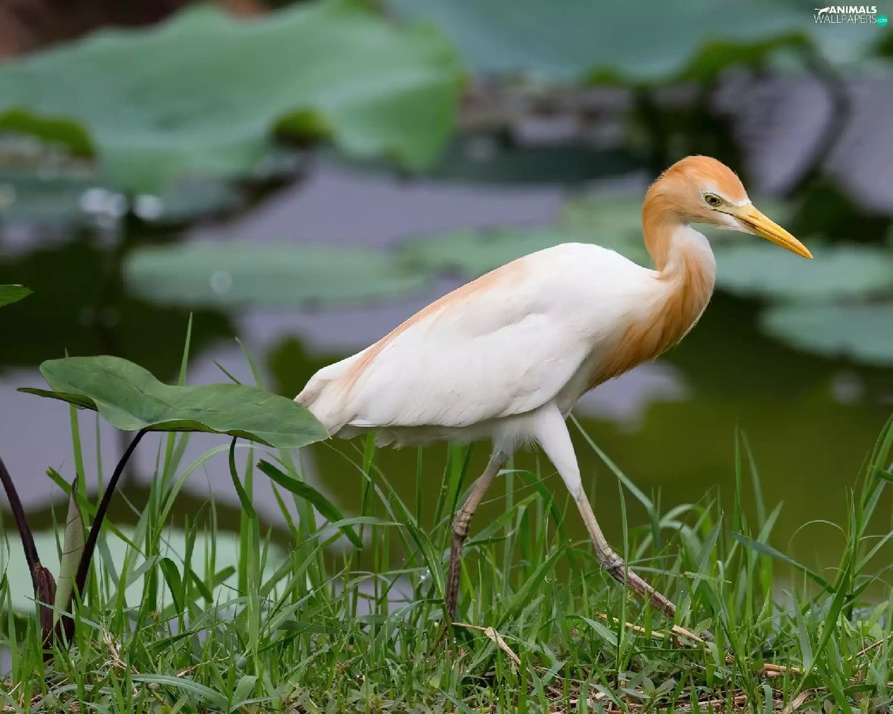 heron, Leaf, grass, green ones