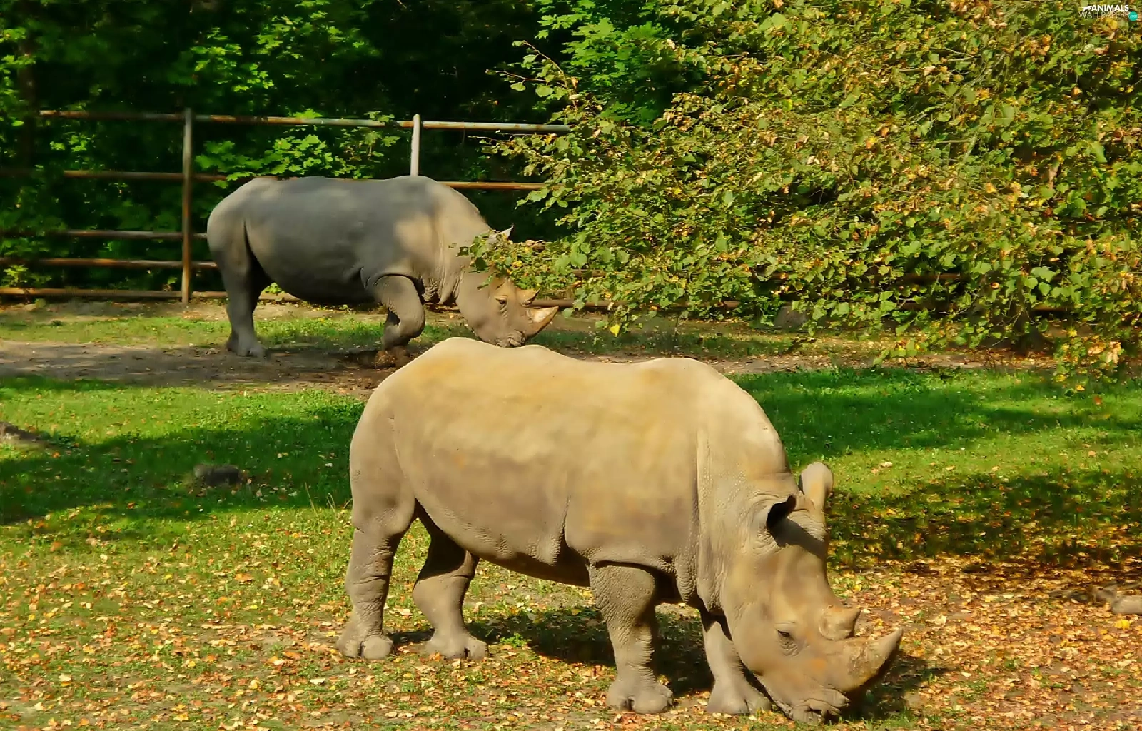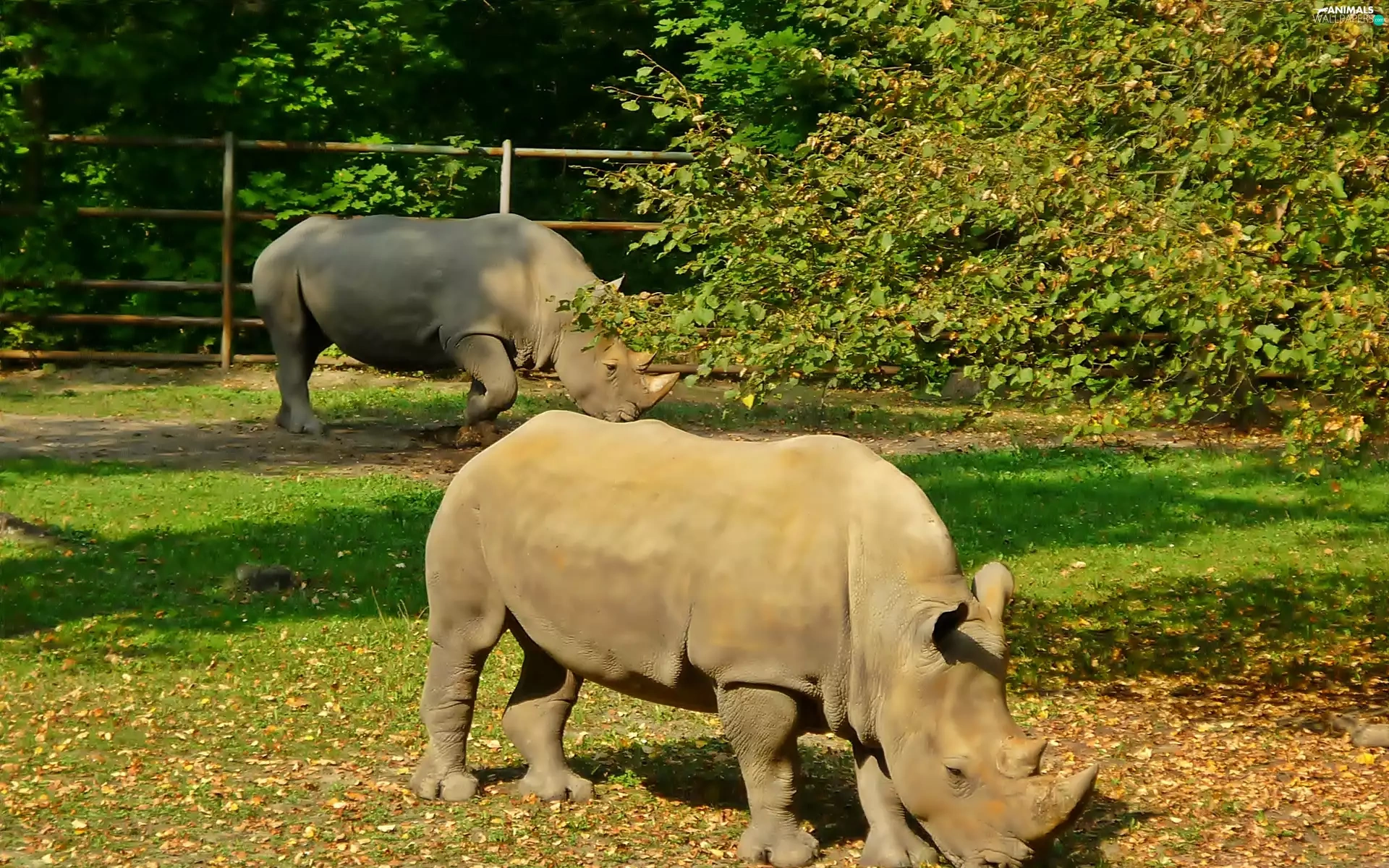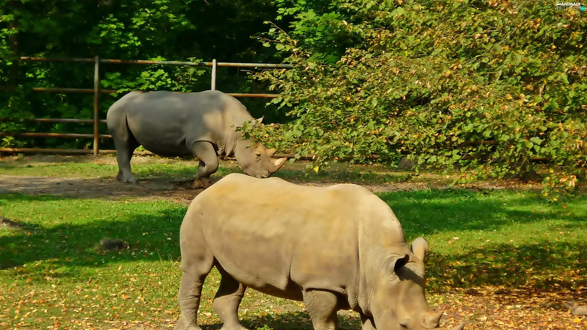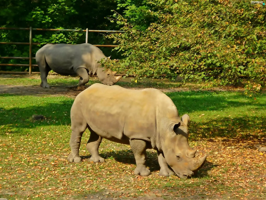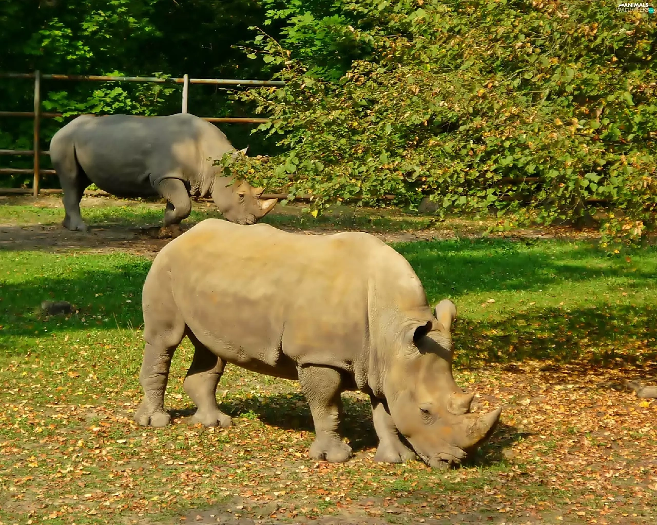 viewes, Leaf, grass, trees, Rhinos
