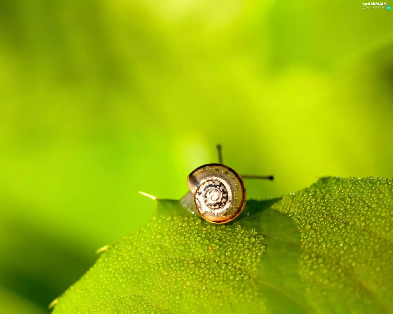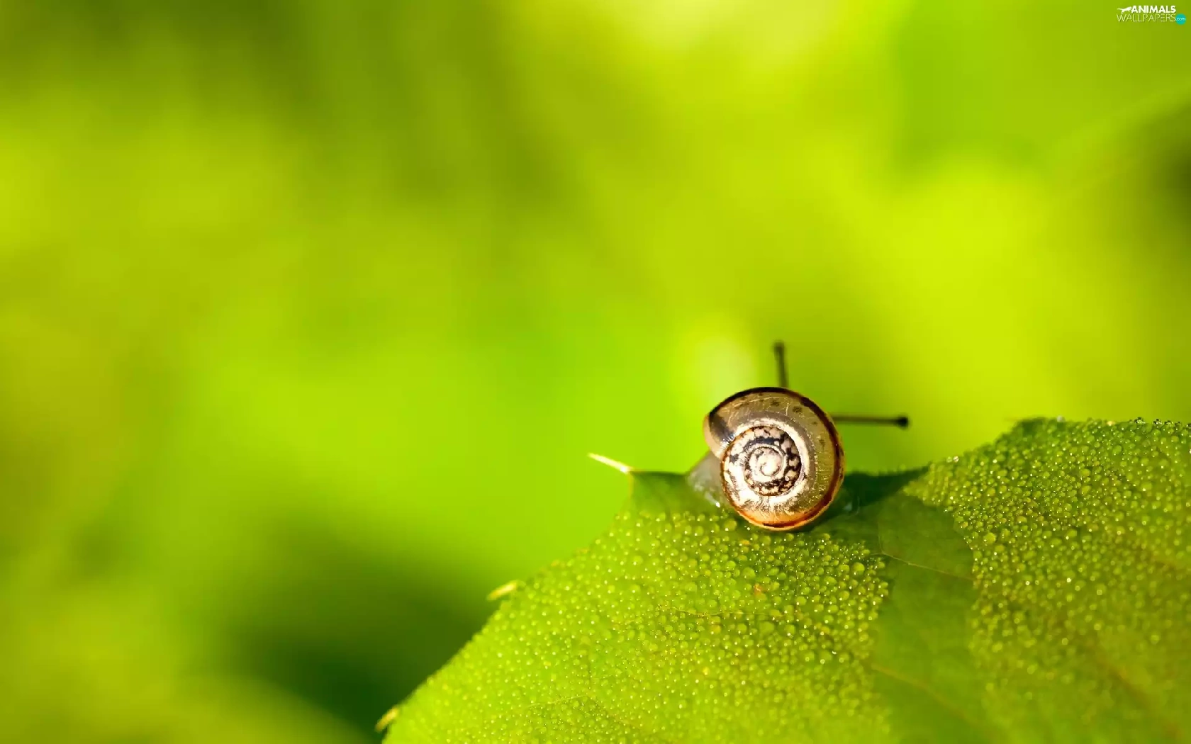 leaf, snail, Green