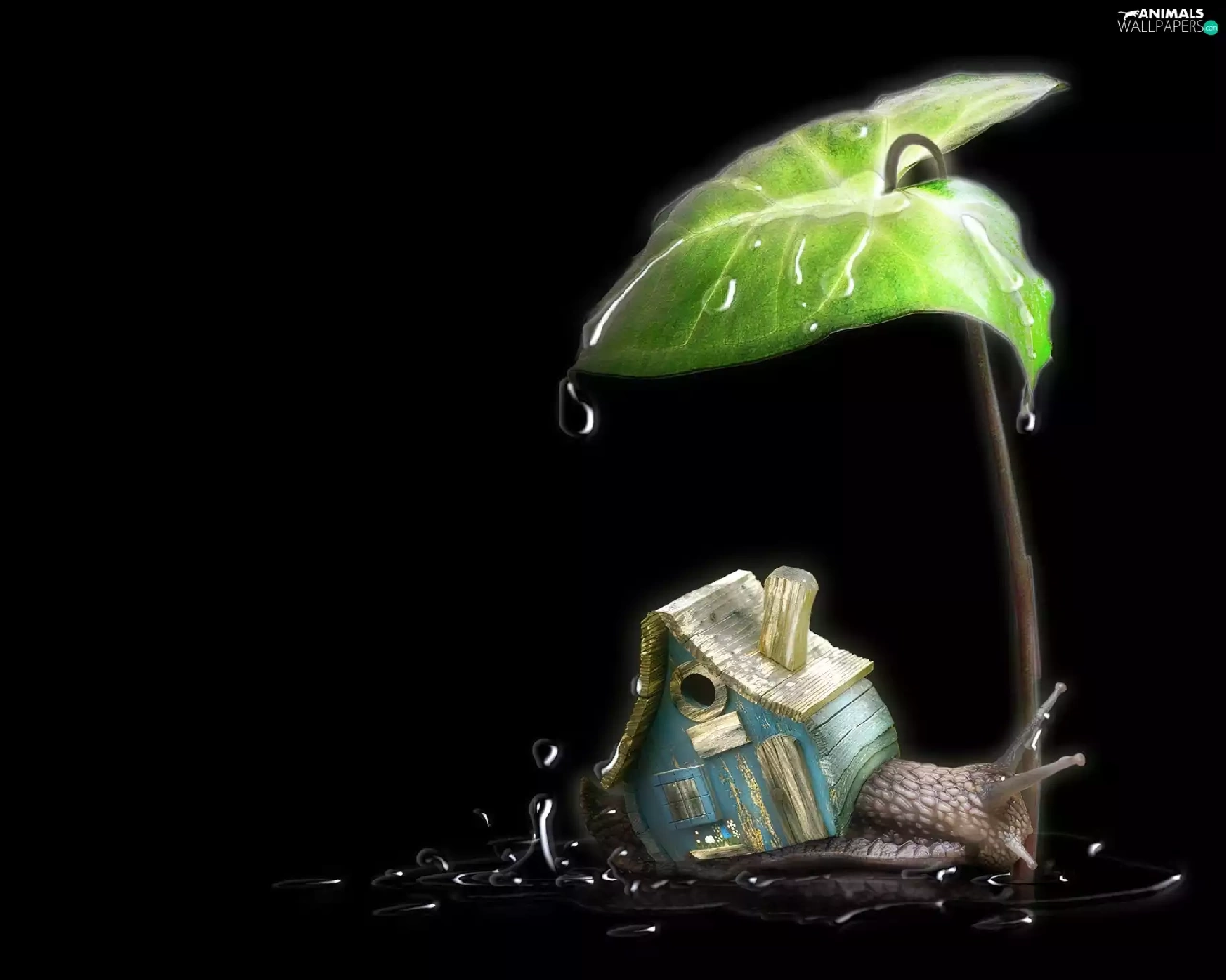 leaf, snail, Home