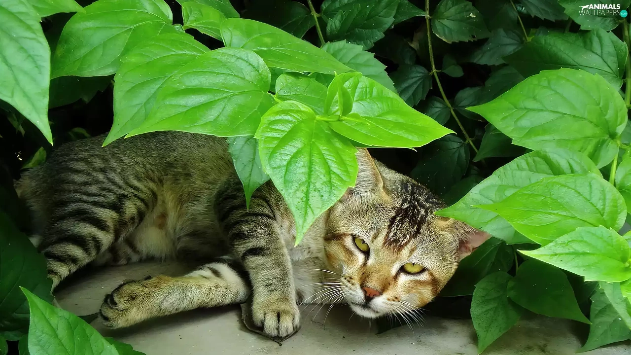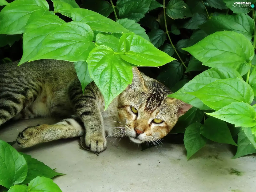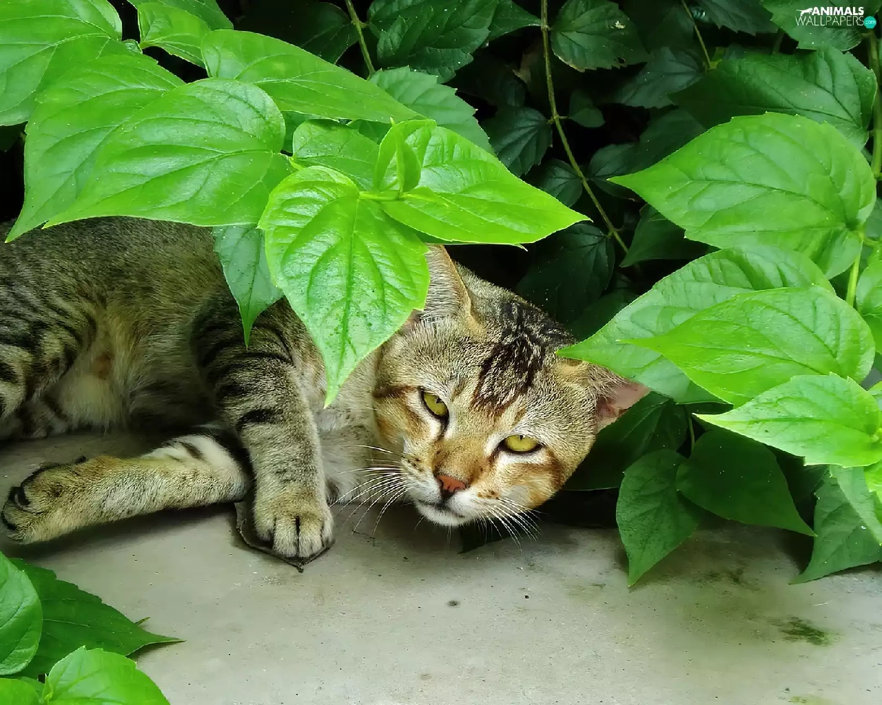Leaf, lying, kitten