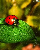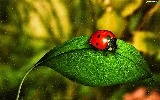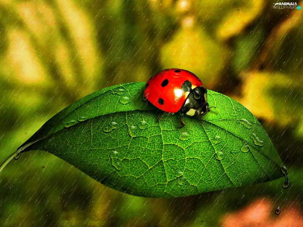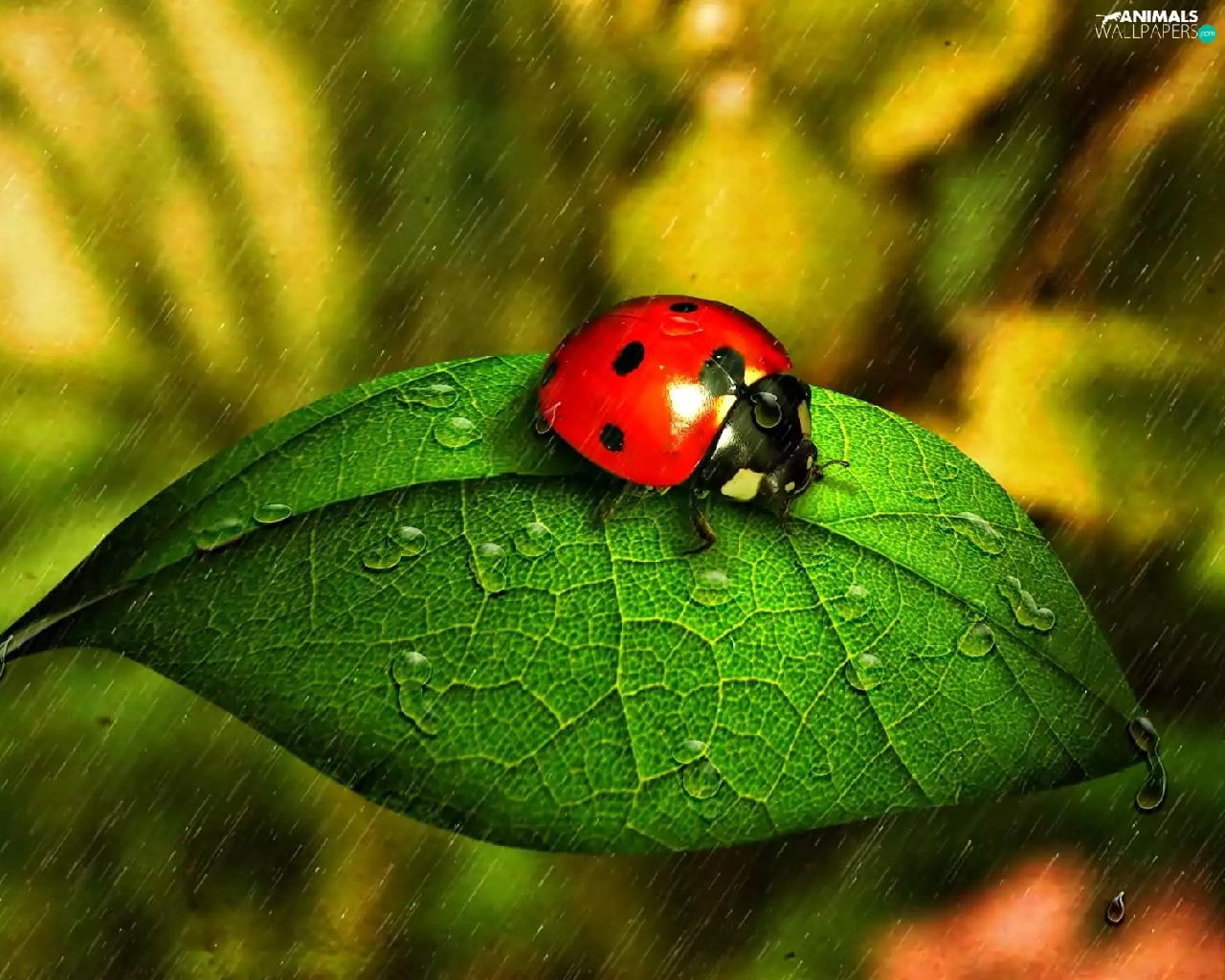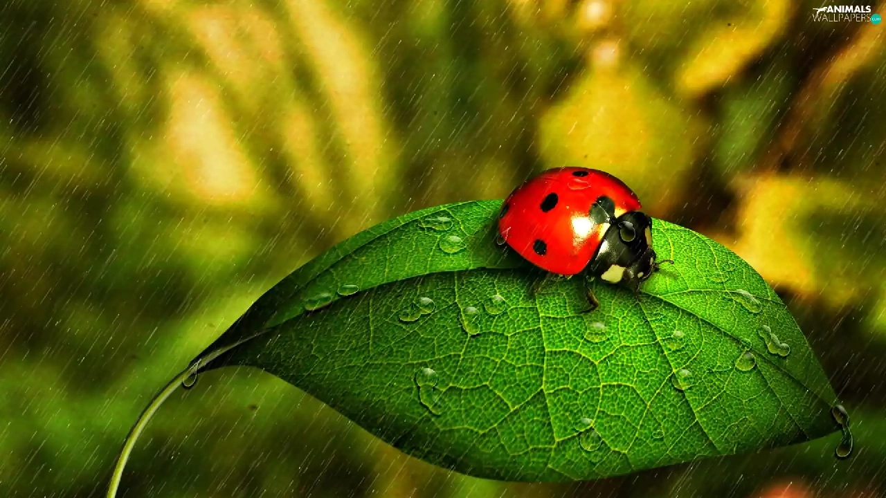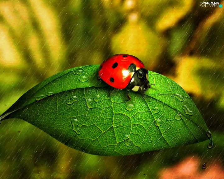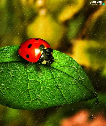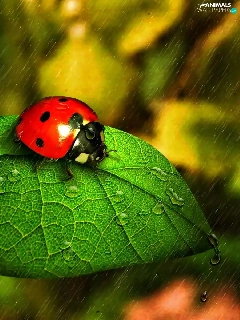 ladybird, Rain, drops, leaf