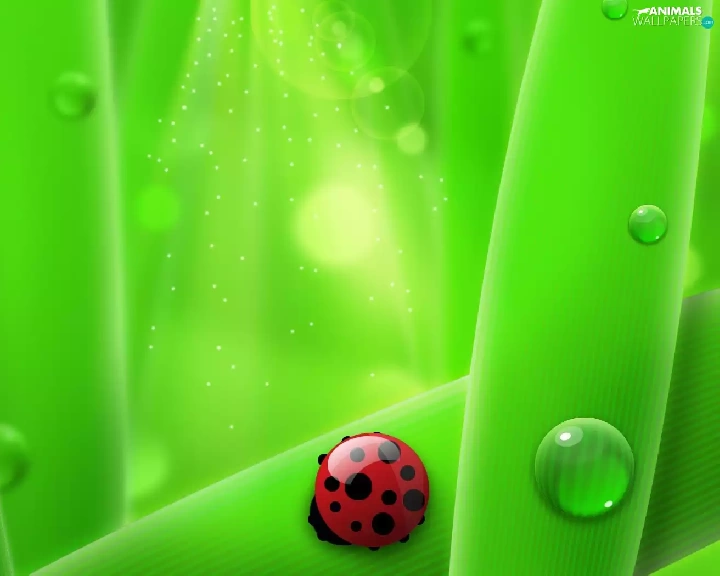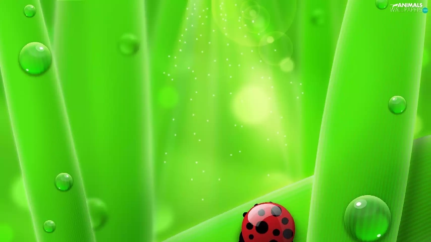 Ladybird, drops, water, Leaf