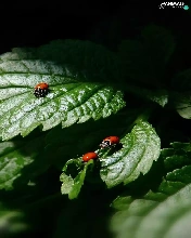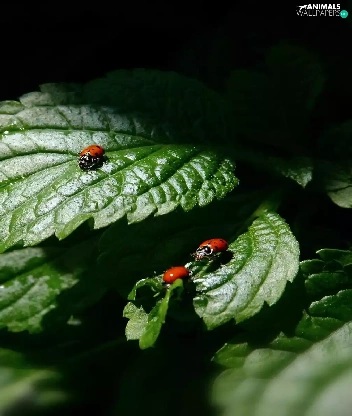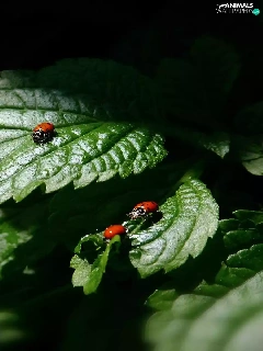 ladybugs, green ones, Leaf