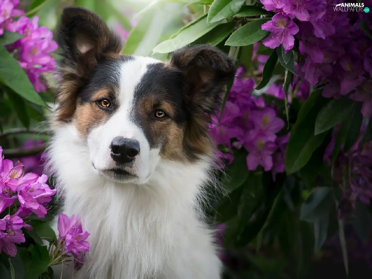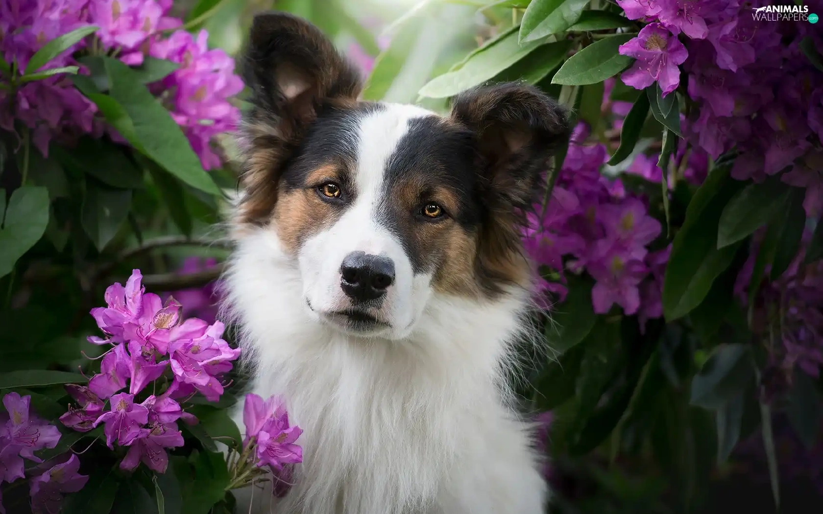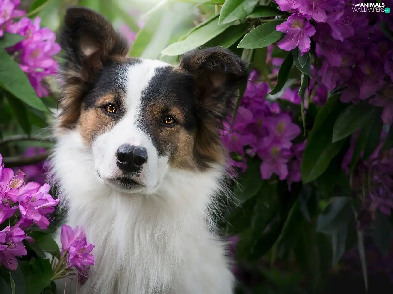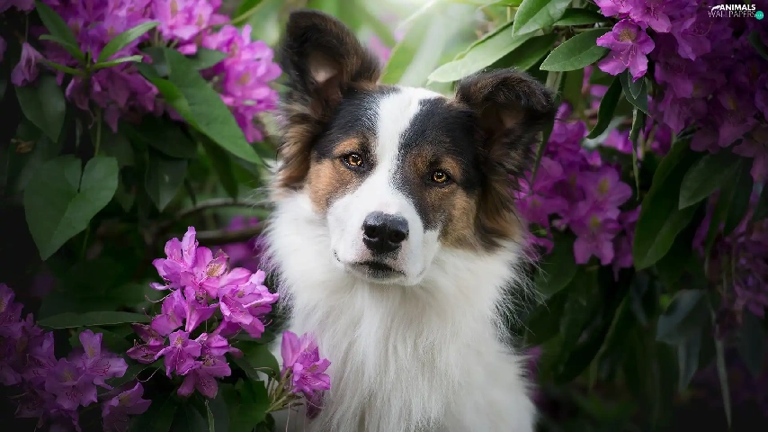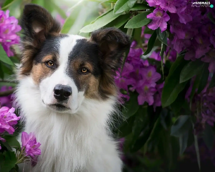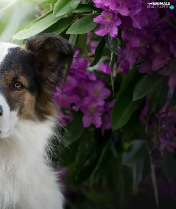 Rhododendrons, Leaf, muzzle, Flowers, dog