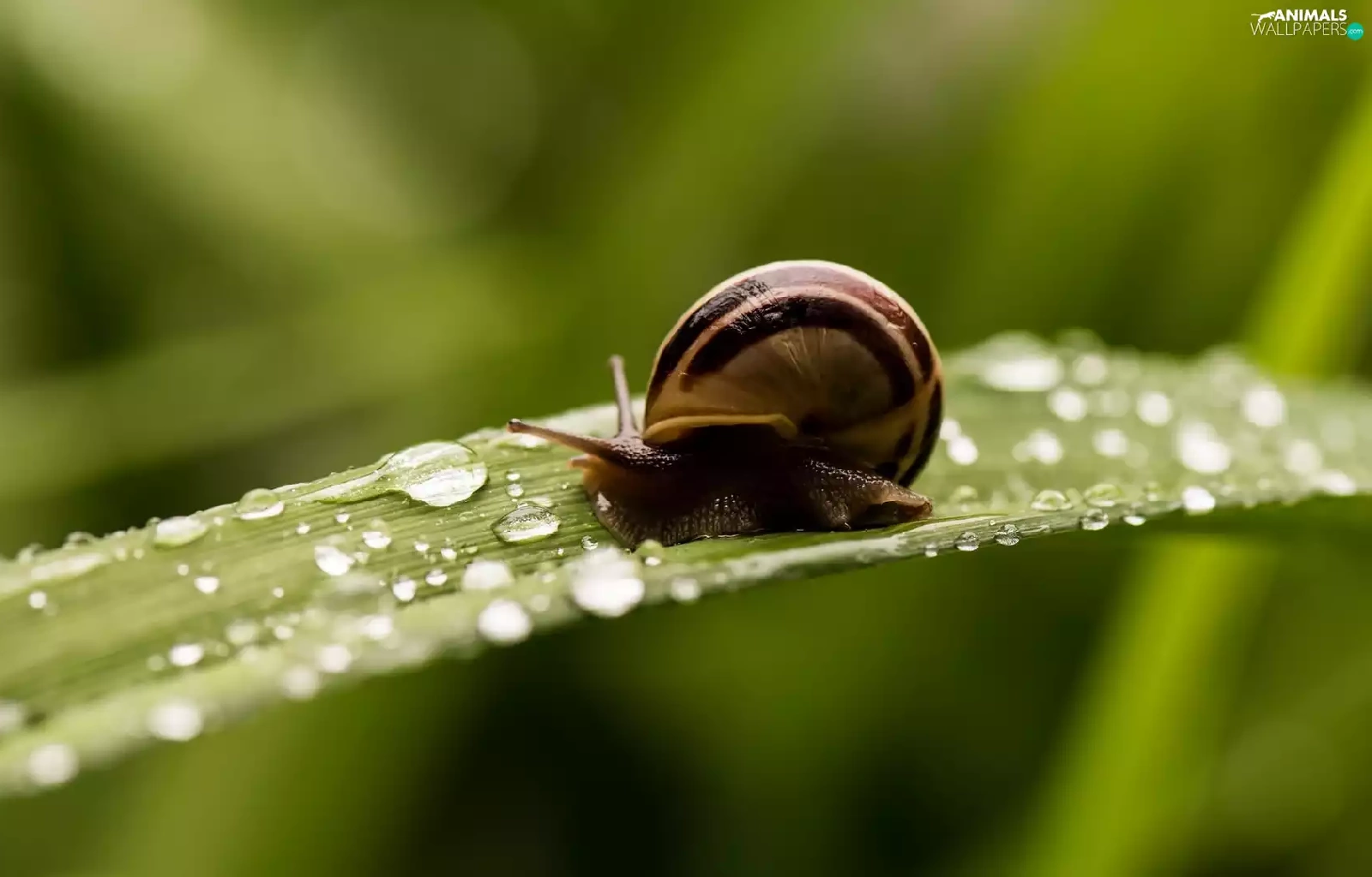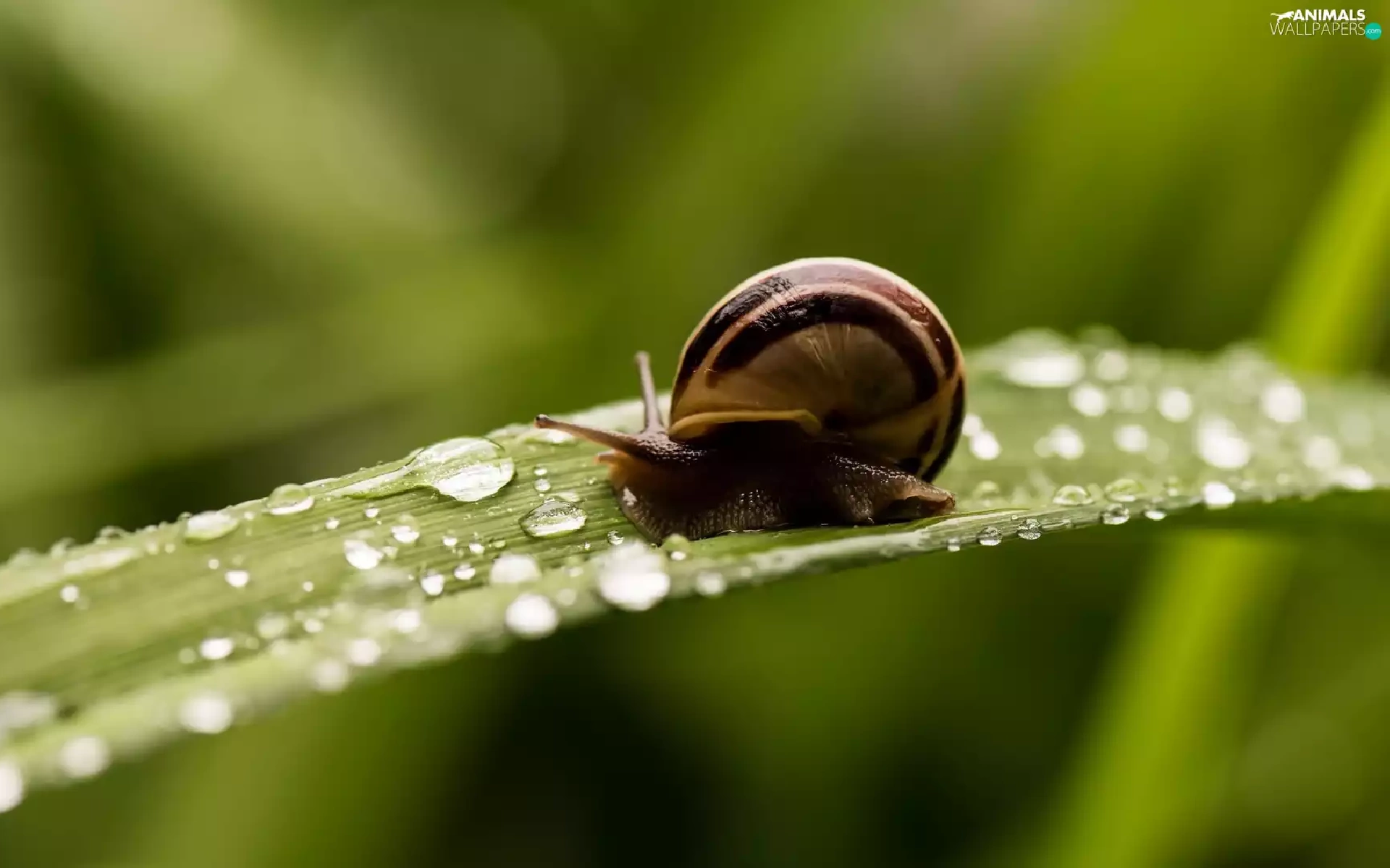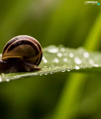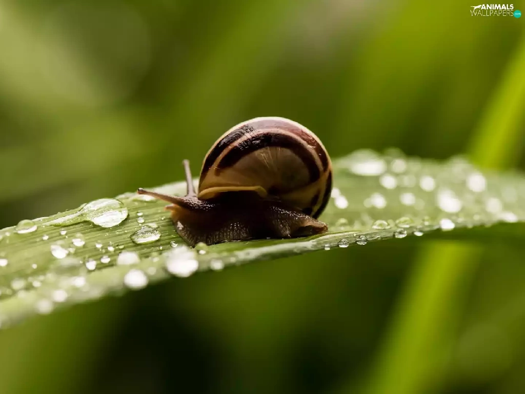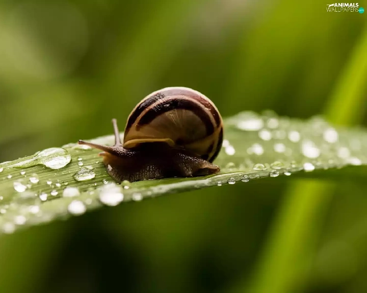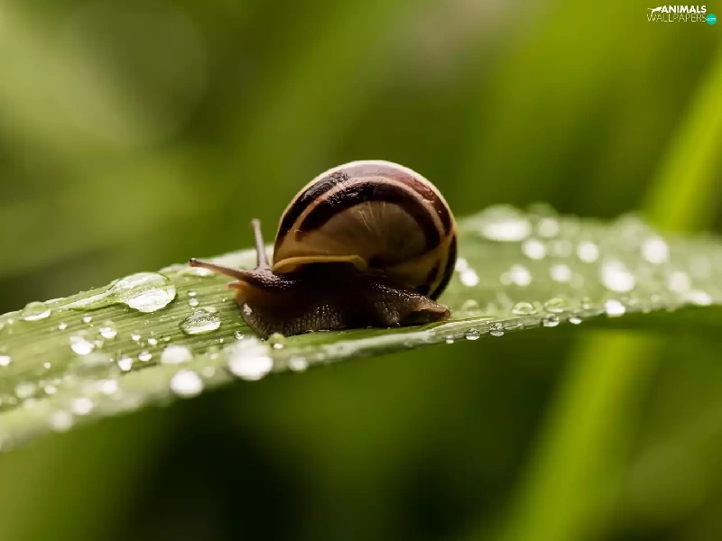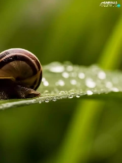 snail, drops, water, leaf