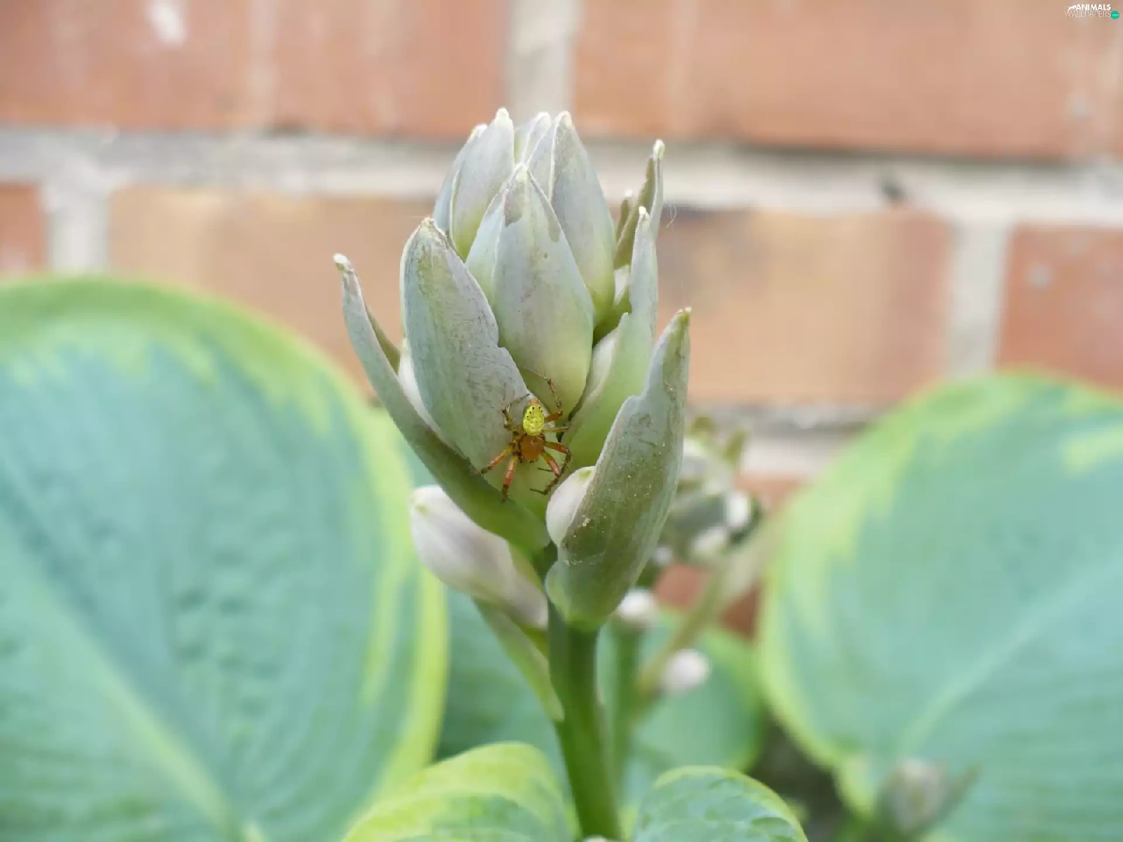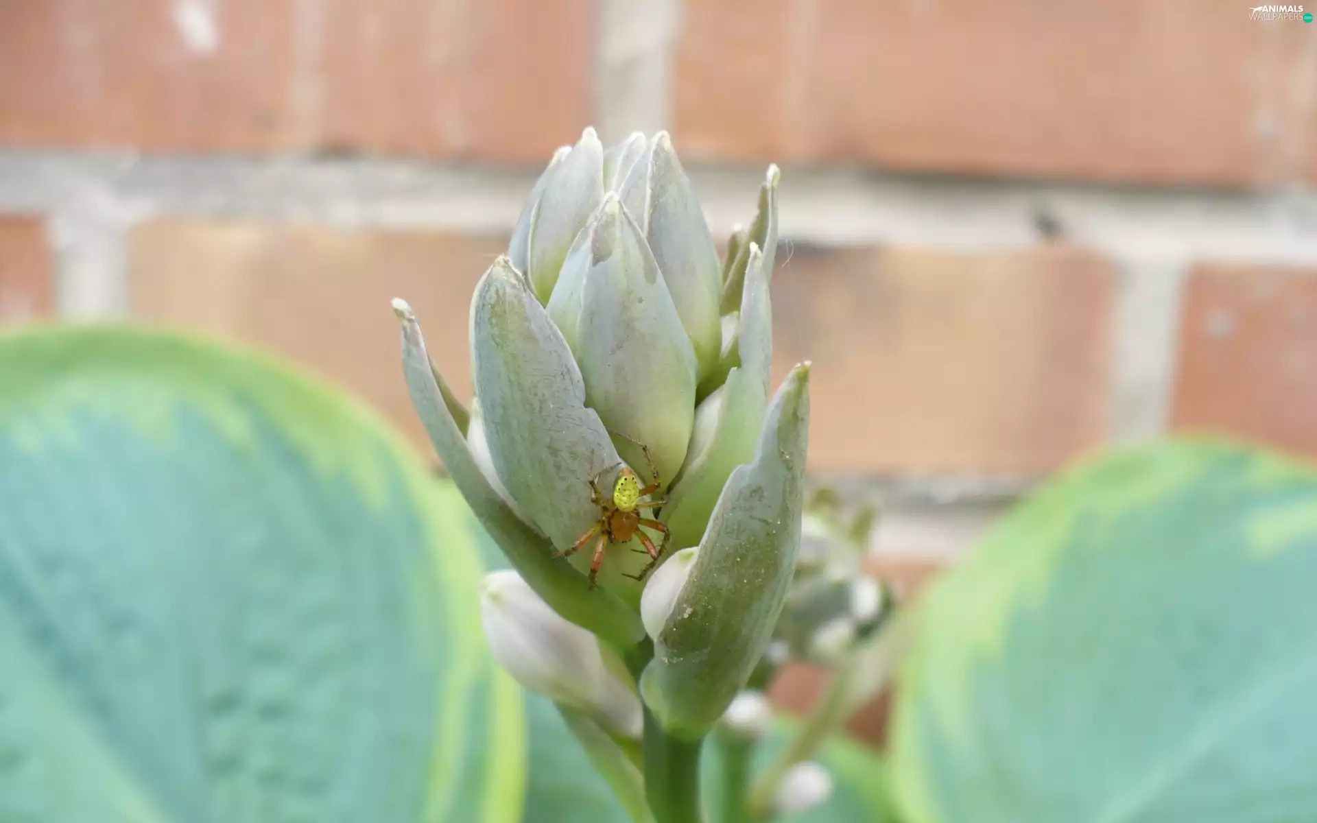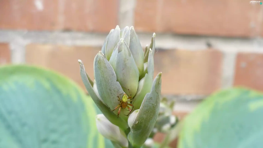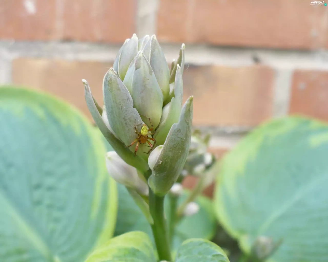 Spider, wall, brick, Leaf