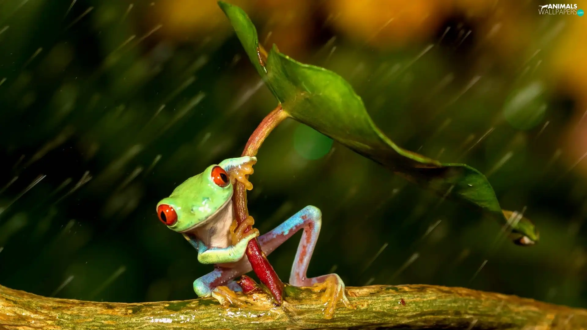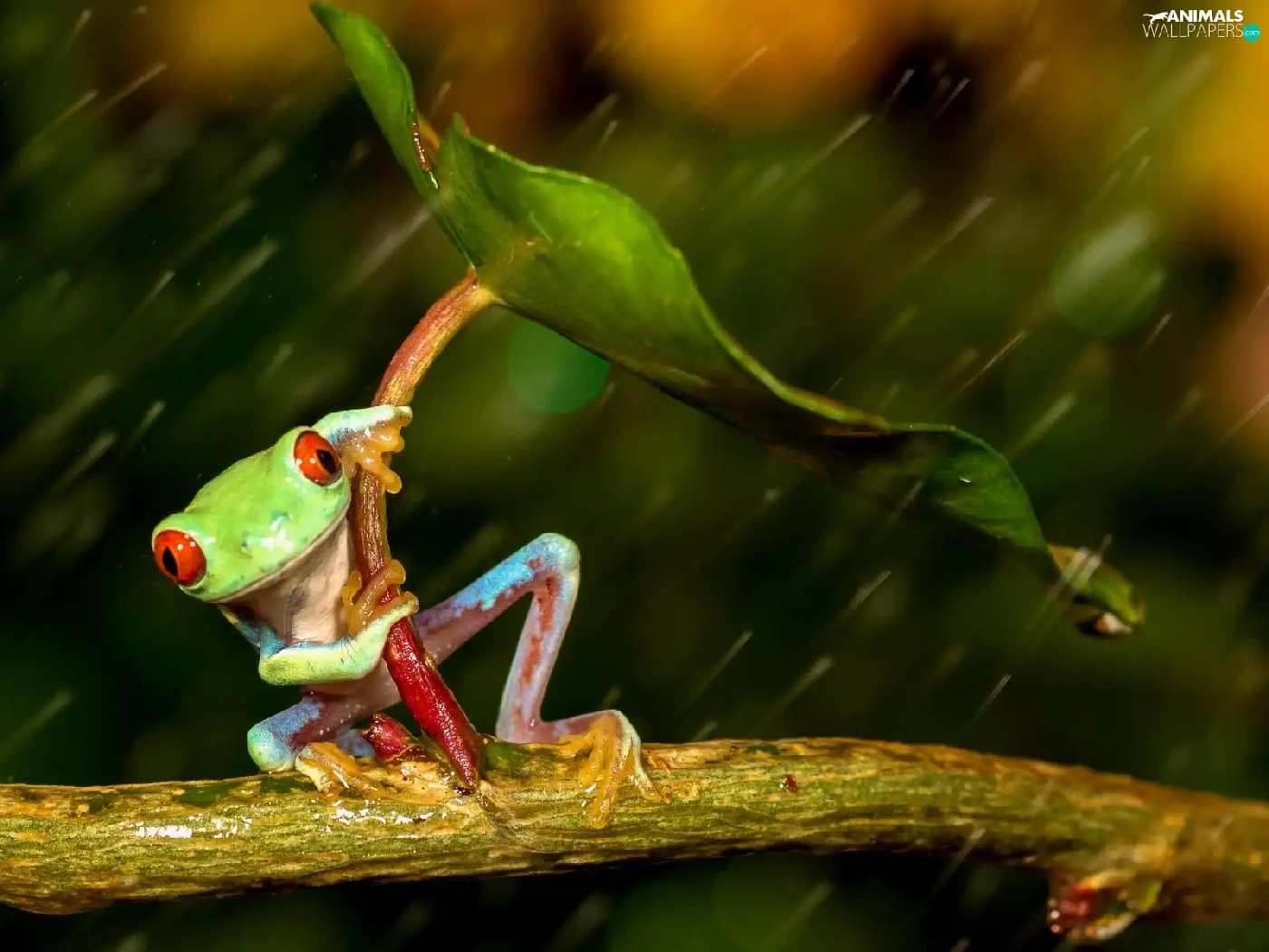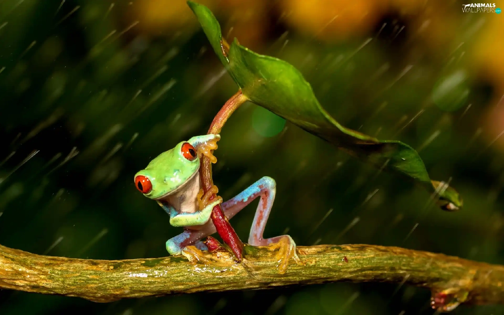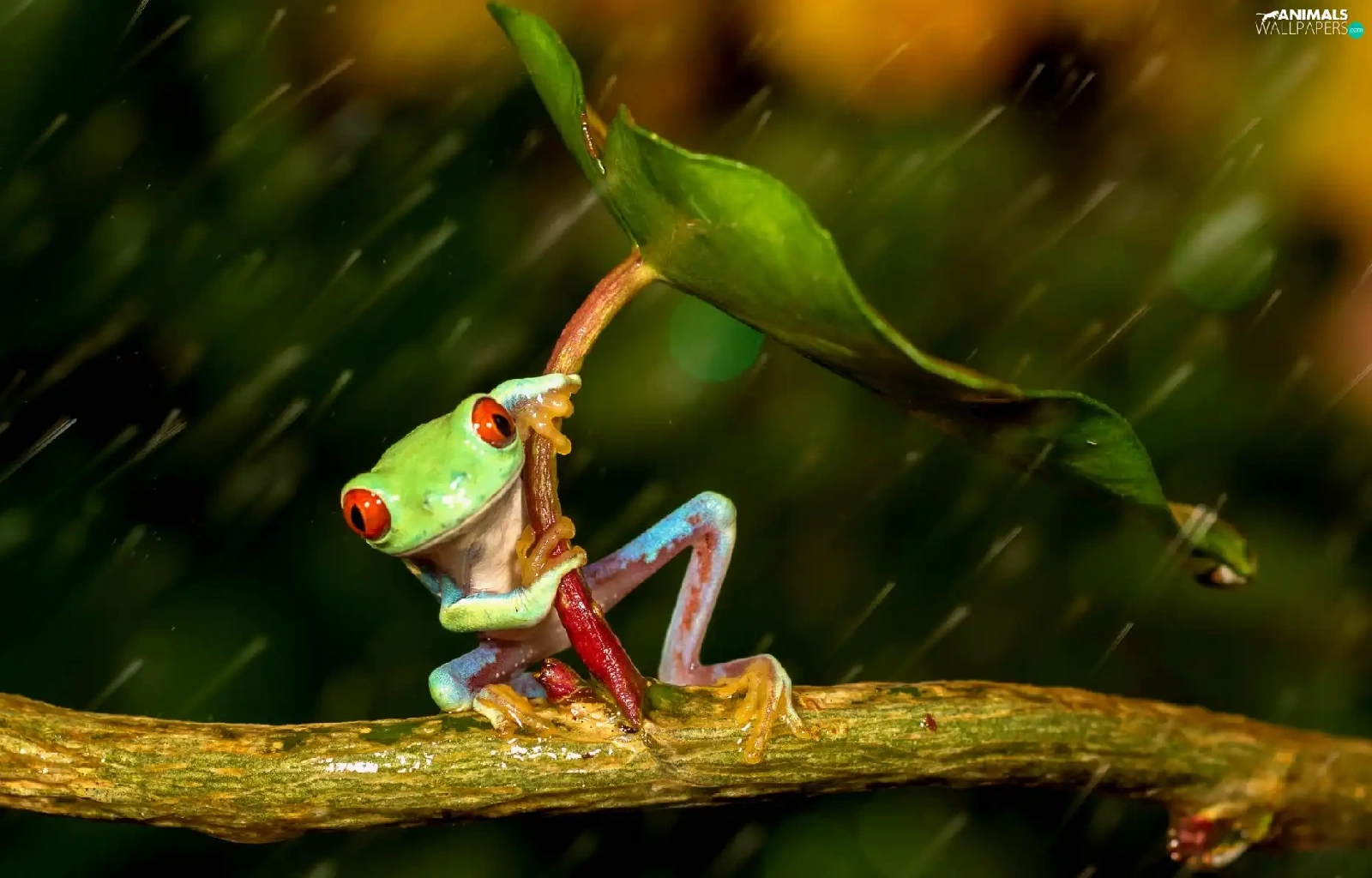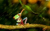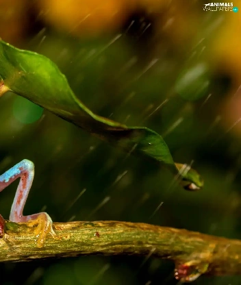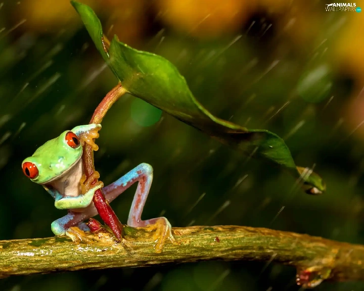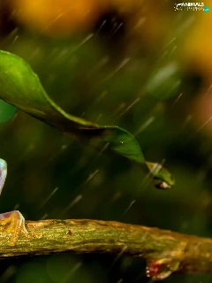 Rain, strange frog, leaf