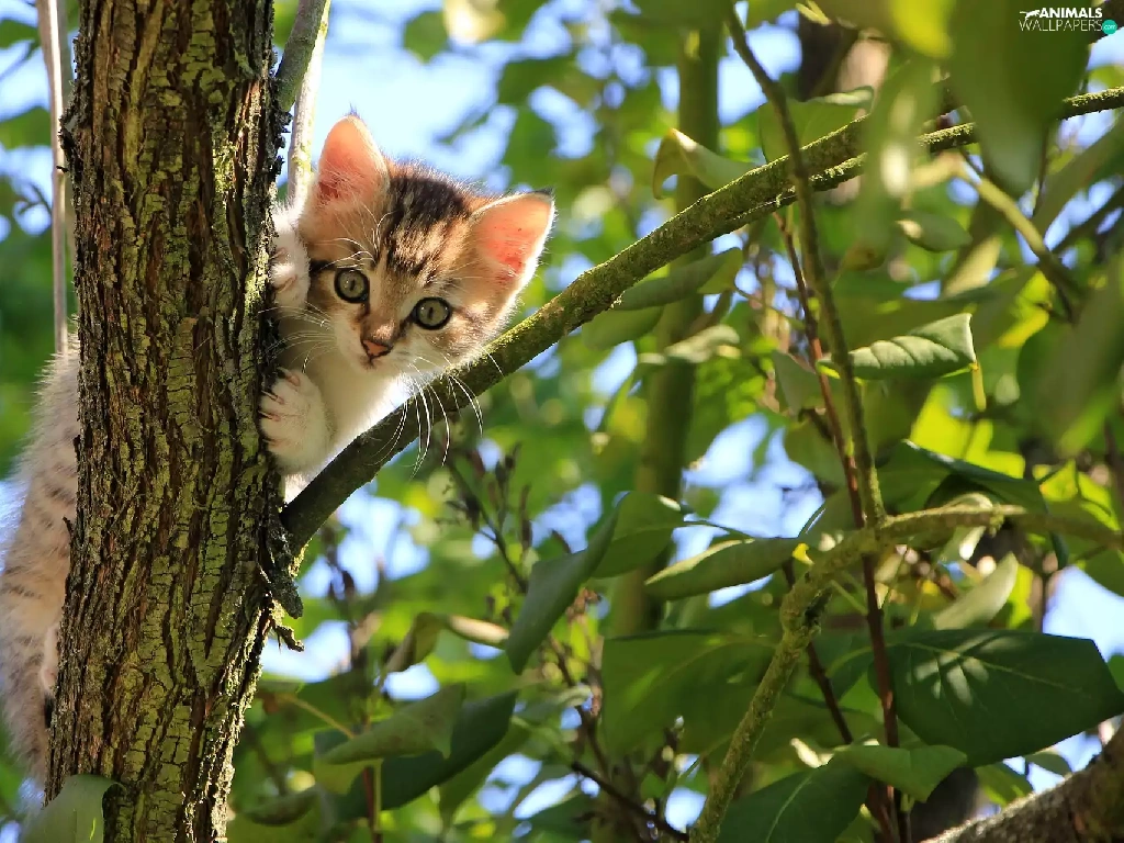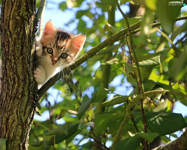 Leaf, kitten, trees