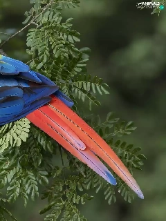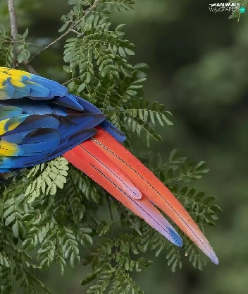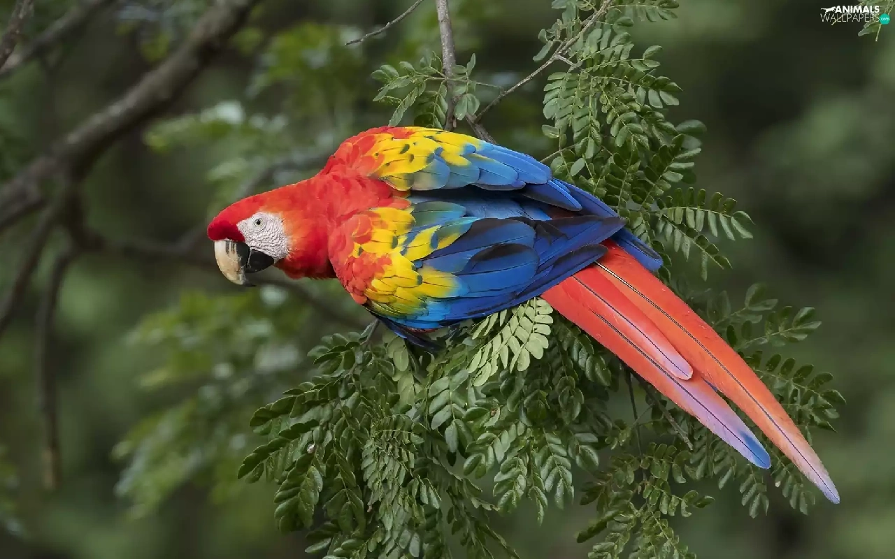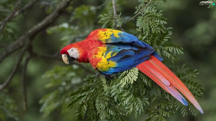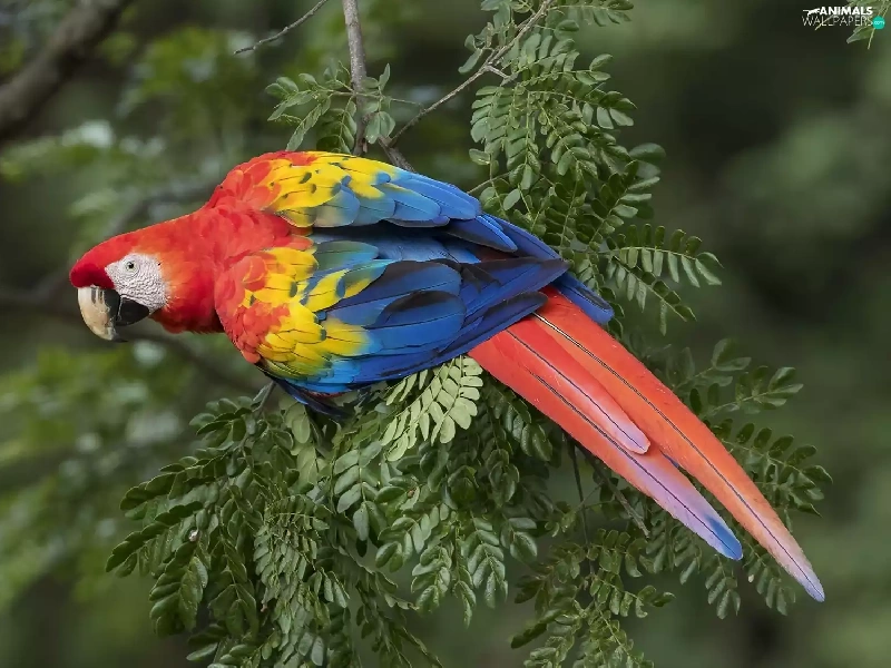 parrot, Leaf, twig, Scarlet Macaw