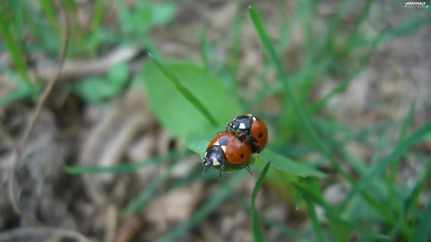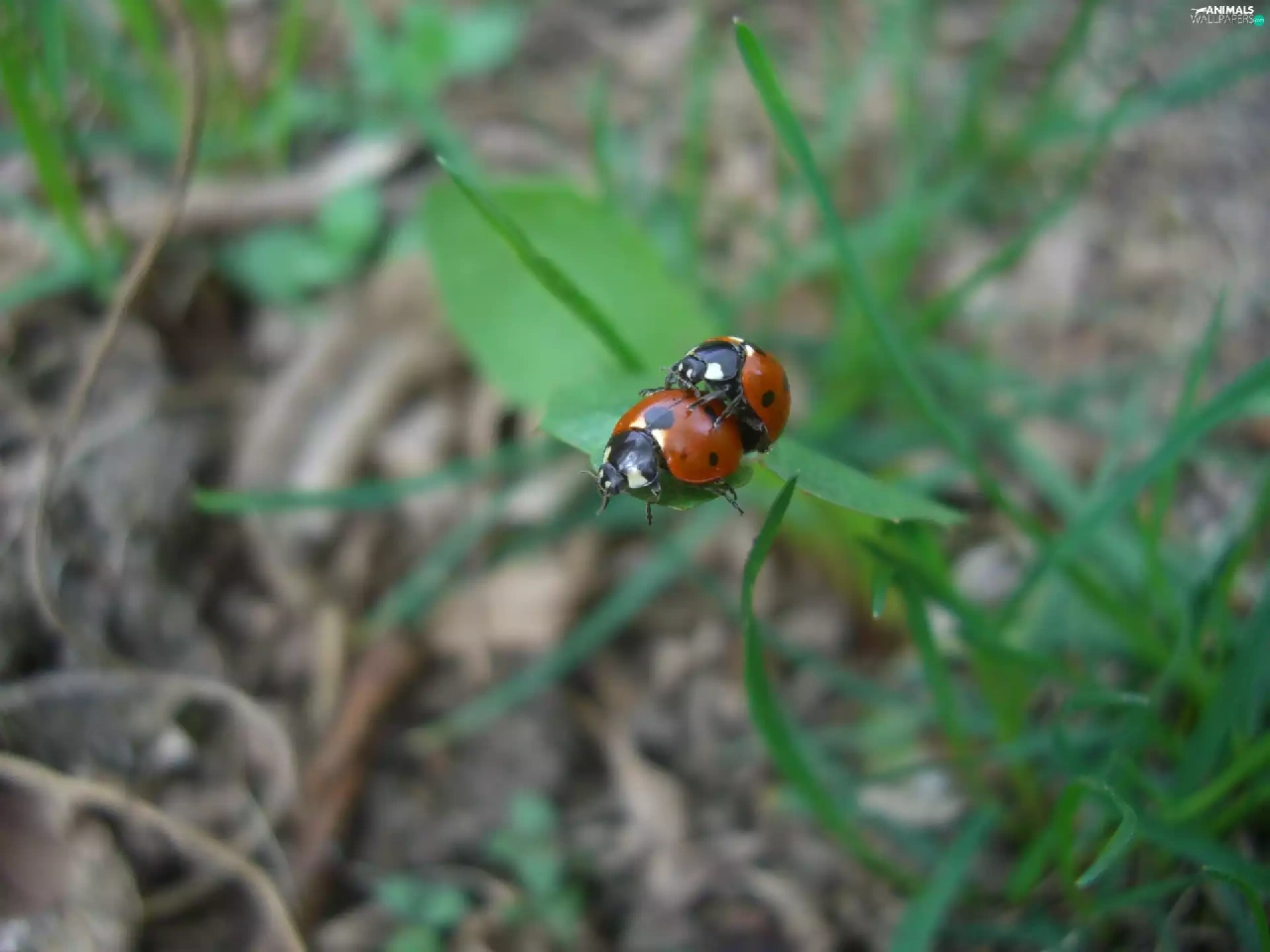 leaf, ladybugs, Two