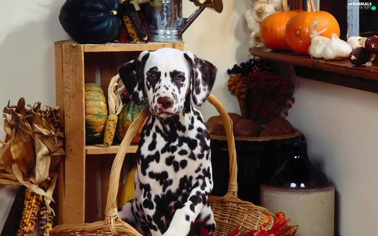 basket, Dalmatian, corn, Leaf, pumpkin, wicker