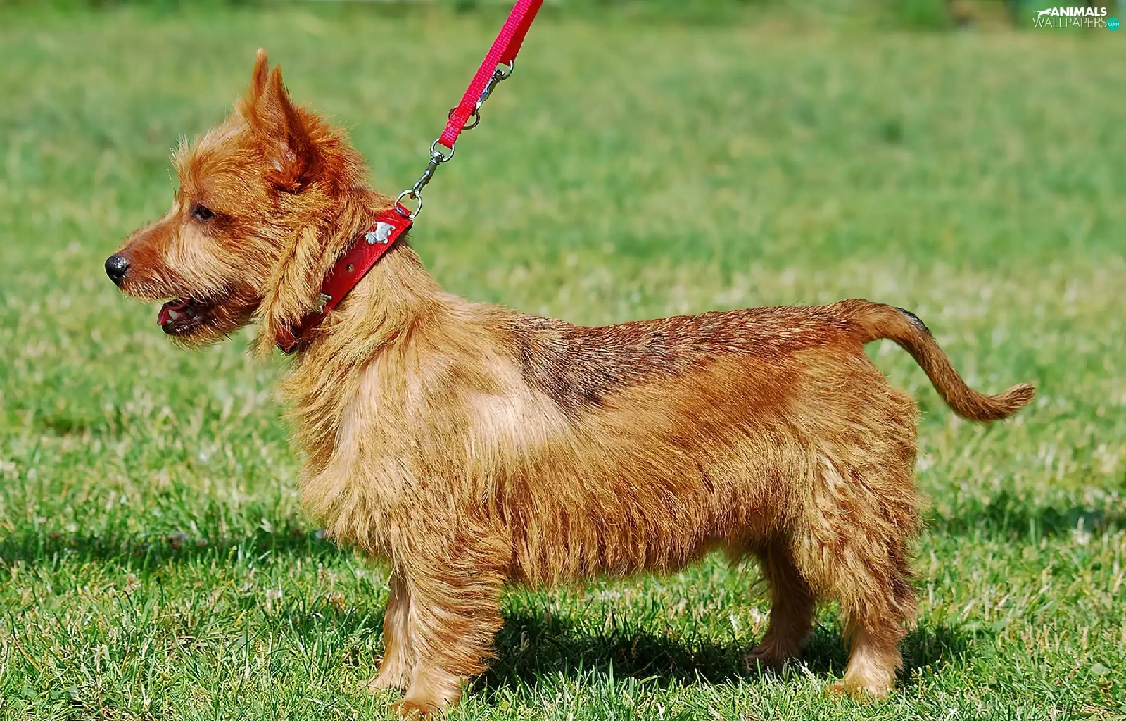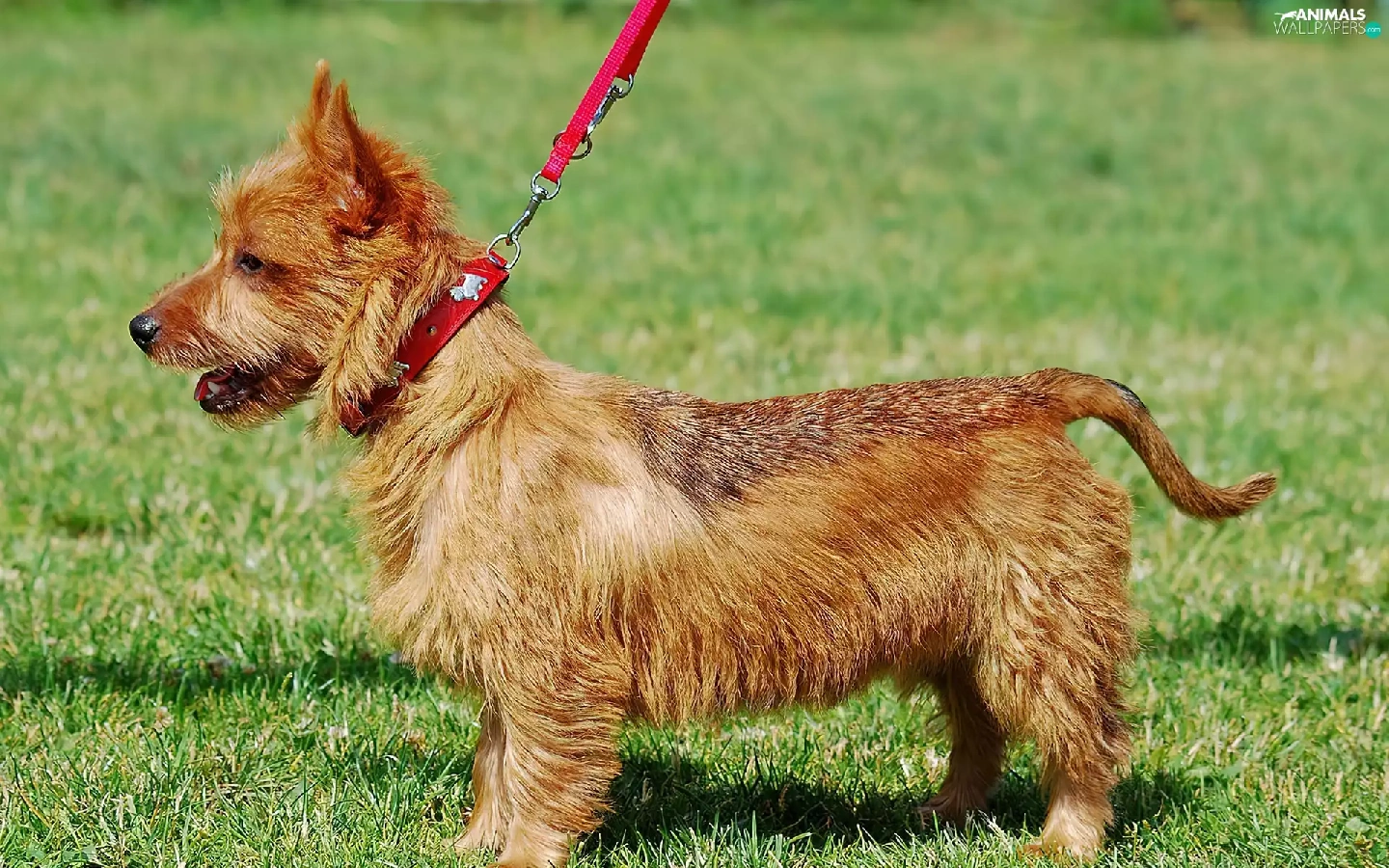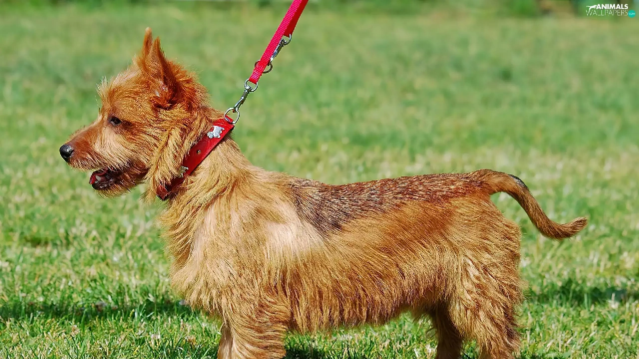 dog, Leash, Lawn, Australian terrier
