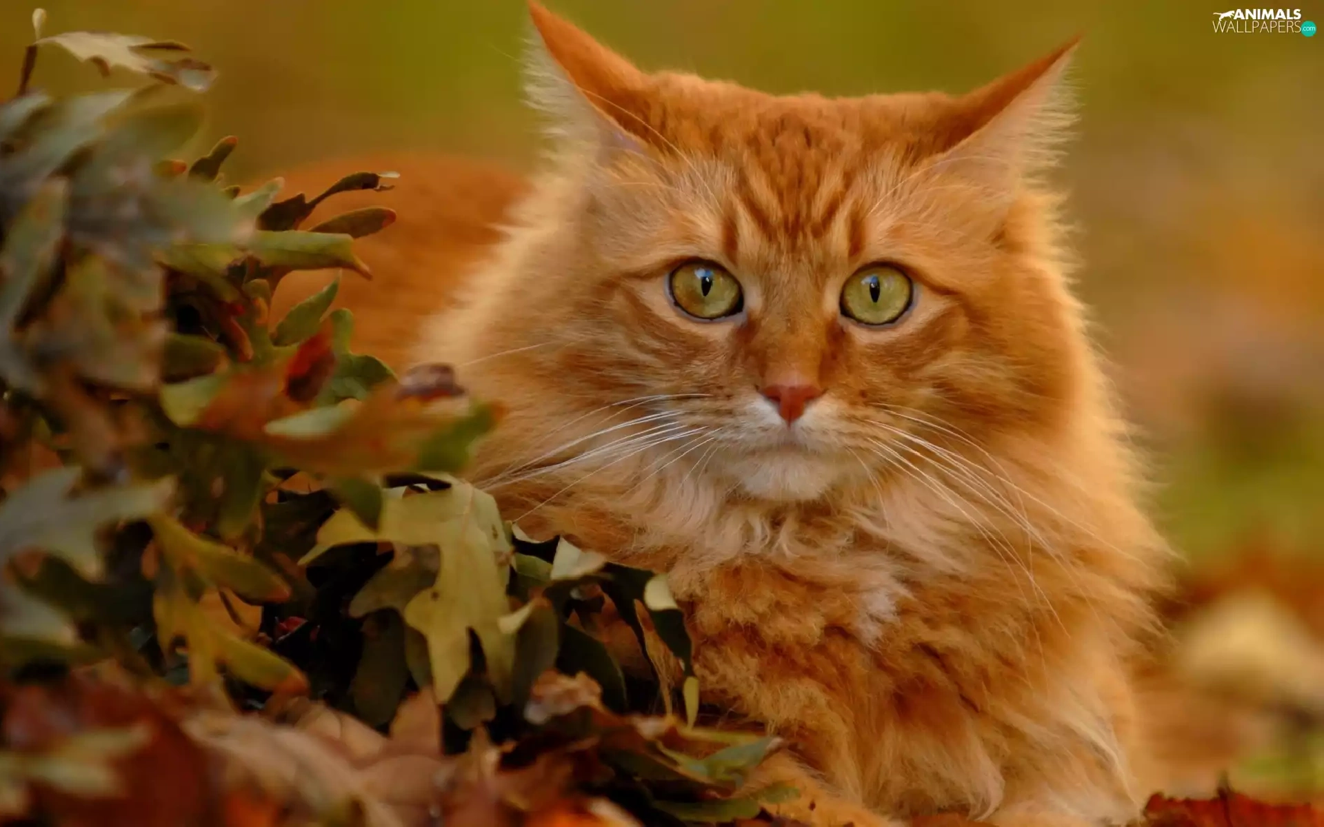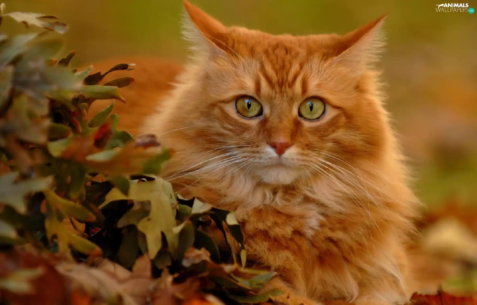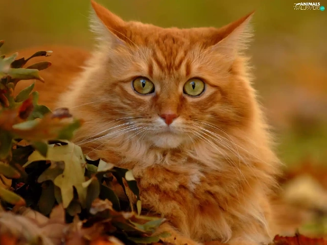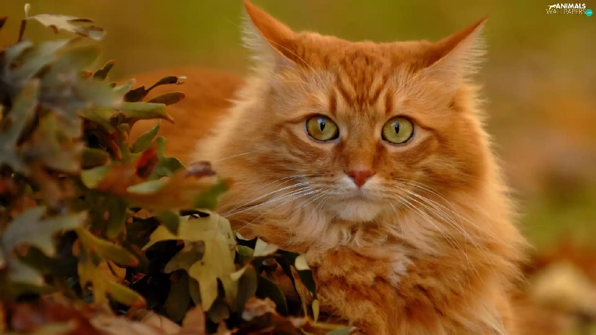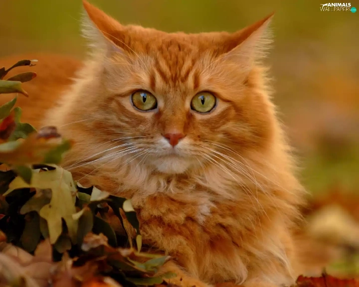 leaves, ginger, kitten