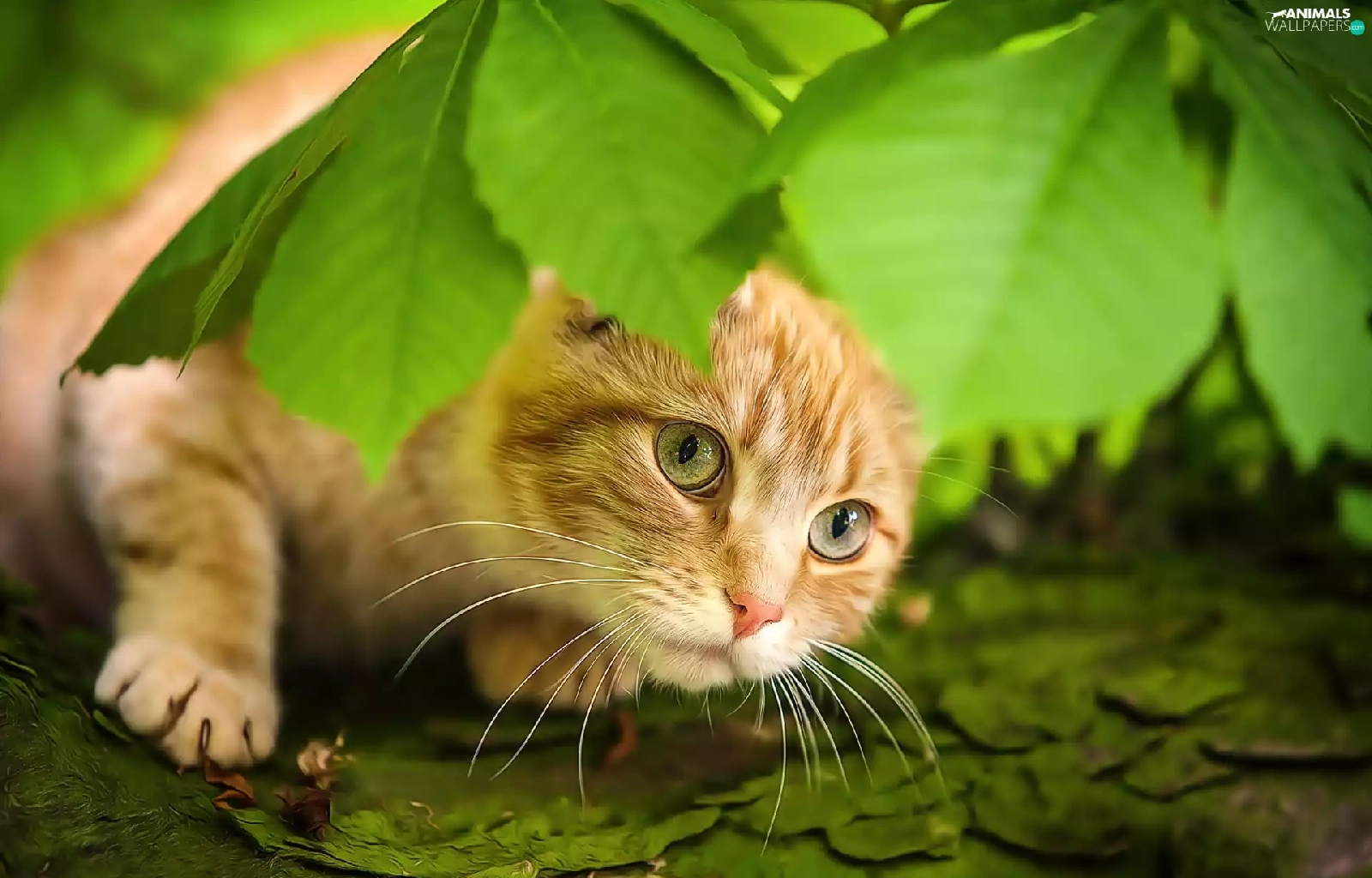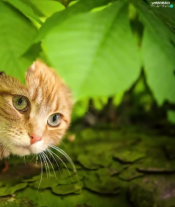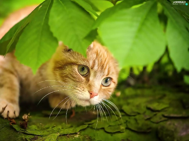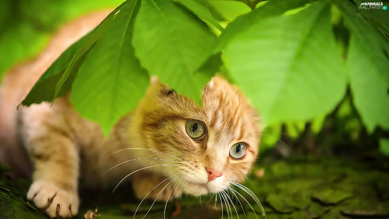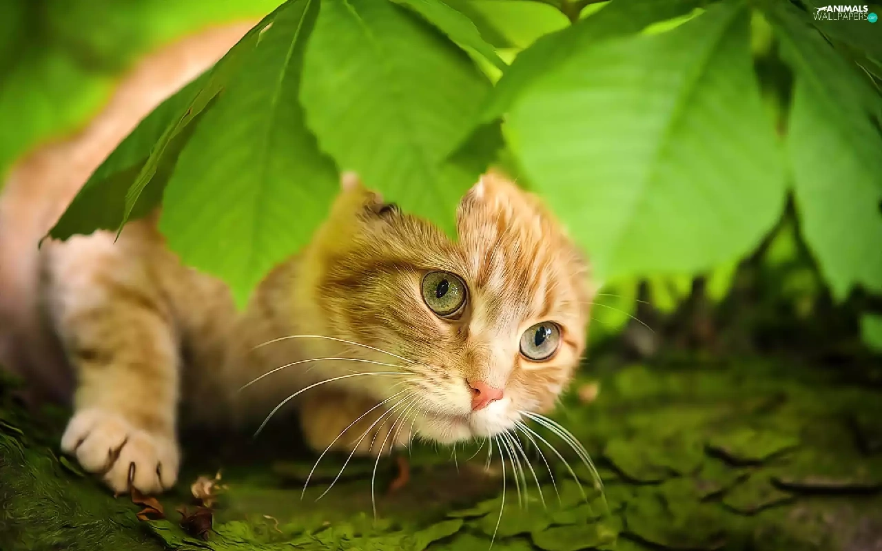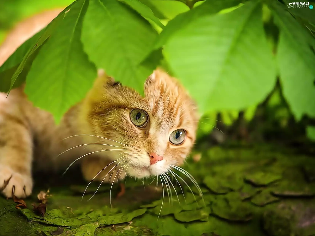 leaves, ginger, kitten