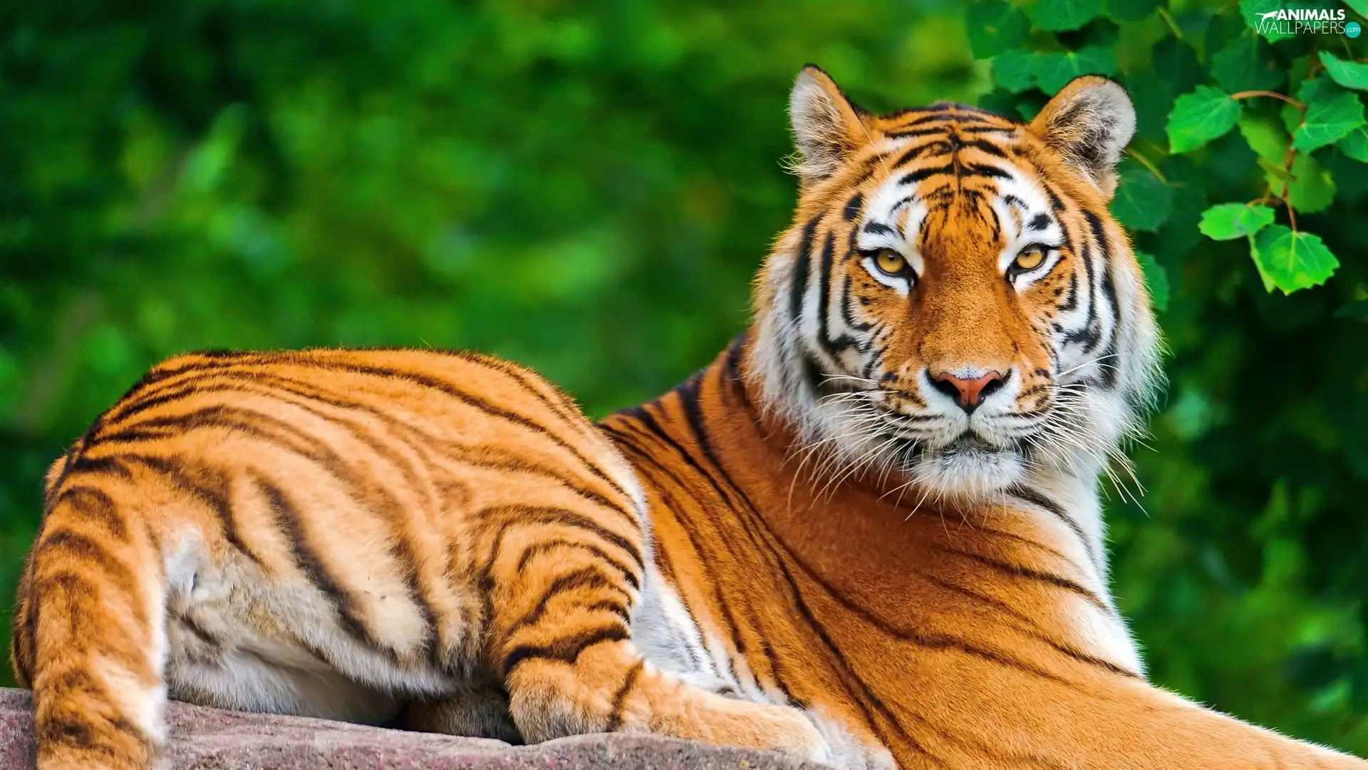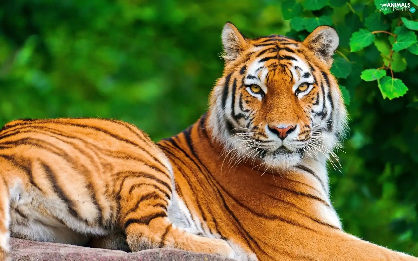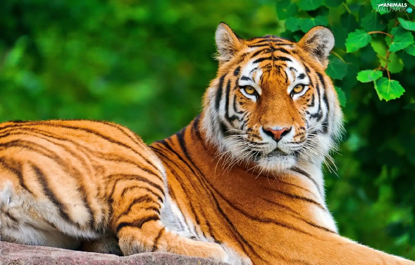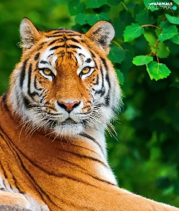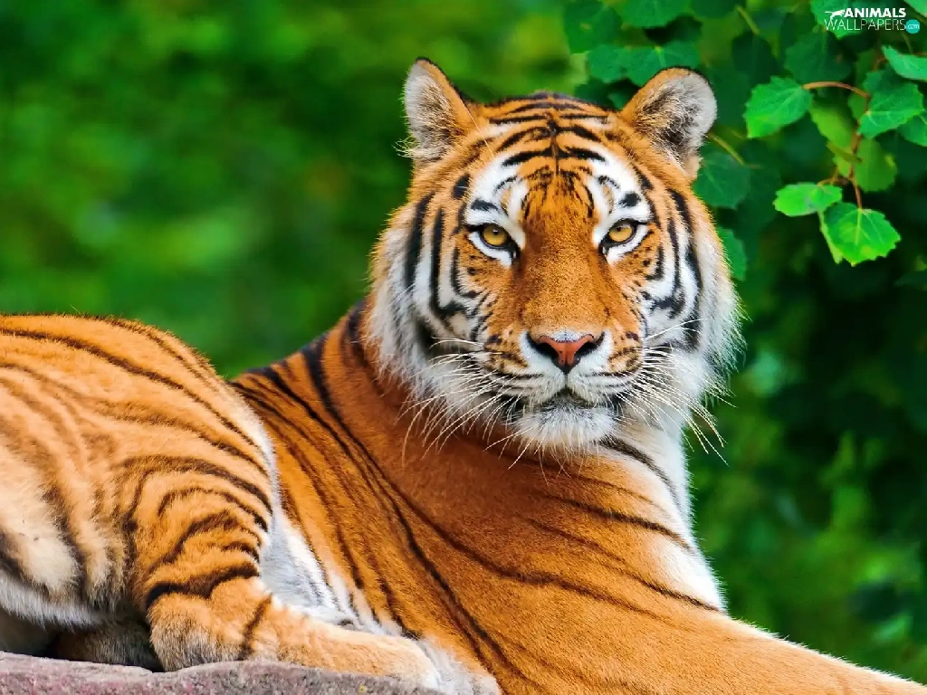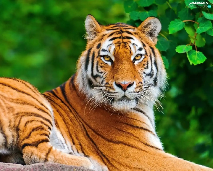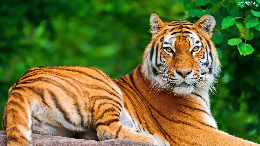 leaves, tiger, Rocks